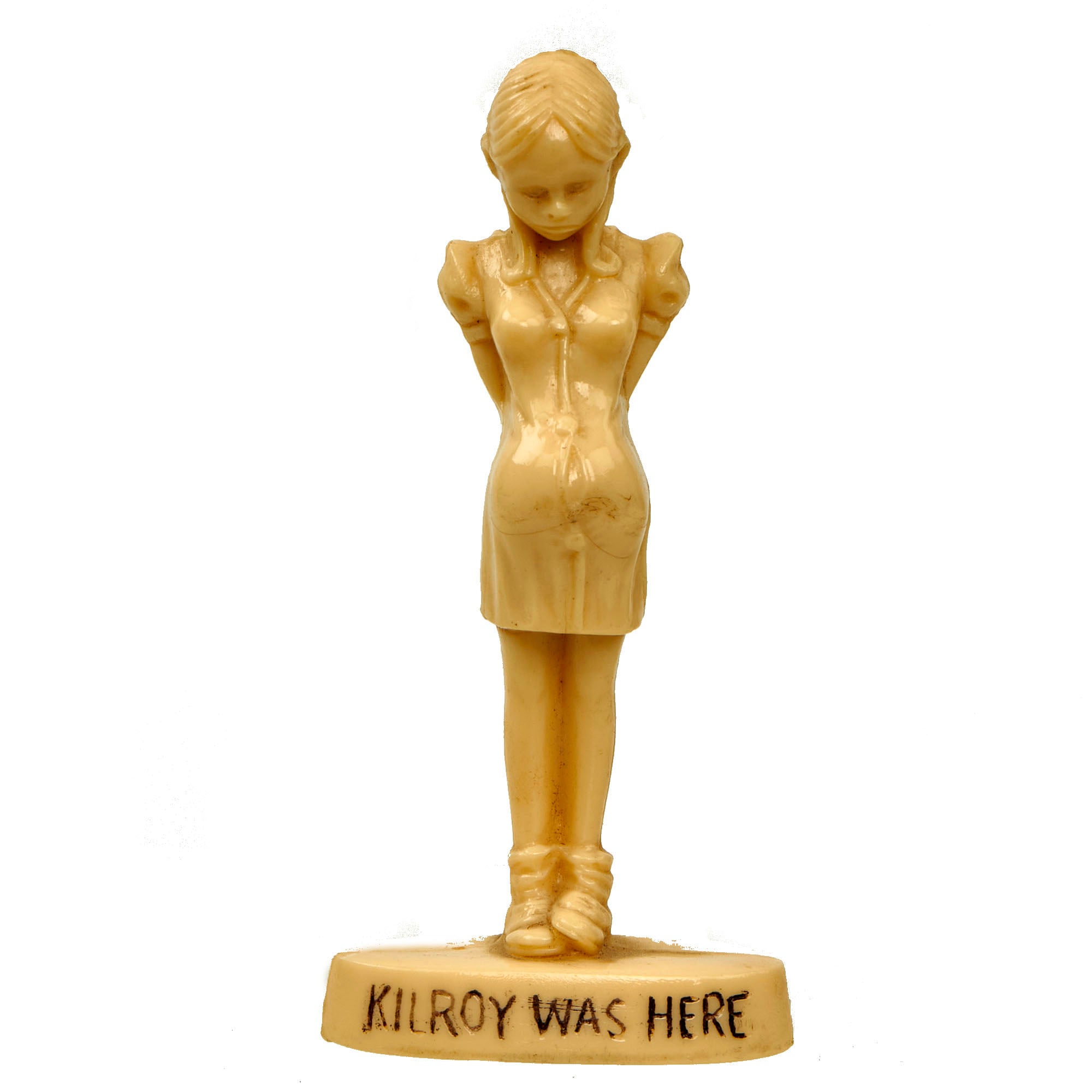 The figure stands at just under 4 inches tall with a base that reads KILROY WAS HERE. The condition is overall very good with minor age toning and little paint loss to the lettering.