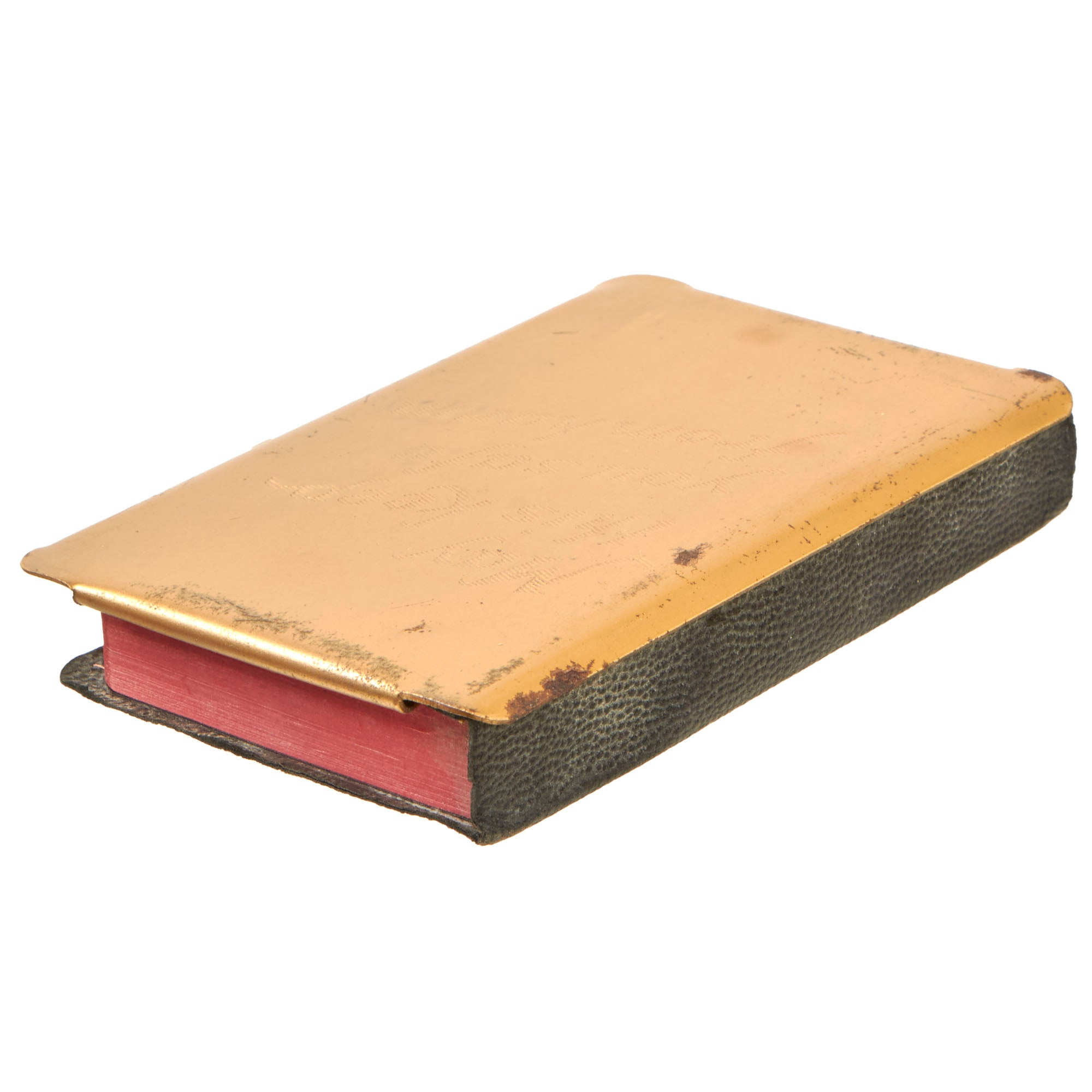 Original Item: Only One Available. Now this is a lovely example of an item that is growing increasingly difficult to come across, the Heart-Shield bible. John Phillips, an American soldier, received a government-issue pocket Bible before he shipped off to Europe during World War II. On patrol, trudging through knee-deep snow during the Ardennes Offensive and the Battle of the Bulge, Phillips and his squad found themselves in the middle of an ambush. In a burst of gunfire he was shot five times. While laying in the snow he instinctively reached for his heart. What he found was his Bible — with a bullet lodged in it.