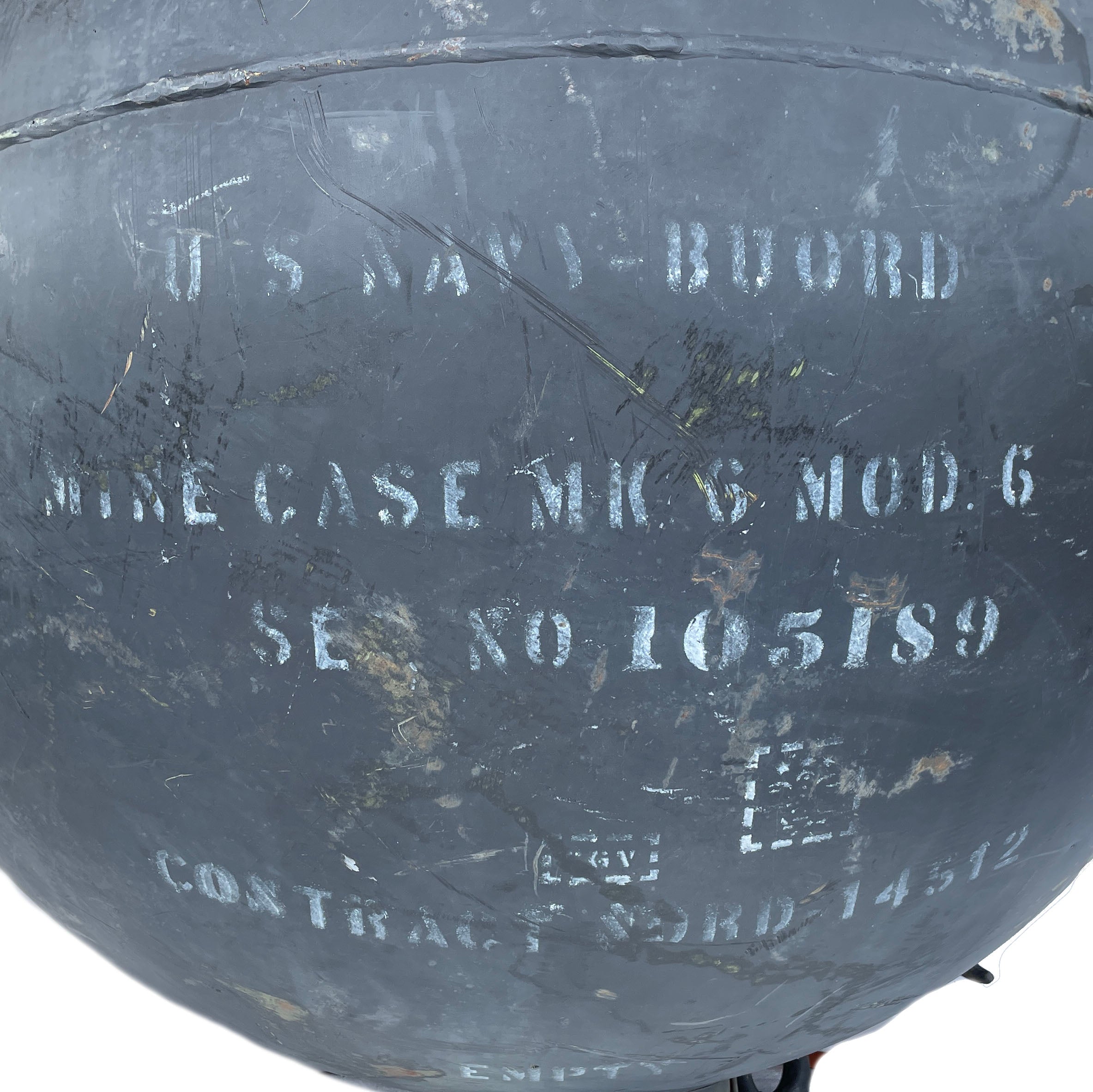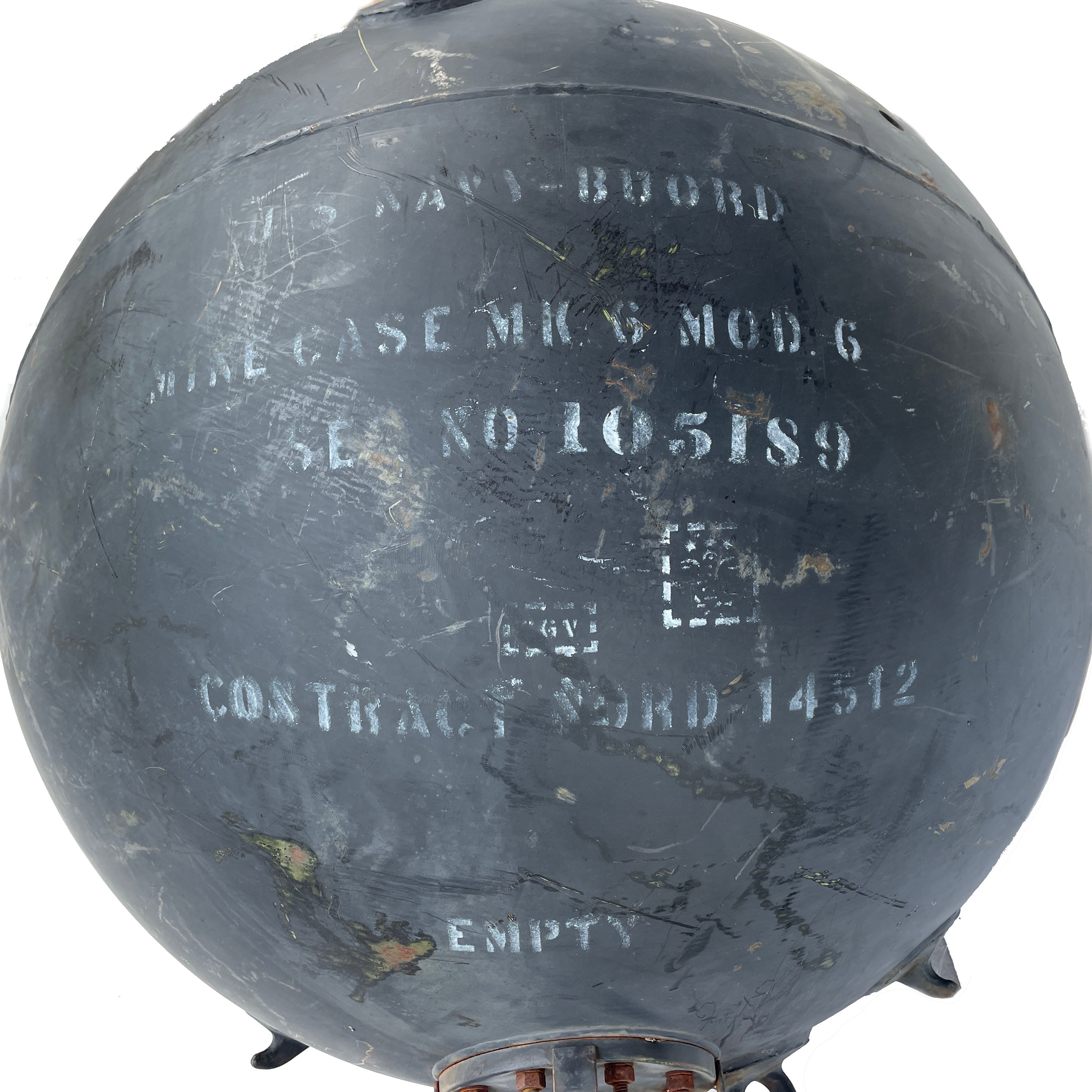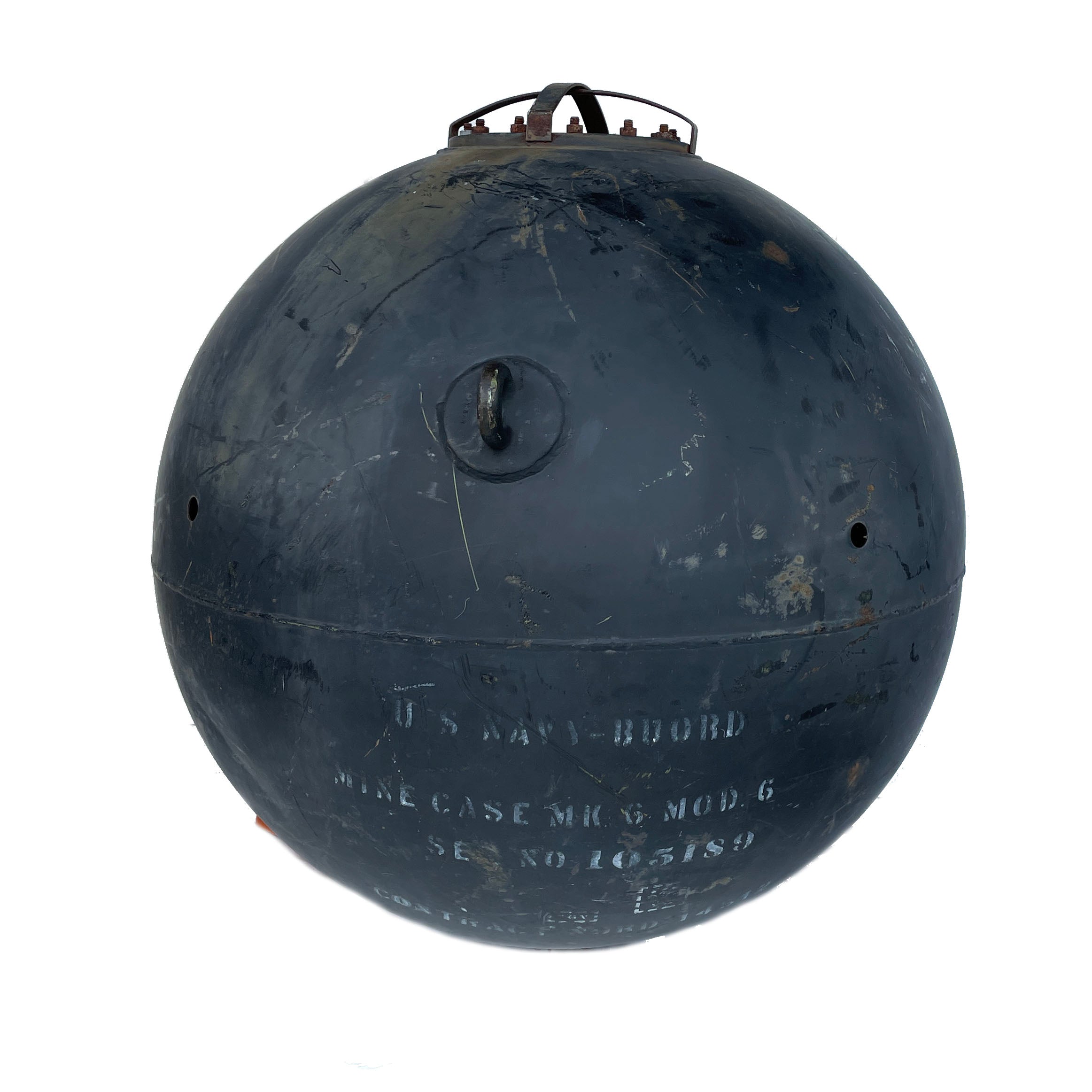 Original Item: Only One Available. This is a totally inert and empty BATF compliant United States Navy World War Two era Naval Mk 6 Mod 6 Sea Mine that measures 34 inches in diameter. It features original blue Naval paint and stenciled lettering that reads: