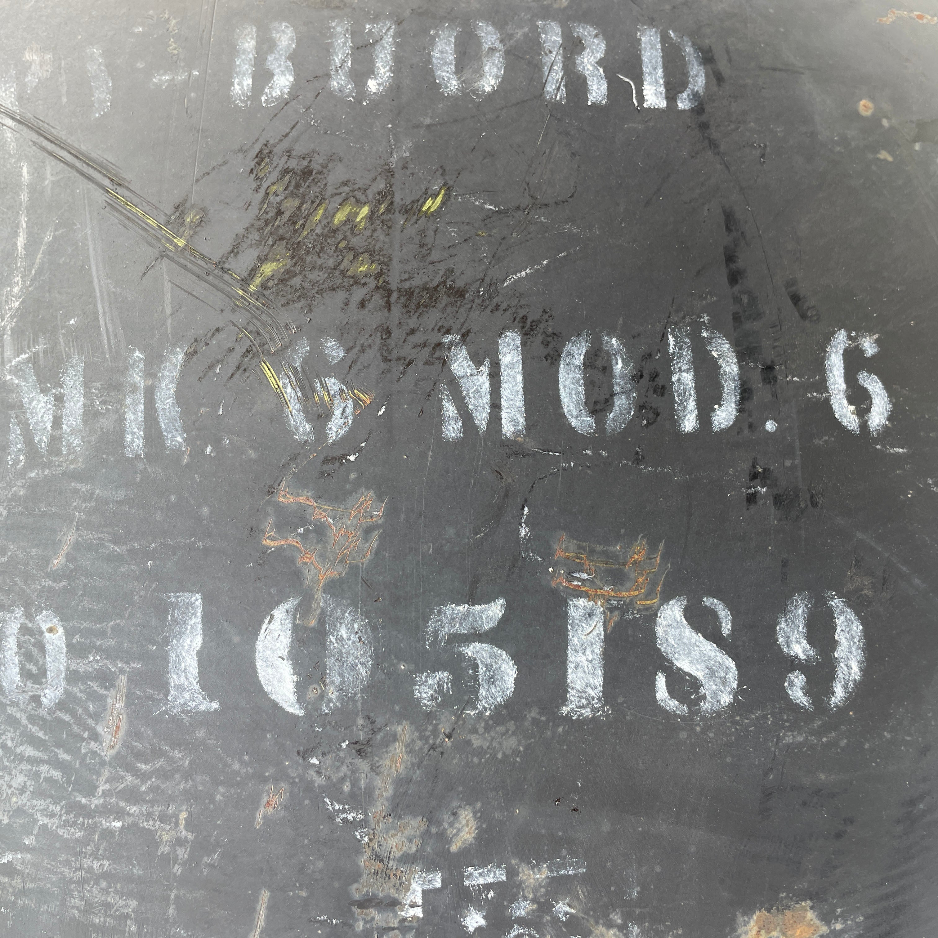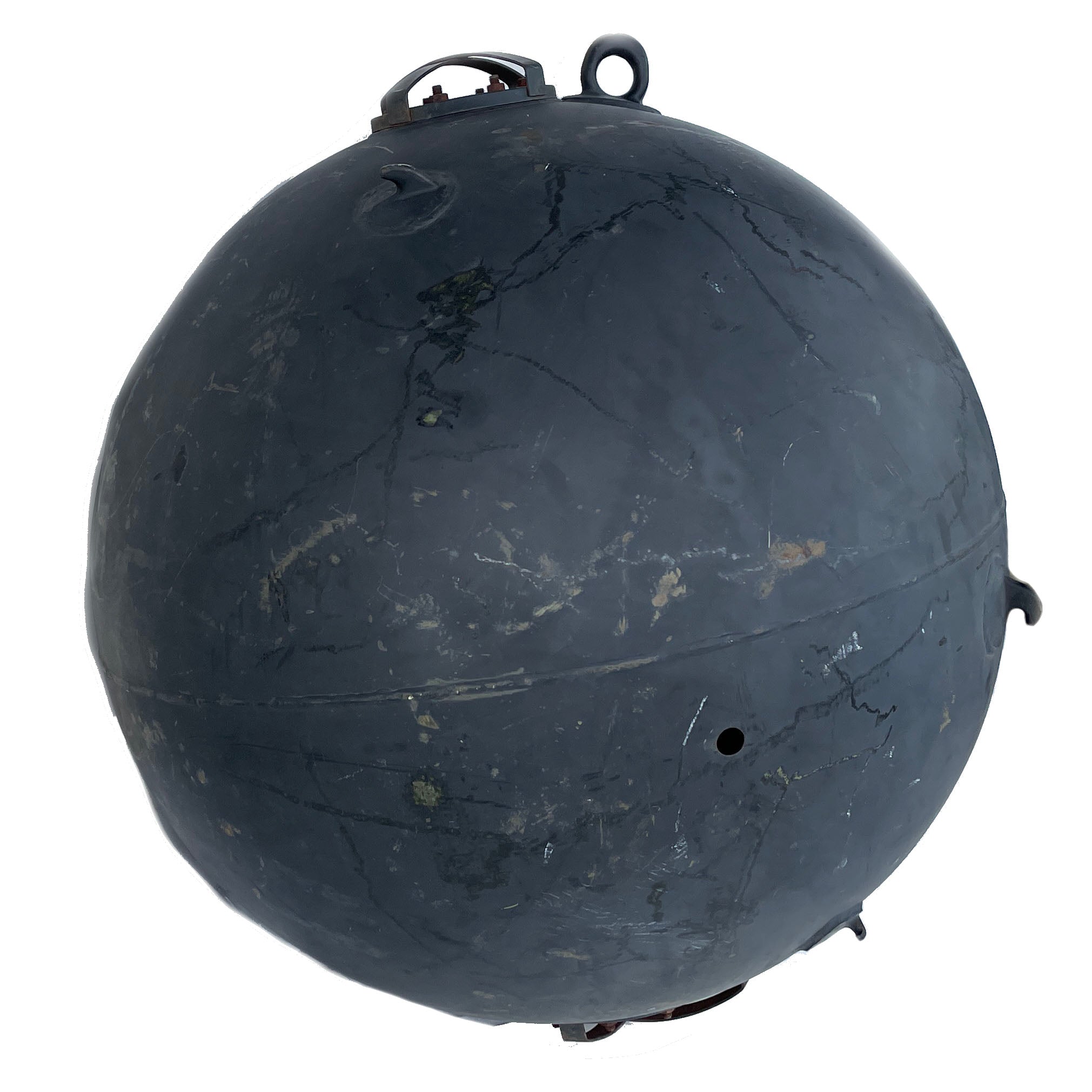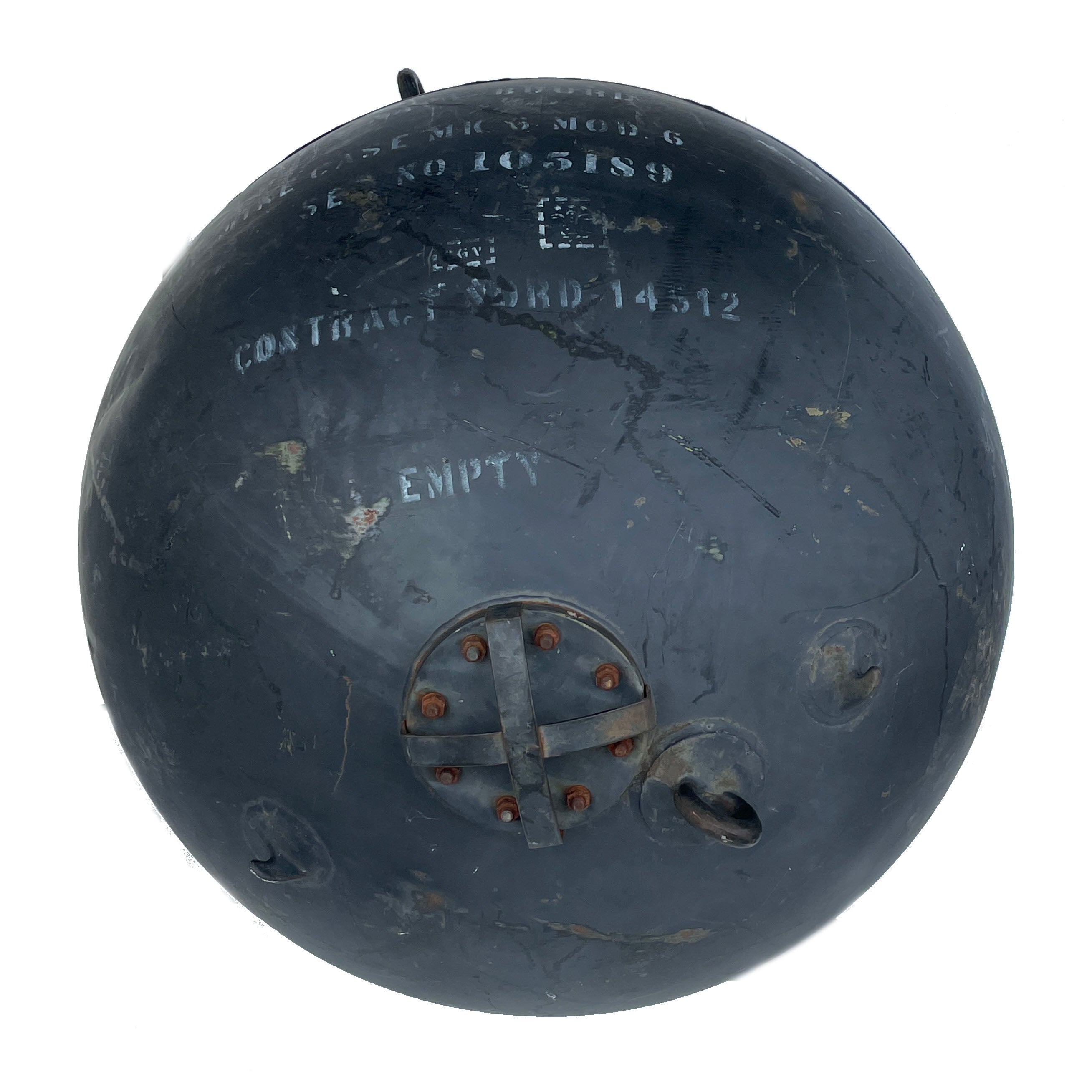 Original Item: Only One Available. This is a totally inert and empty BATF compliant United States Navy World War Two era Naval Mk 6 Mod 6 Sea Mine that measures 34 inches in diameter. It features original blue Naval paint and stenciled lettering that reads: