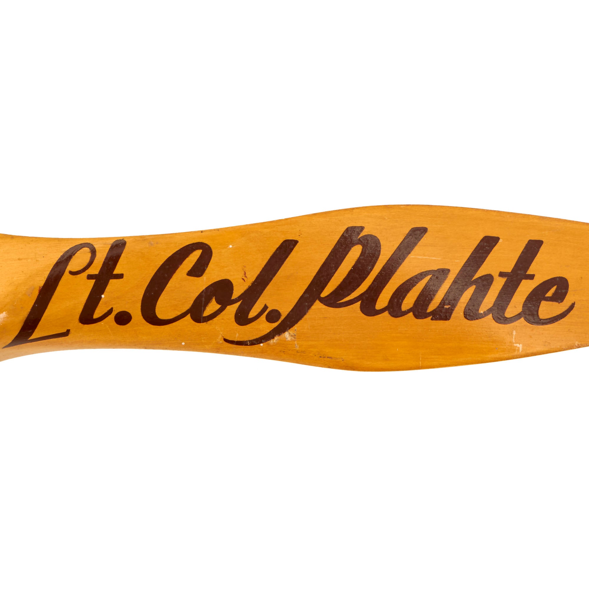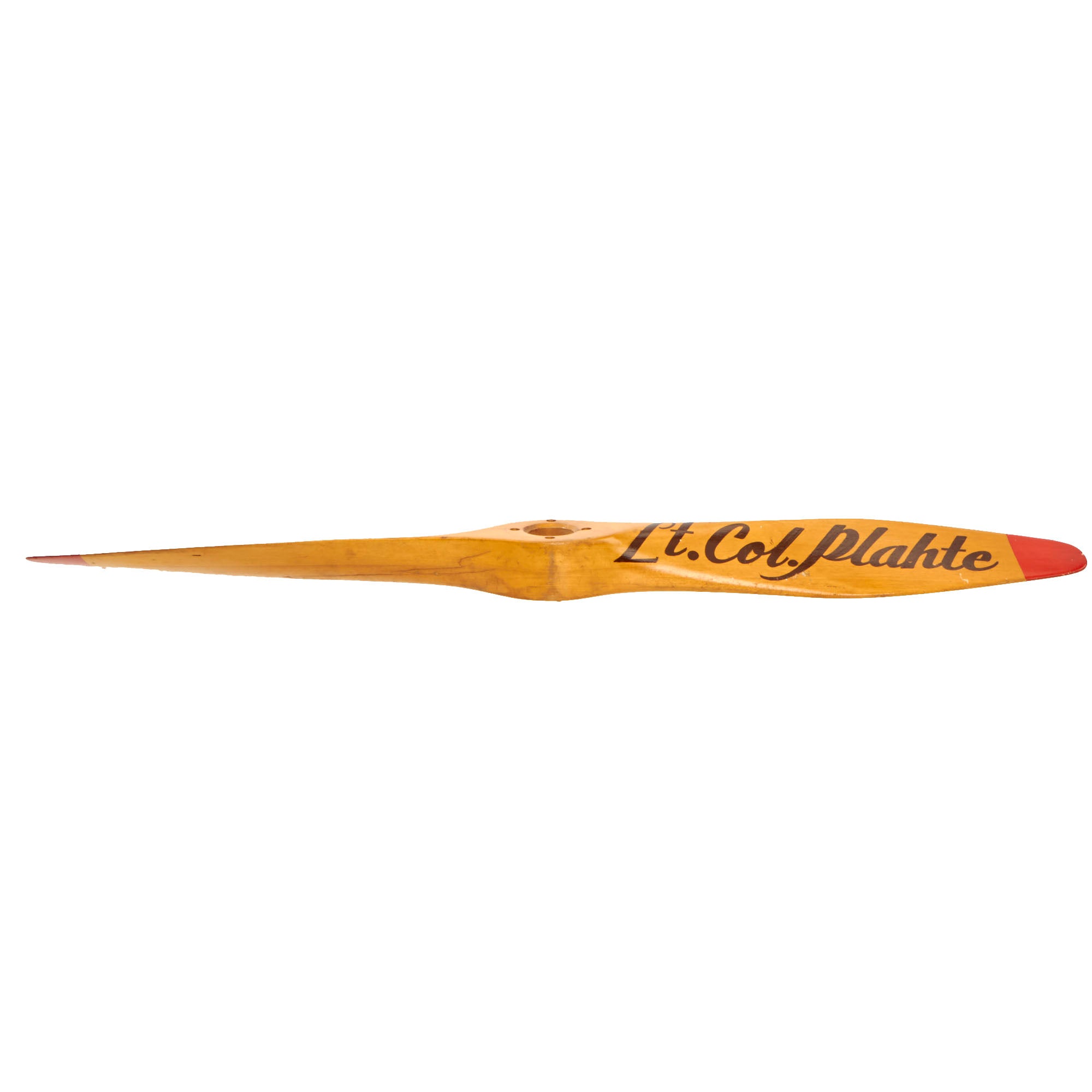 Original Item: Only One Available. This is a lovely memento from WWII, personalized and presented to US Army Lieutenant Colonel Fred Lewis Plahte. Judging from the size of the wooden propeller this was used on a small aircraft. The prop measures approximately 30 inches in length with a 4 bolt pattern on the center.