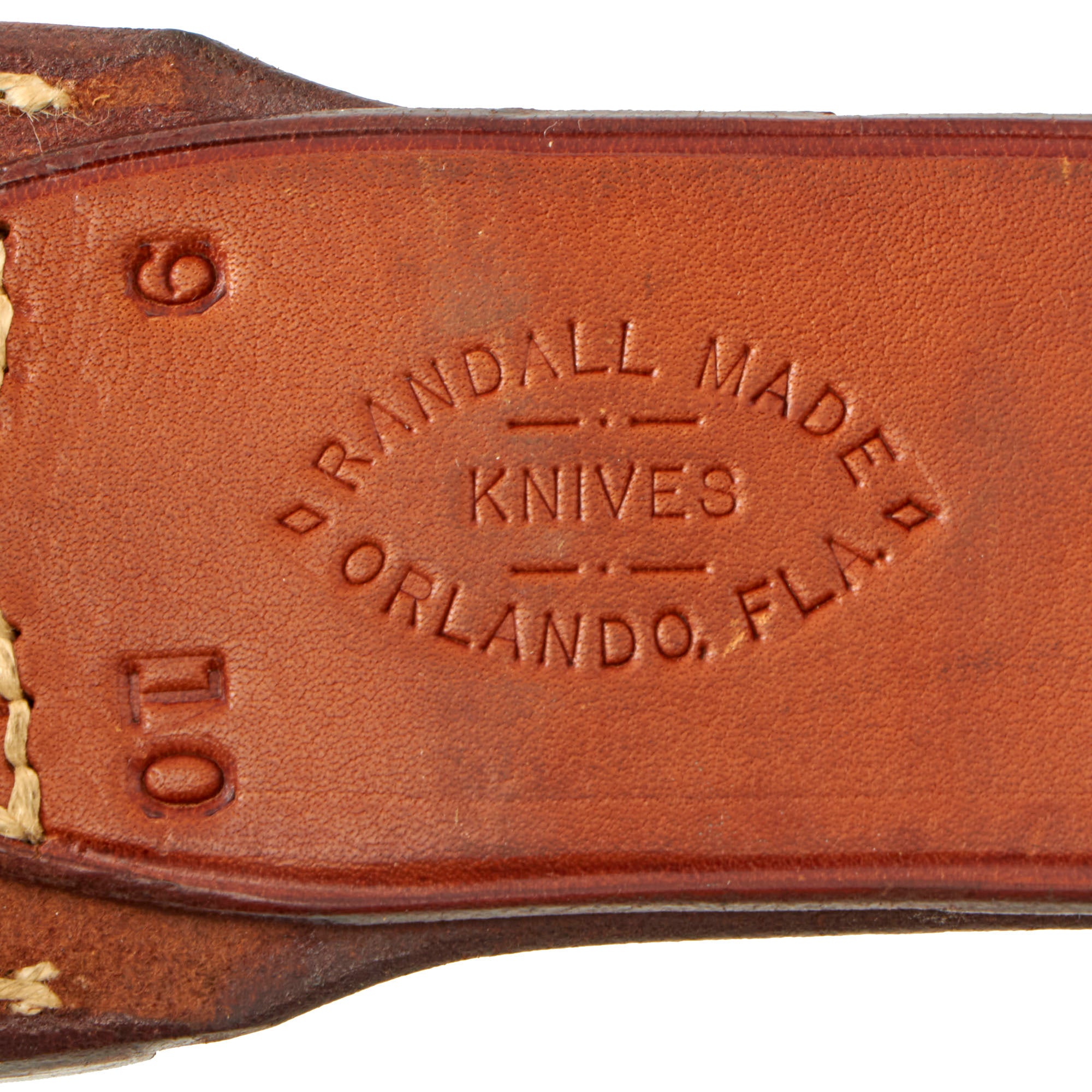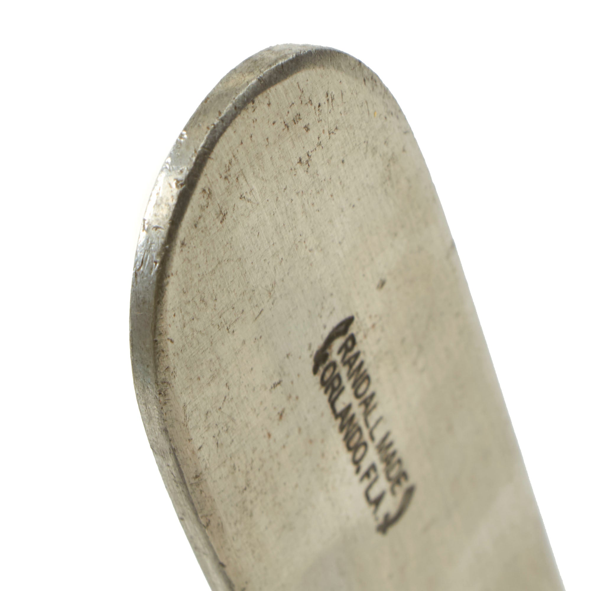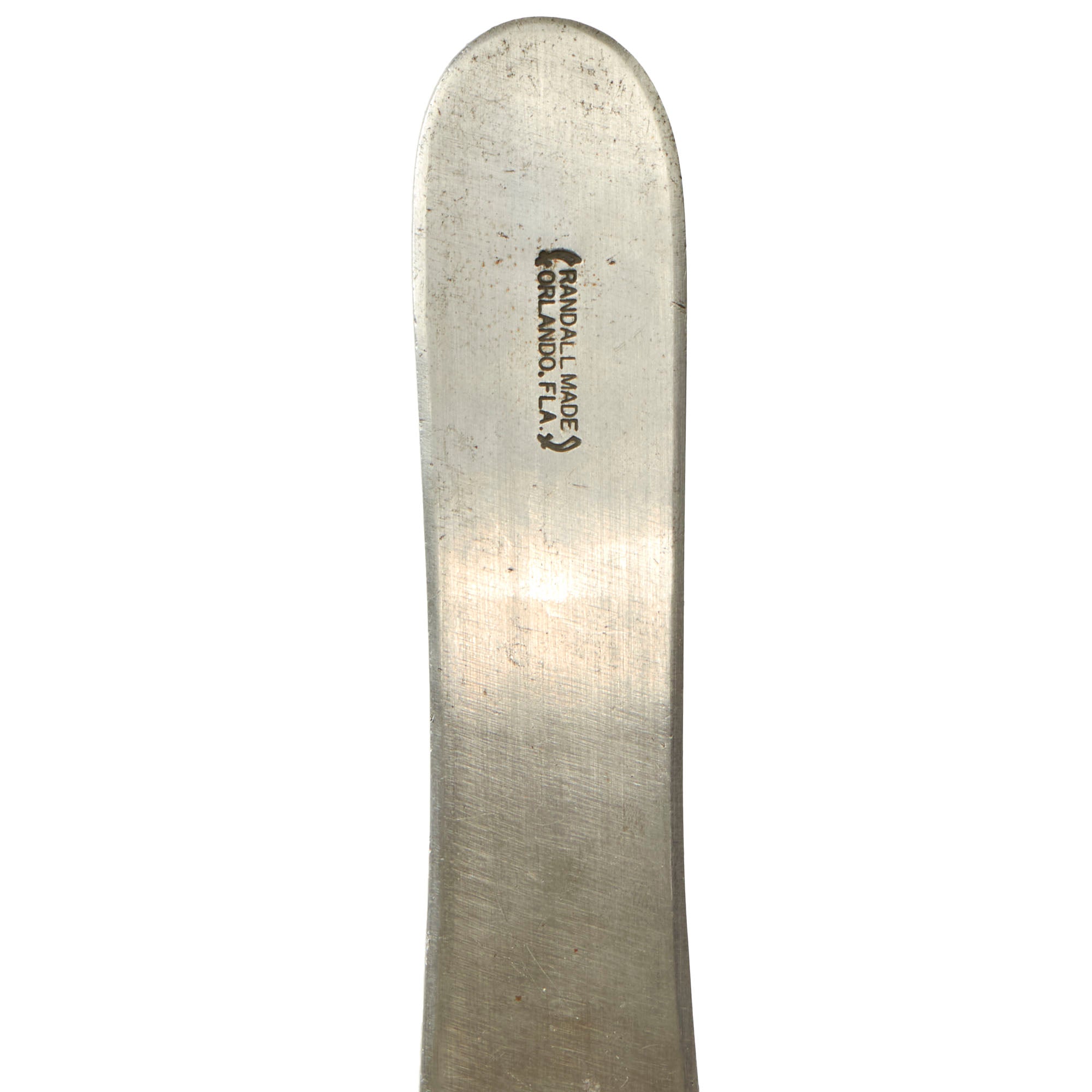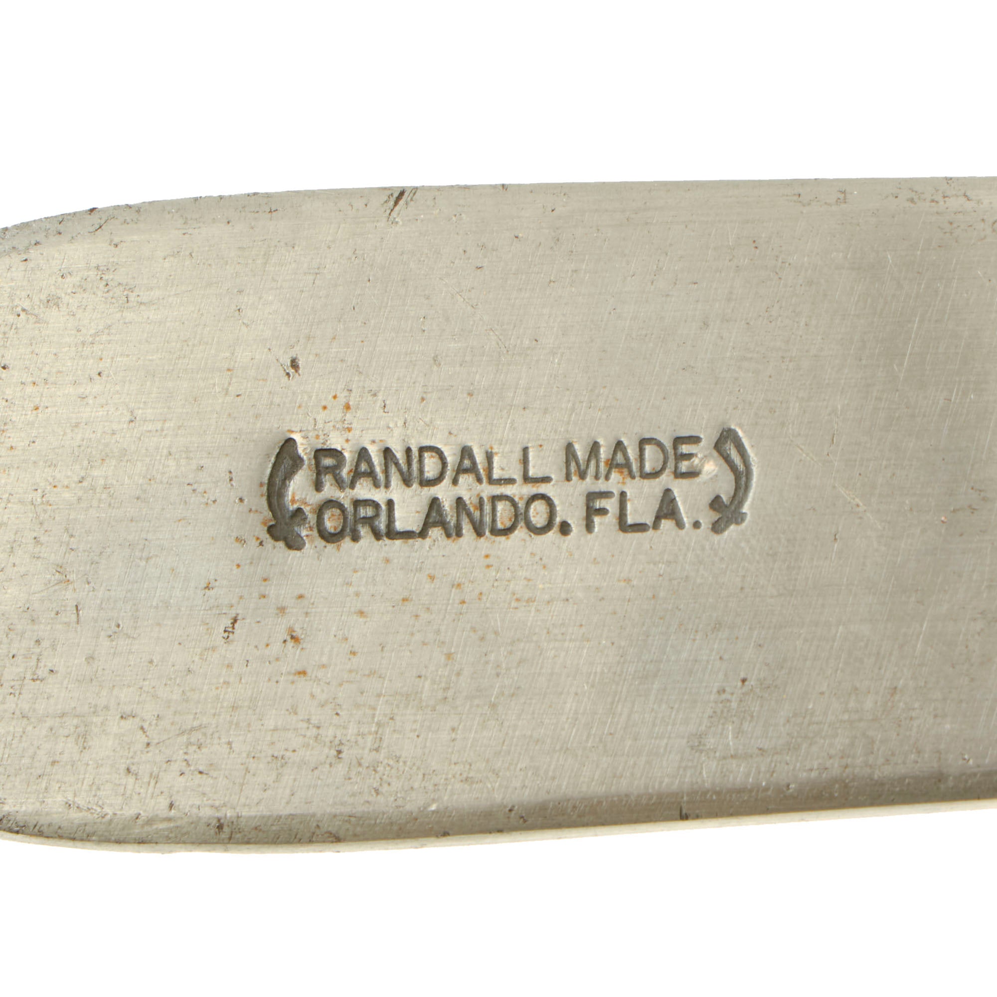 Production was limited, due to restrictions on wartime material and an unwillingness to compromise on the high-quality steel needed to make a proper fighting knife. The knife measures 12 inches overall, with a 2 ½” sharpened false edge and the scimitar flanked address reading "RANDALL MADE/ORLANDO FLA" on the left side of the blade.