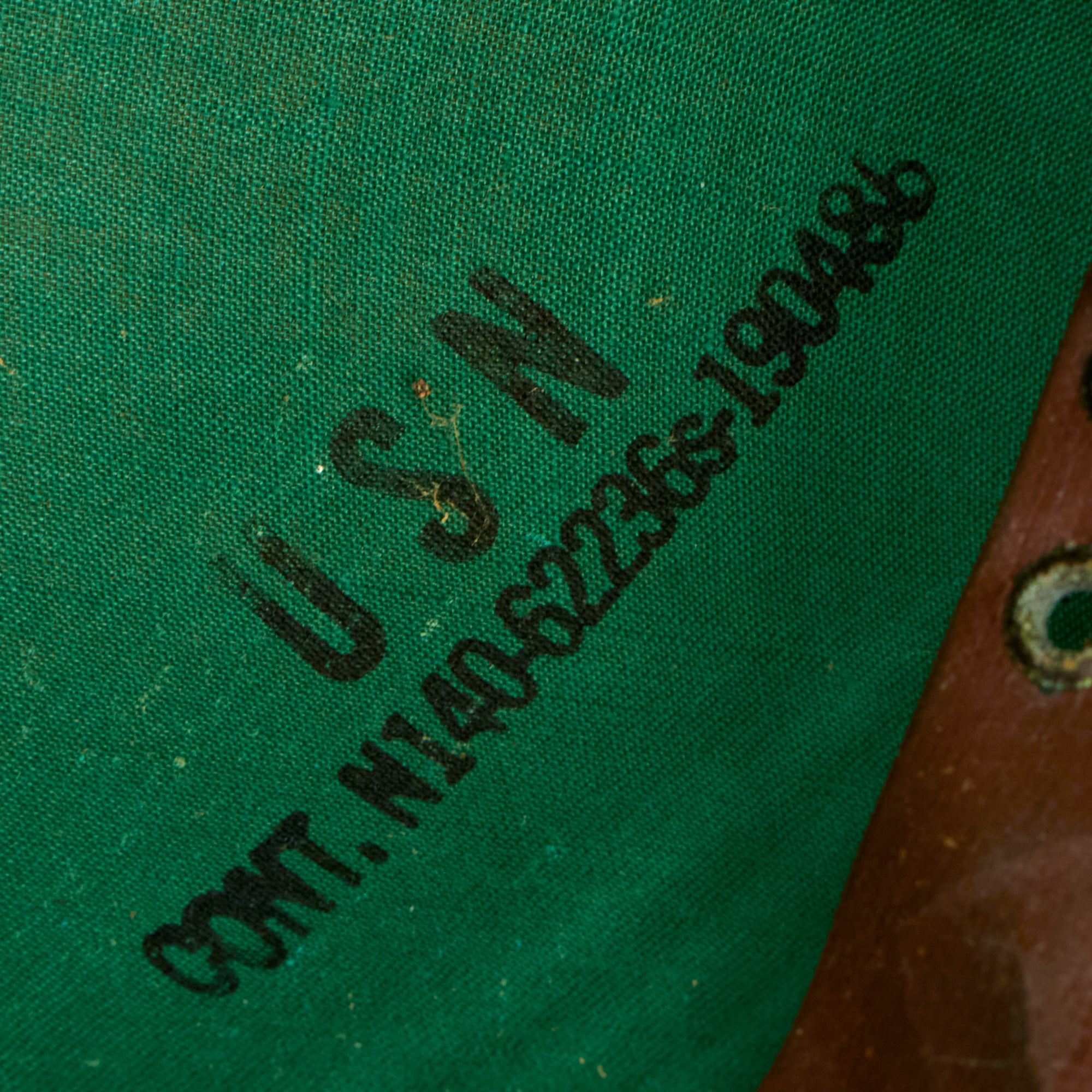 The fabric exterior was treated, during pacific theatre use, with a water resistant paint which is still present and in excellent condition. The size is roughly 7-⅝.