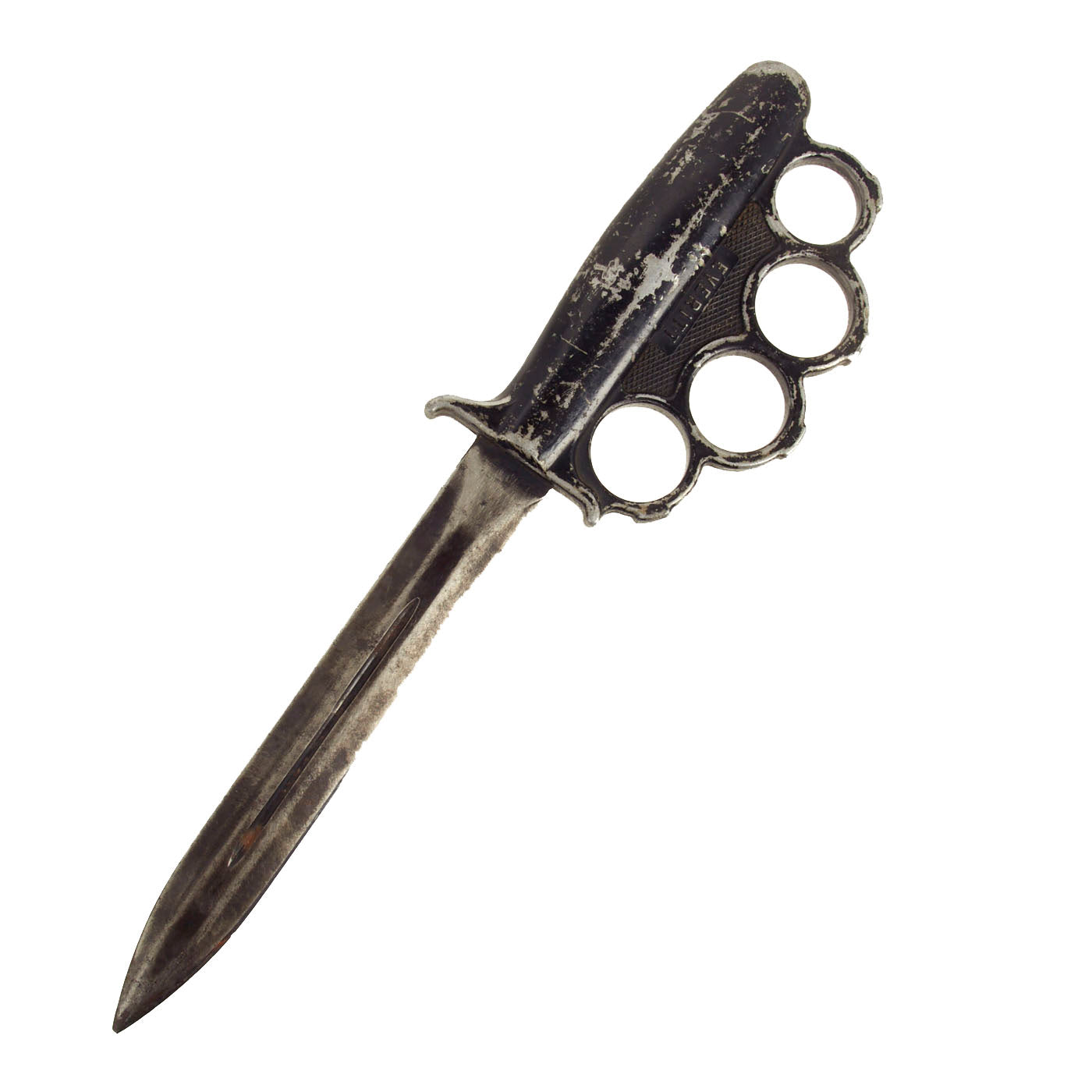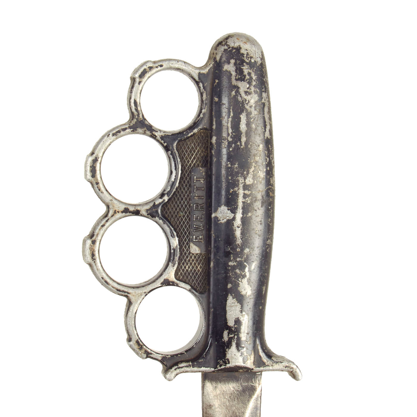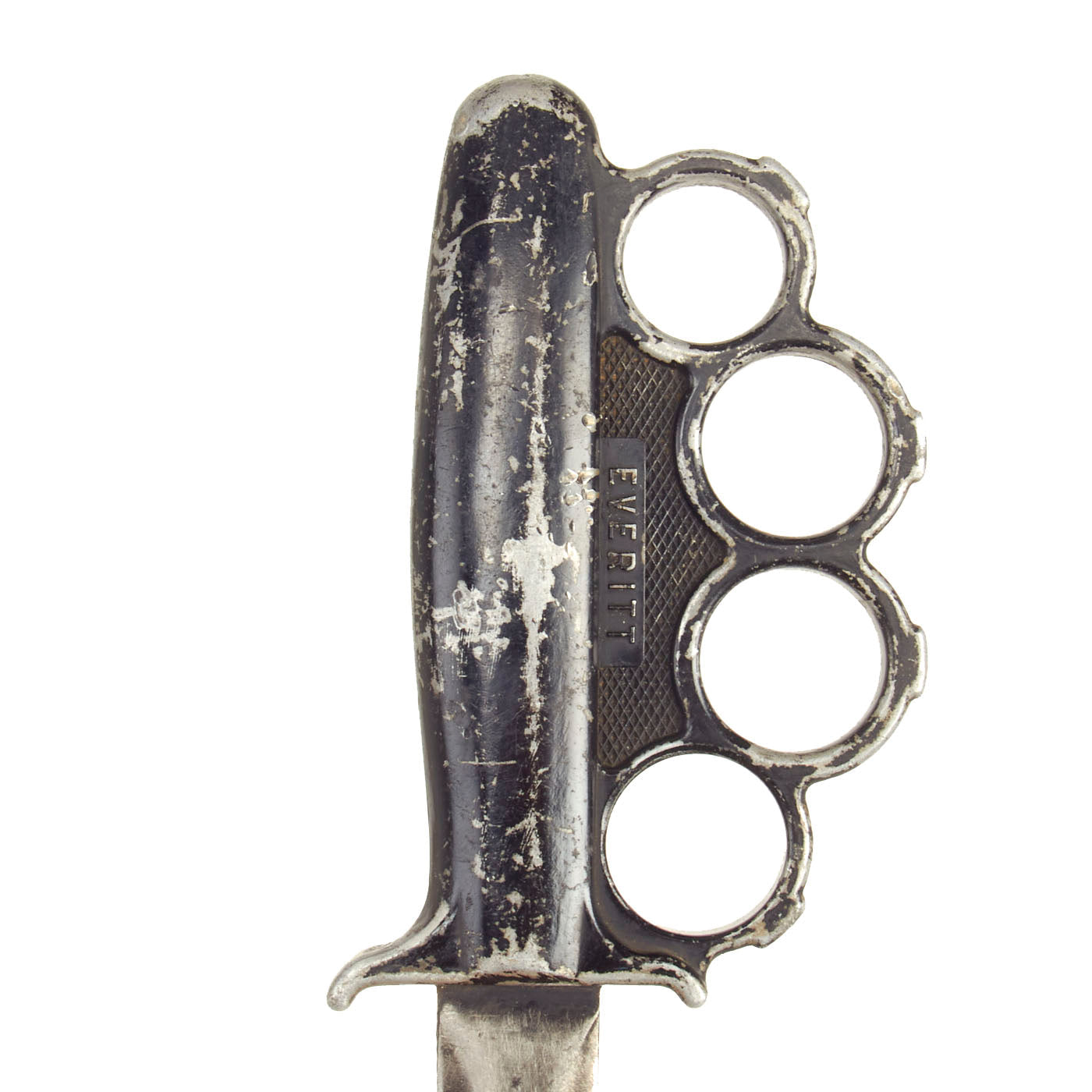 Original Item: Only One Available. This is a nice example of the rare U.S. WWII Everitt Knuckle fighting knife. These are one of the most mysterious U.S. Edged Weapons of all time, as no one knows what exactly the origin of the knives are. No reference indicates that anyone knows who “Everitt'' was, or who the company that produced the knives were. Some have surmised that it was the location of manufacture, but due to the passage of time, most likely the true answer will never be known. “Everitt'' Knives, most likely were fabricated in small numbers in a small workshop, like so many knife makers who made blades for troops overseas during the war.