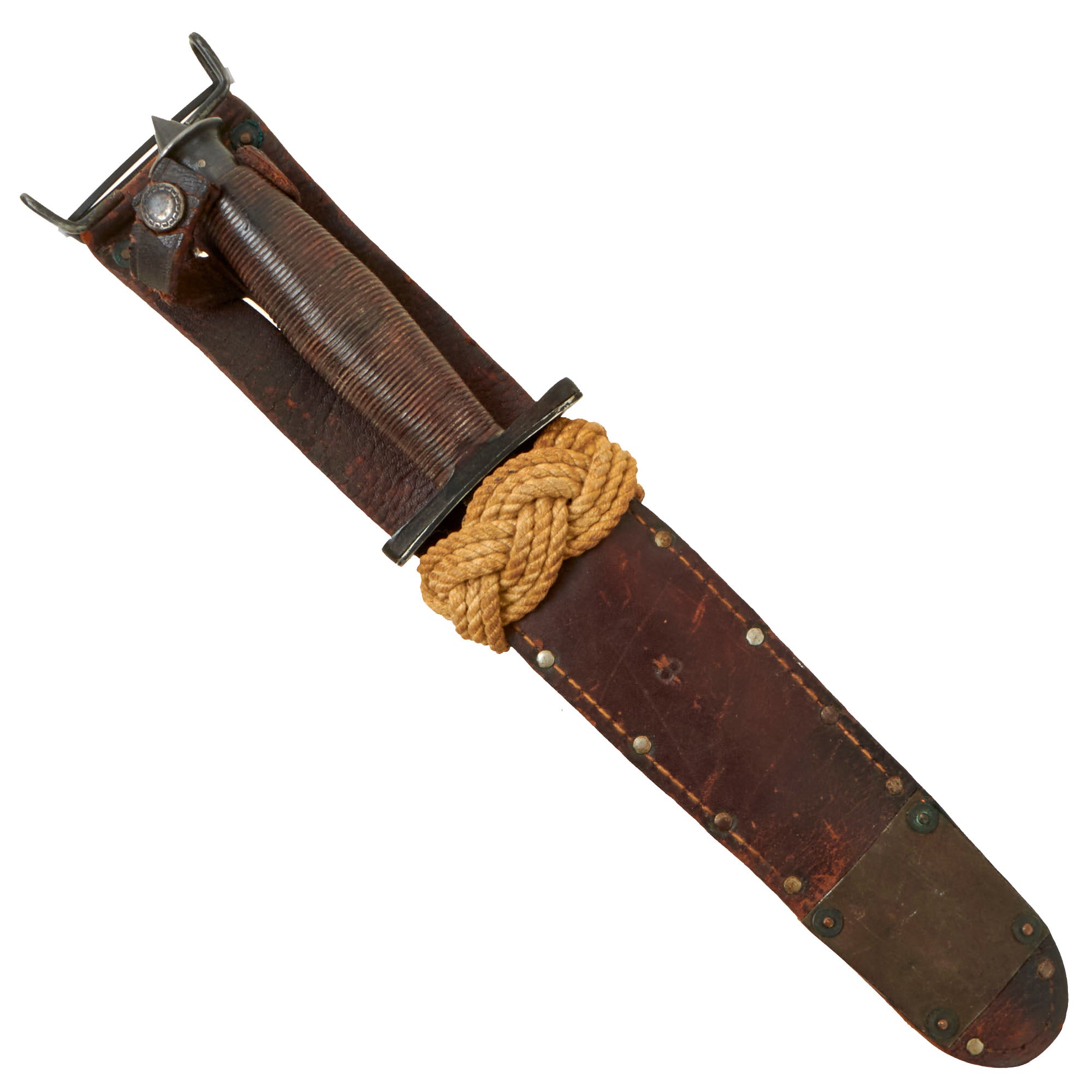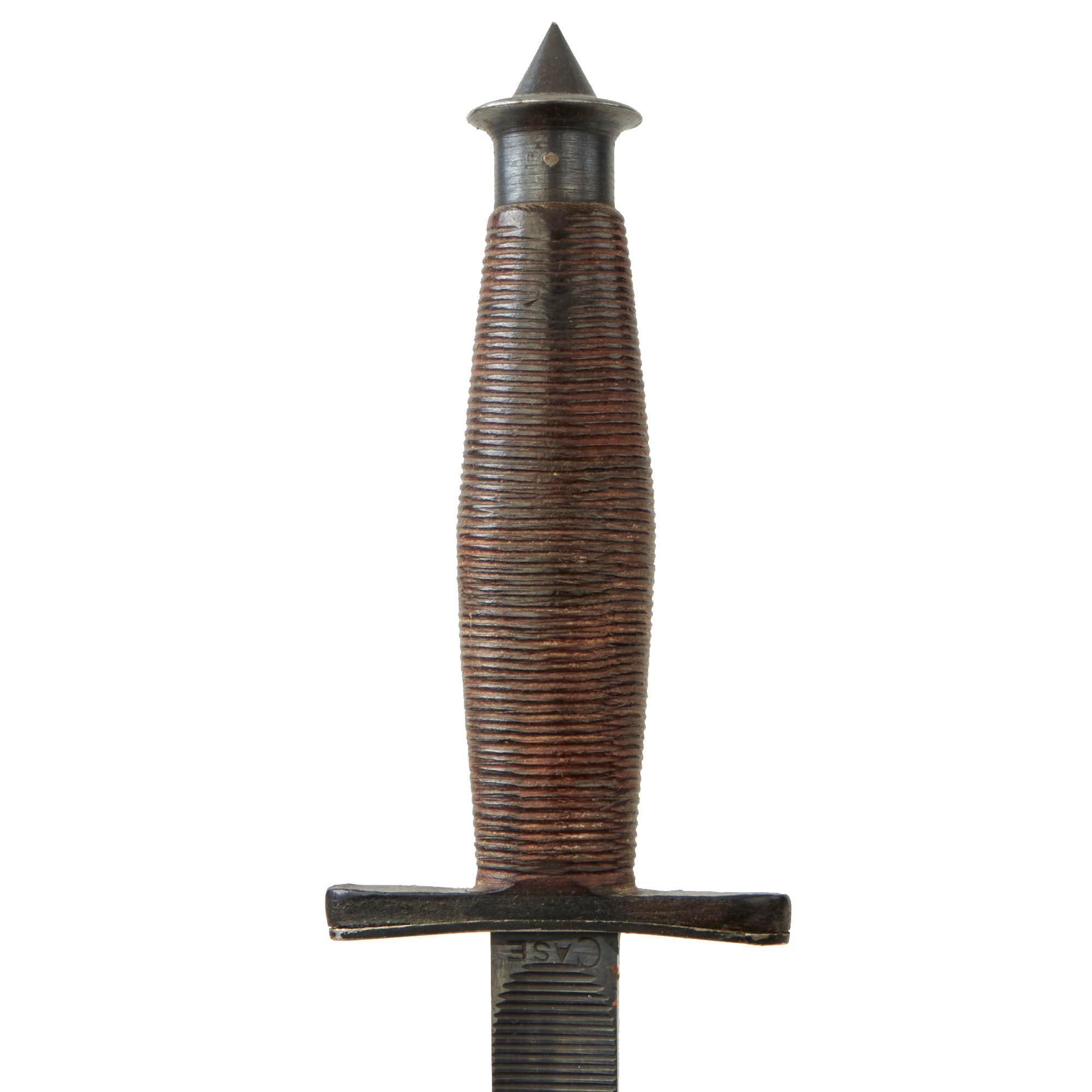 Original Item: Only One Available. This is one of the nicest V-42 Stilettos we have ever come across and we are more than proud to be offering it for sale! The V-42 stiletto was a fighting knife issued during World War II to the First Special Service Force (1st SSF or FSSF, also known as Devil's Brigade), a joint American/Canadian commando unit. The stiletto does have very, very little wear present aside from the scabbard which aided in the preservation of the beautiful blade. An exceptional example for the advanced edged weapons collector!
