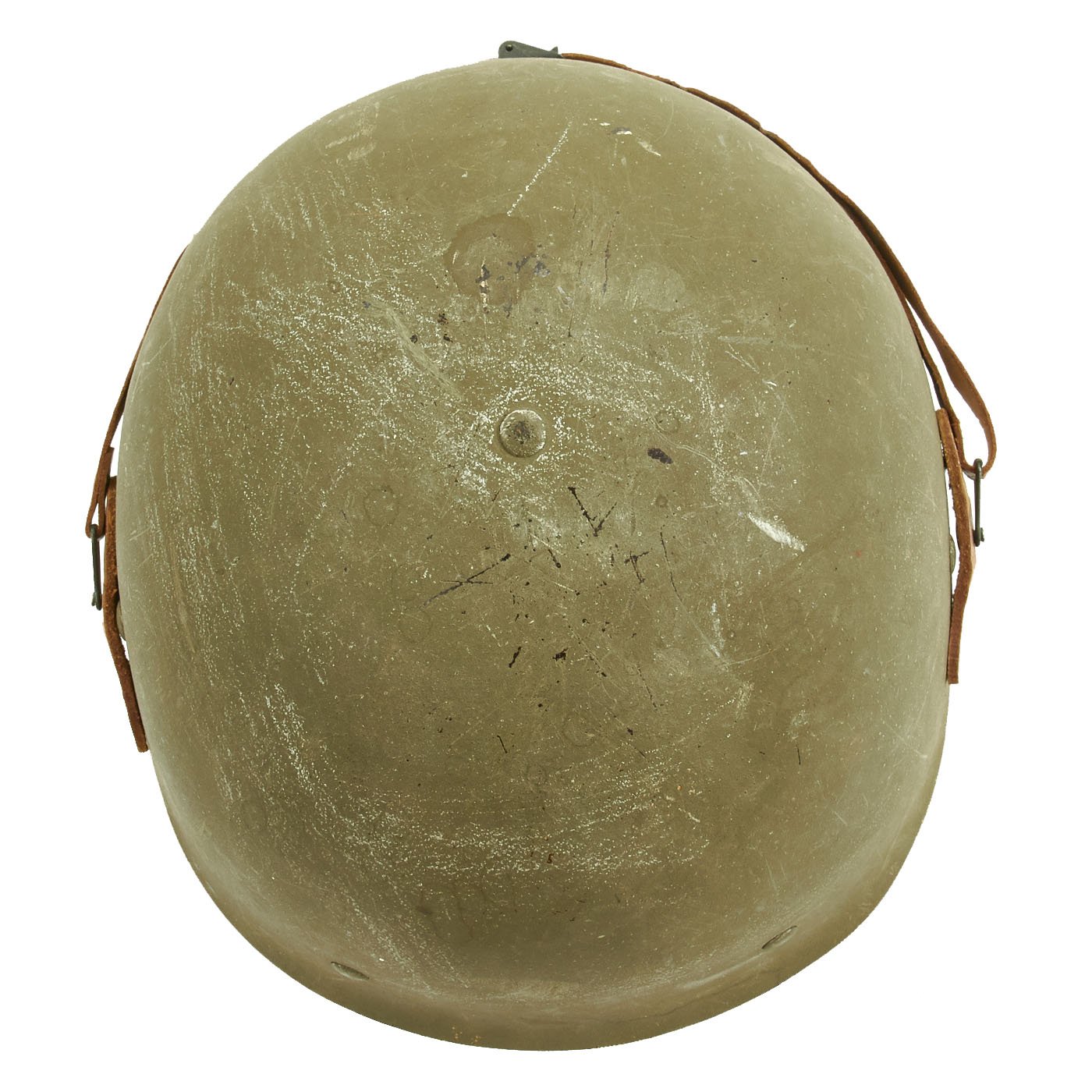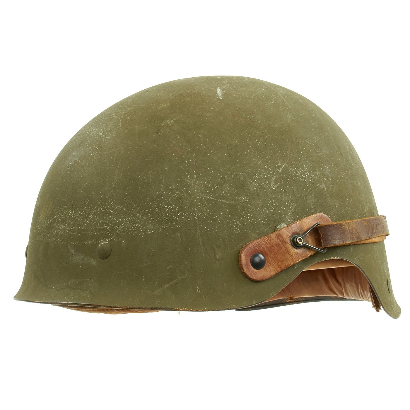 The shell for these helmets was a modified M1 design, with the lower front removed, so that goggles and earphones could be used. This is a great chance to fill a hole in your U.S. WWII helmet collection. Ready to display!