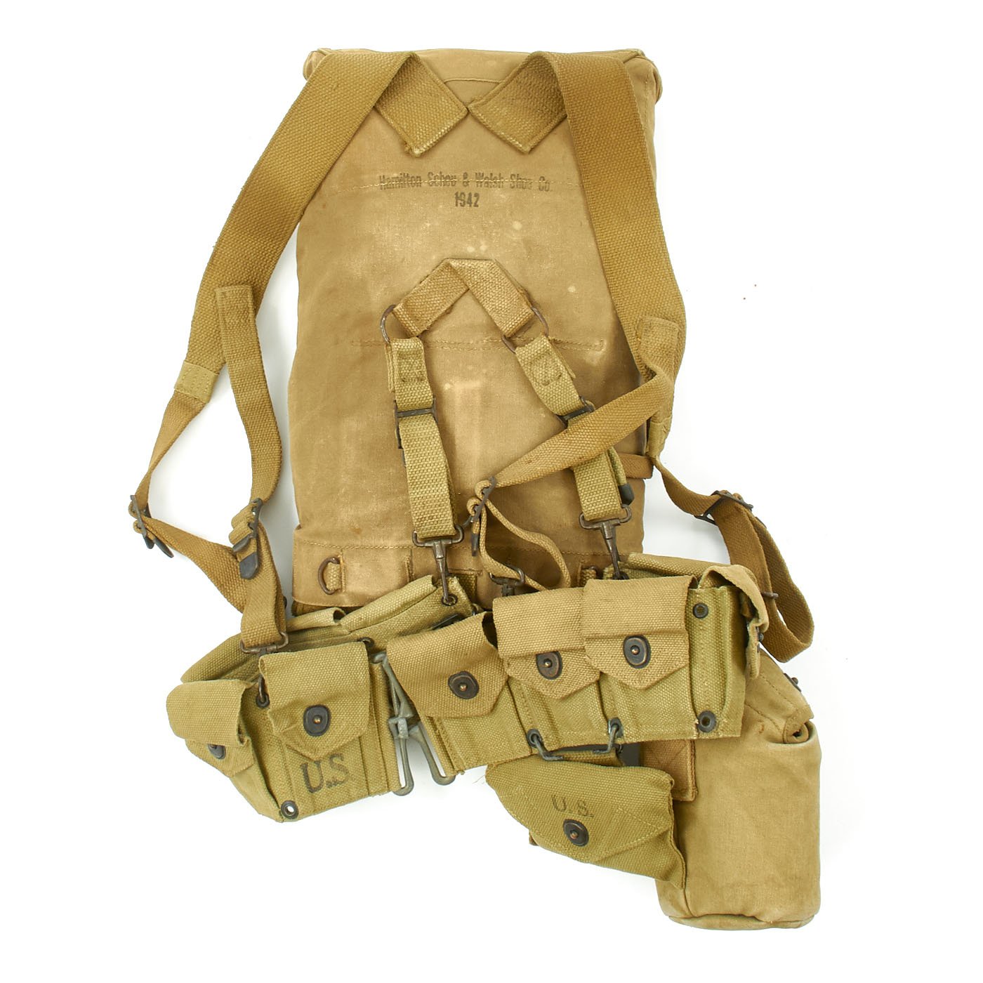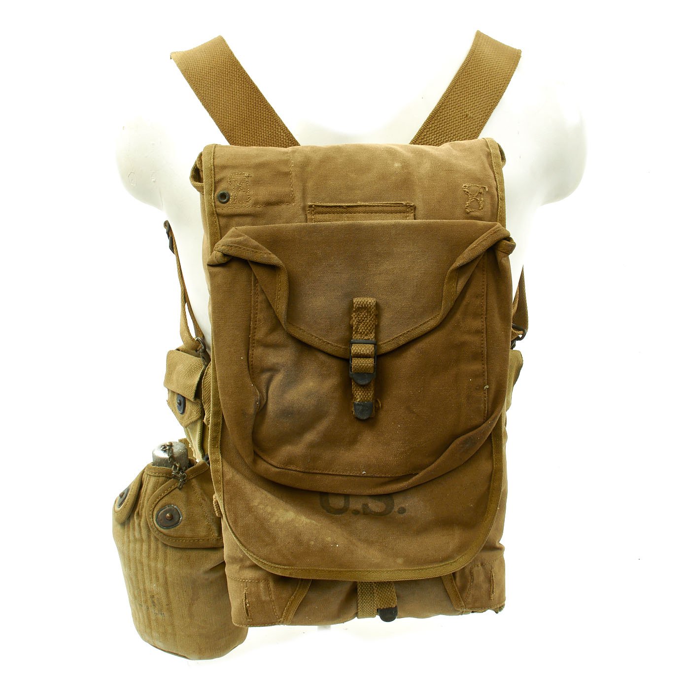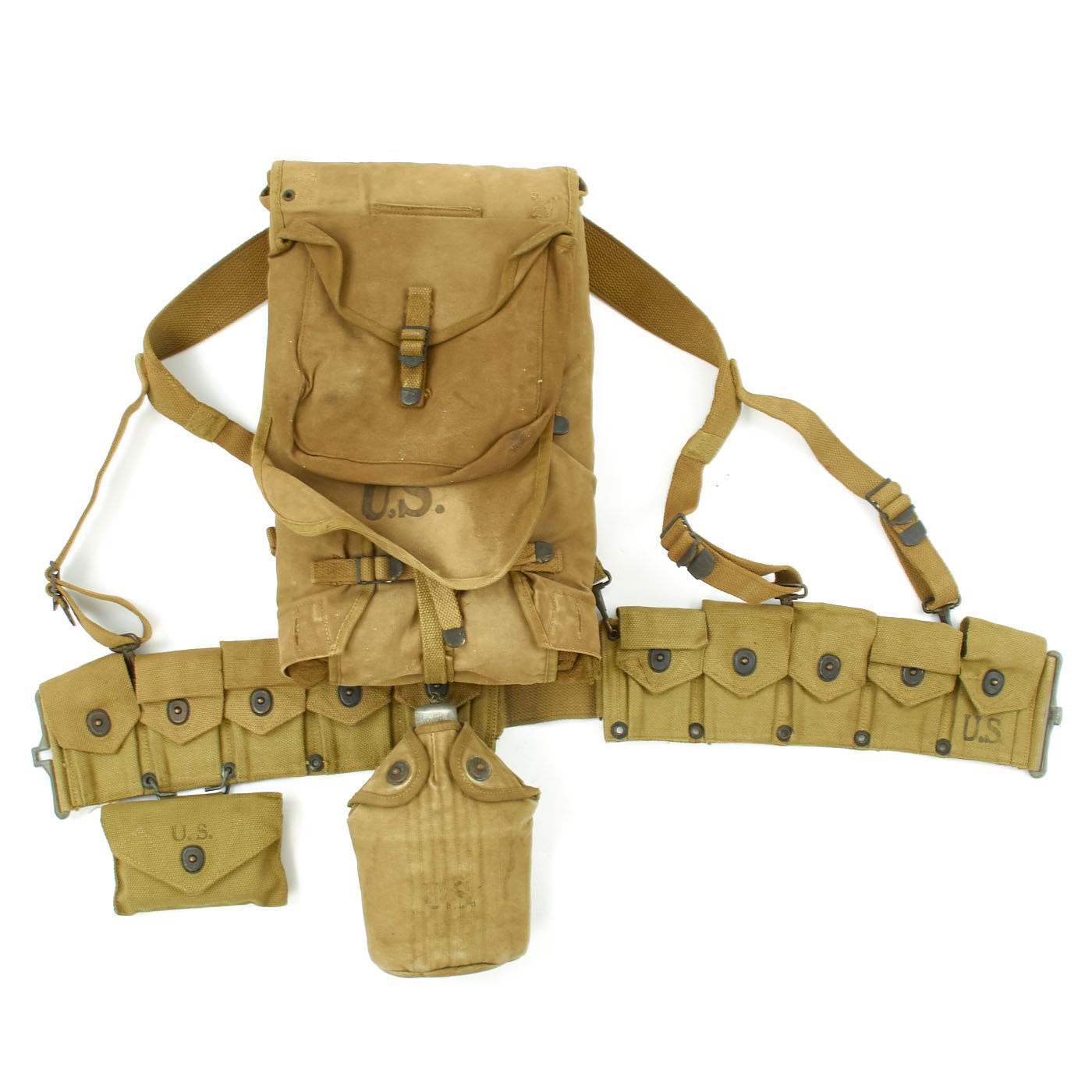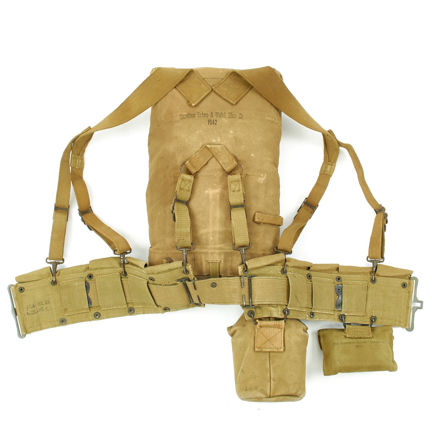Original Item: Only One Available. This is a very nice U.S. WWII Field Gear set, containing a lot of the items that a typical U.S. Army soldier might be outfitted with in the field. All components are U.S. marked as well as maker marked, and some have dates.