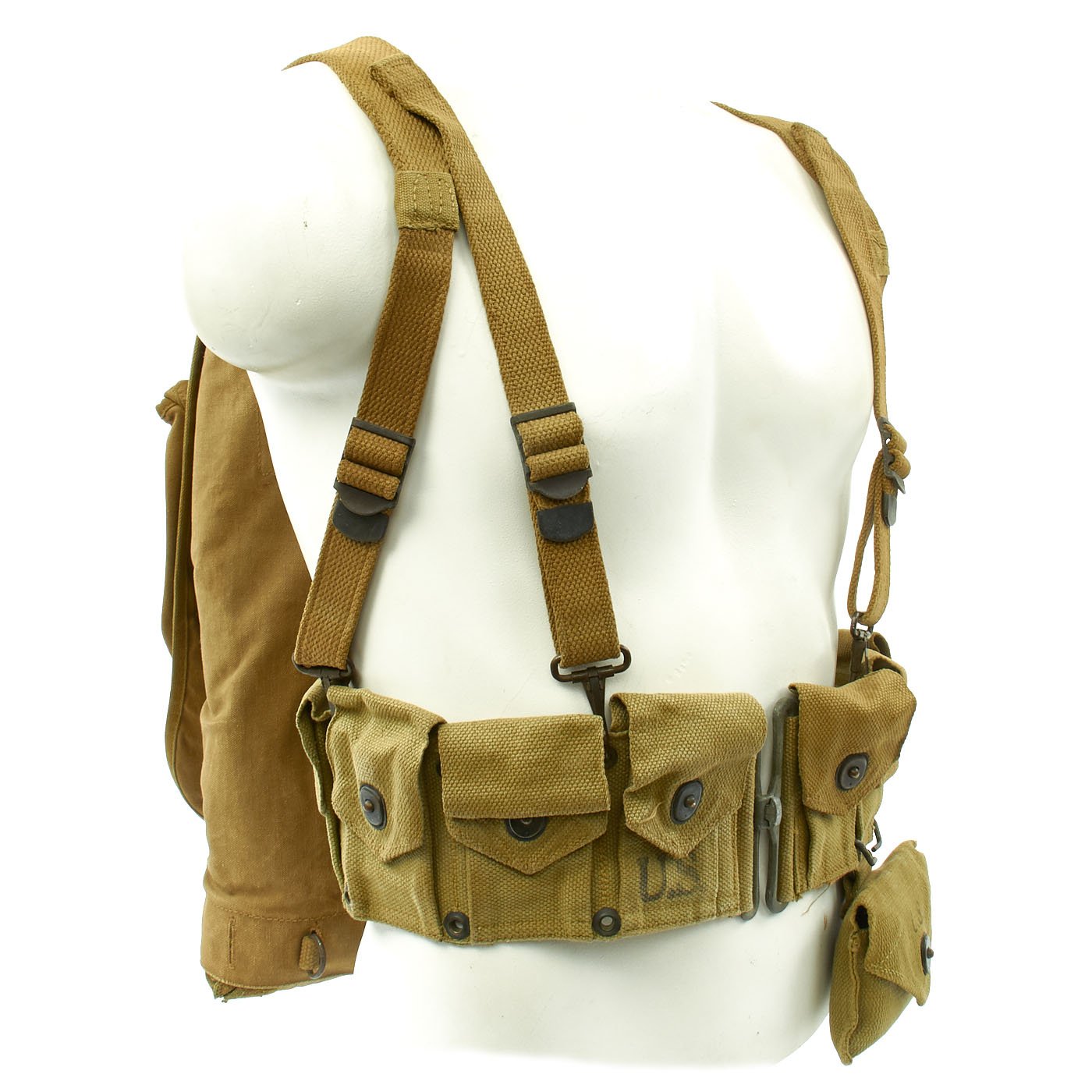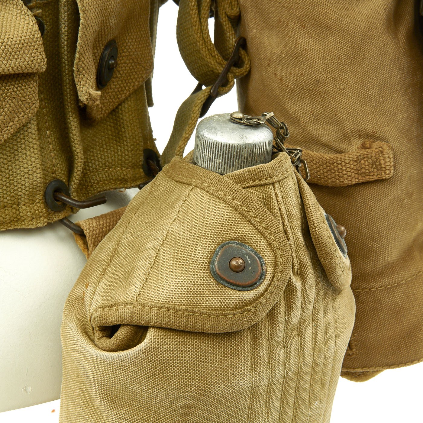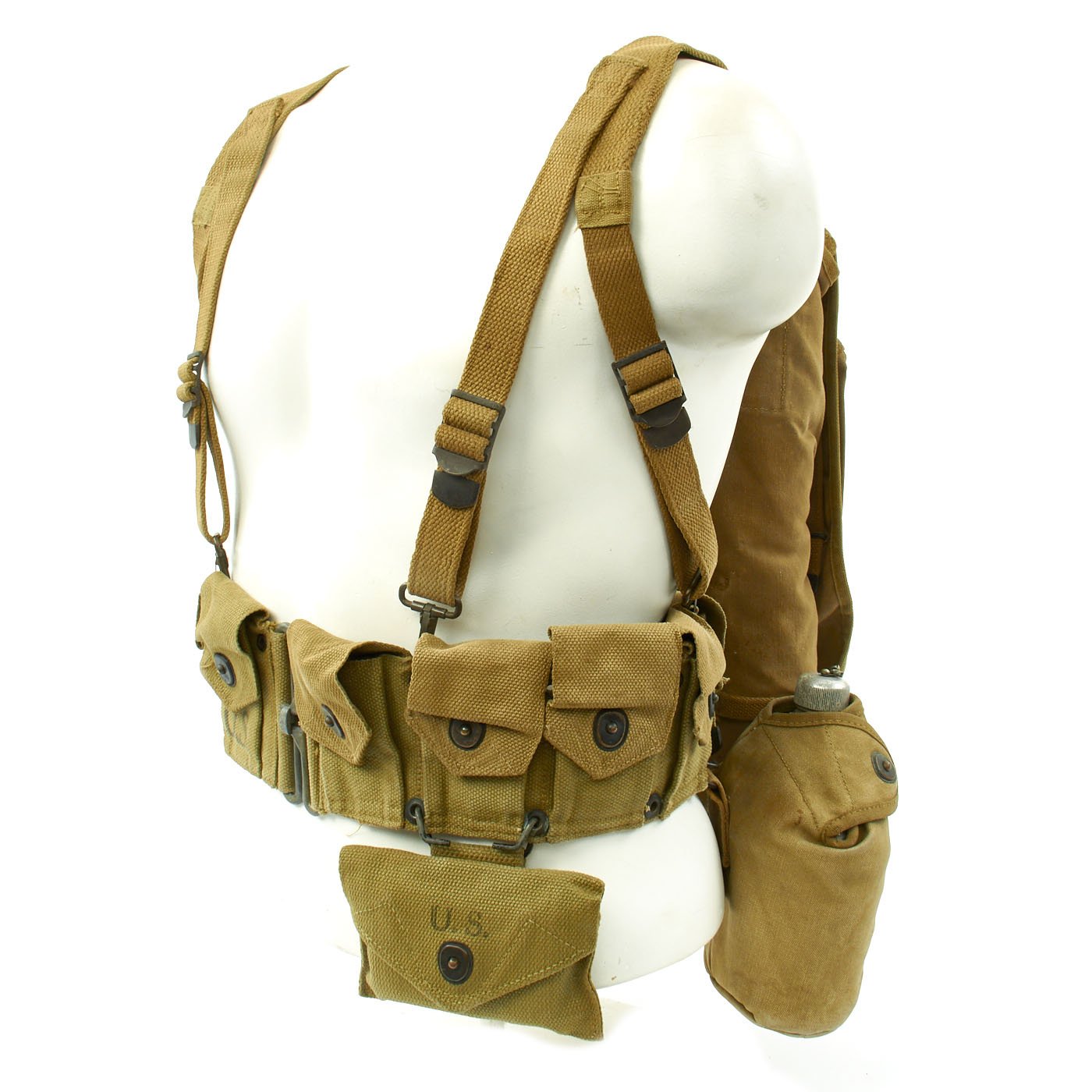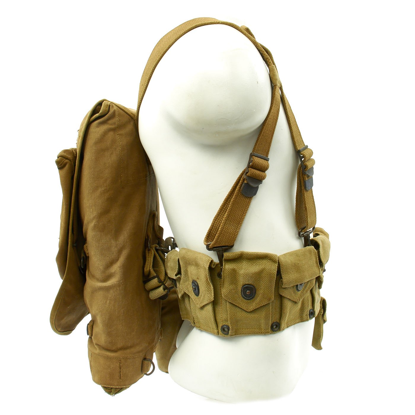 Original Item: Only One Available. This is a very nice U.S. WWII Field Gear set, containing a lot of the items that a typical U.S. Army soldier might be outfitted with in the field. All components are U.S. marked as well as maker marked, and some have dates.