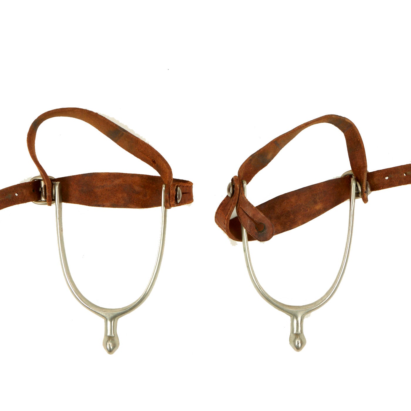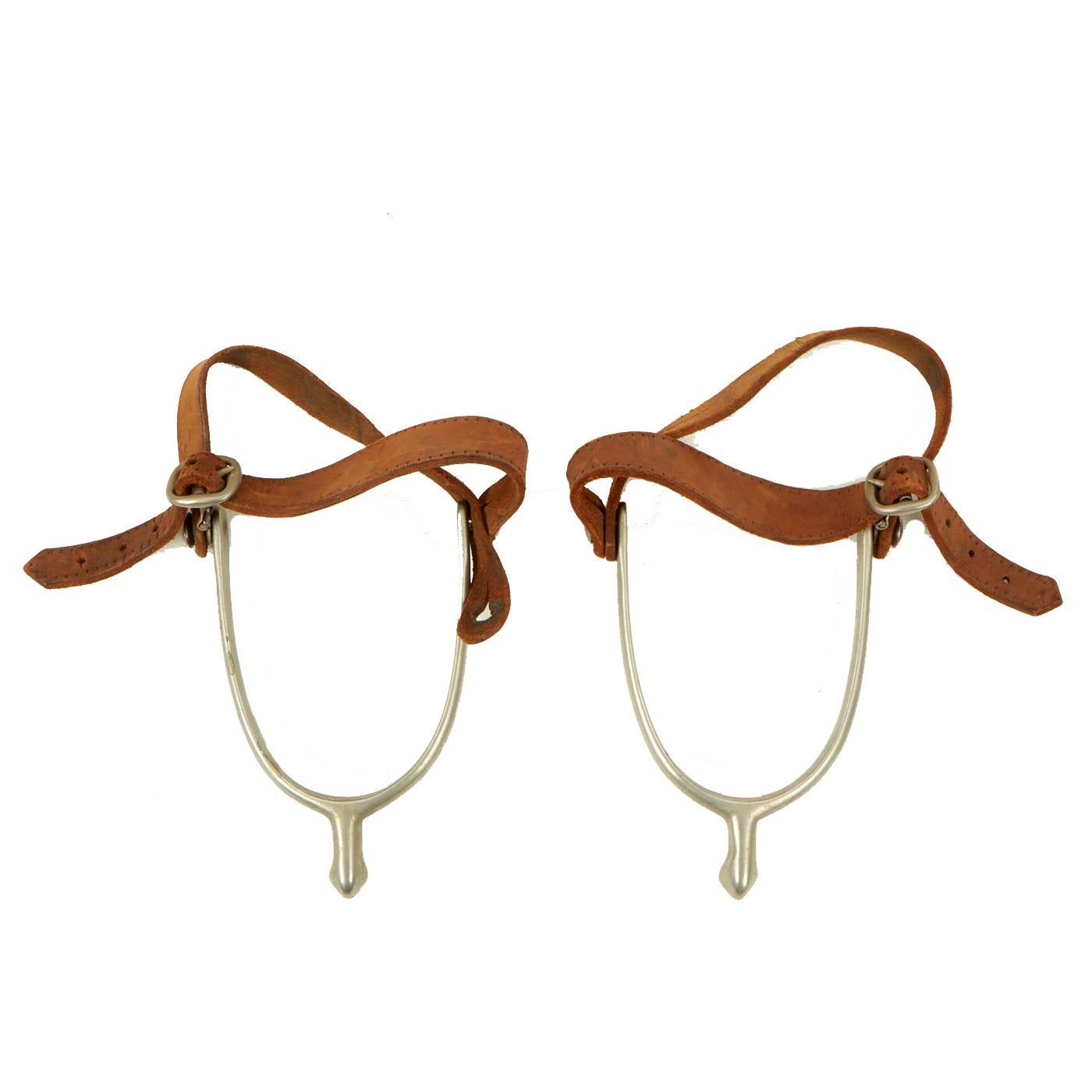 - Pair of M1911 Cavalry Spurs: The spurs are english style and both are stamped “Rust Free” on the insides. The leather and buckles on both are still solid and complete but show signs of definite use and wear.