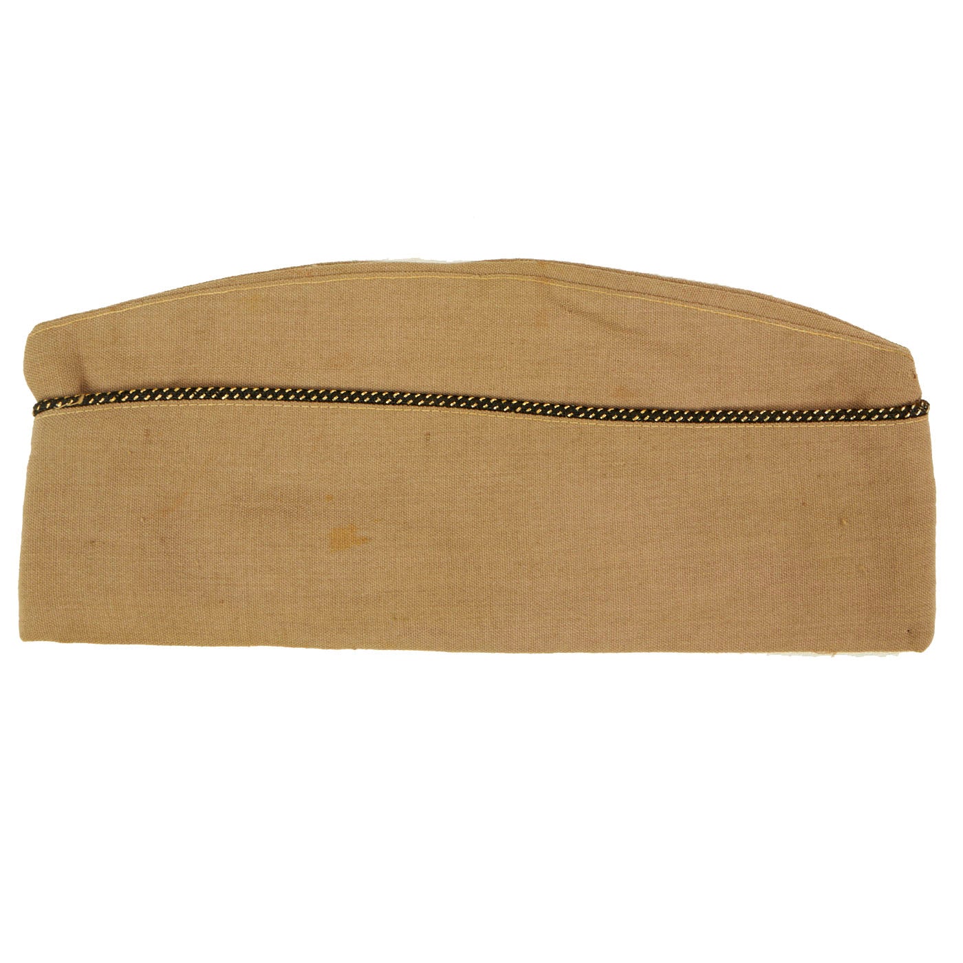 - One Garrison/Overseas Cover: The cover features a black with gold accent piping. There are a few moth holes but no significant damage. The cover is a size 7 ¼.