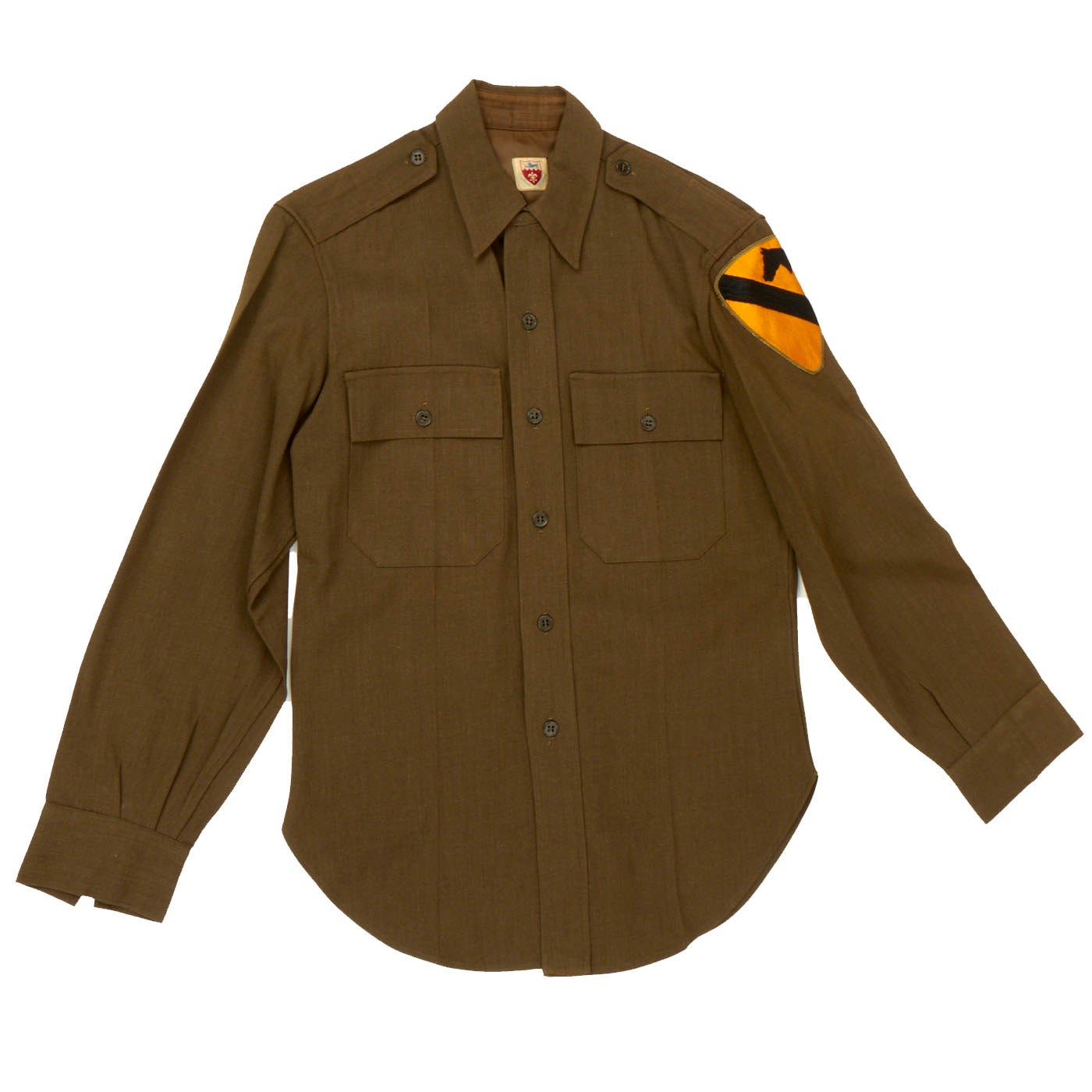 -Tailored Green Service Shirt: This is a custom tailored green shirt and features a vibrant 1st Cavalry Division patch on the left shoulder. The shirt is nearly mint and shows no signs of being worn.