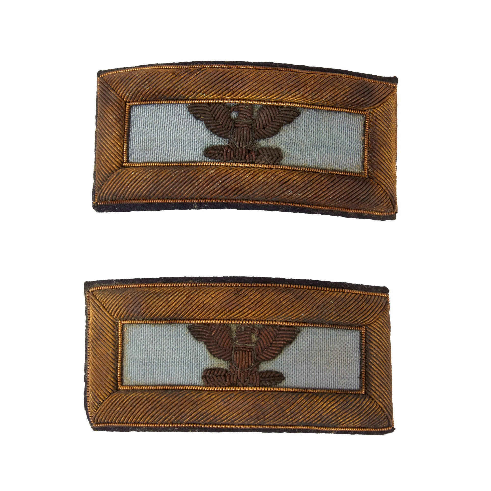 - Moore’s set of Japanese-Made Bullion Colonel full eagle shoulder boards in original box, showing make by Beni Dai & Co., of Tokyo. They cost him $3.20. Great set.