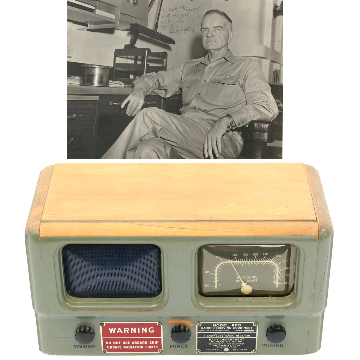 However, what makes this a truly interesting radio is that it belonged to Admiral William Halsey and was gifted to his friend Harold B. Thurber who was a major cattle rancher in Arizona. Accompanying this radio are the following items: