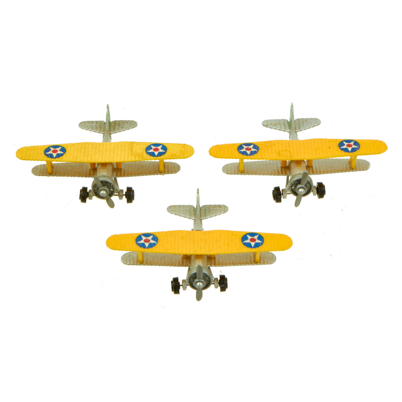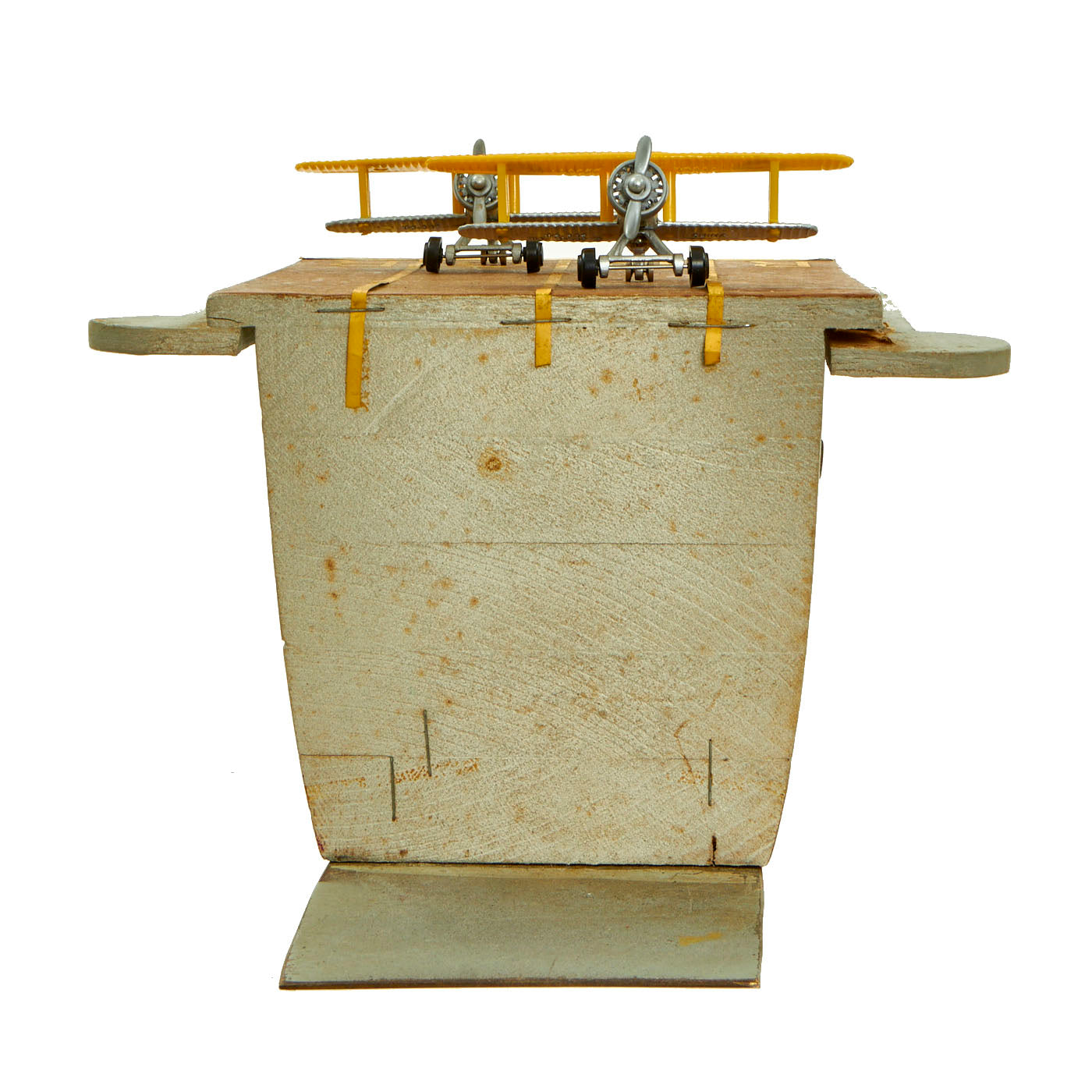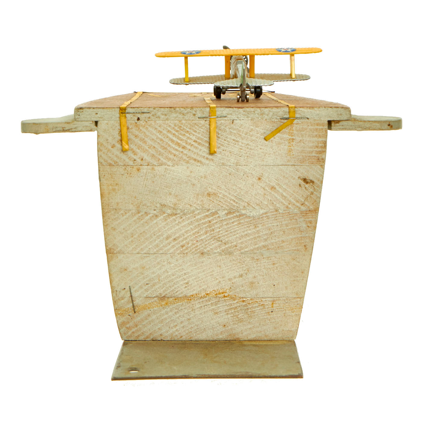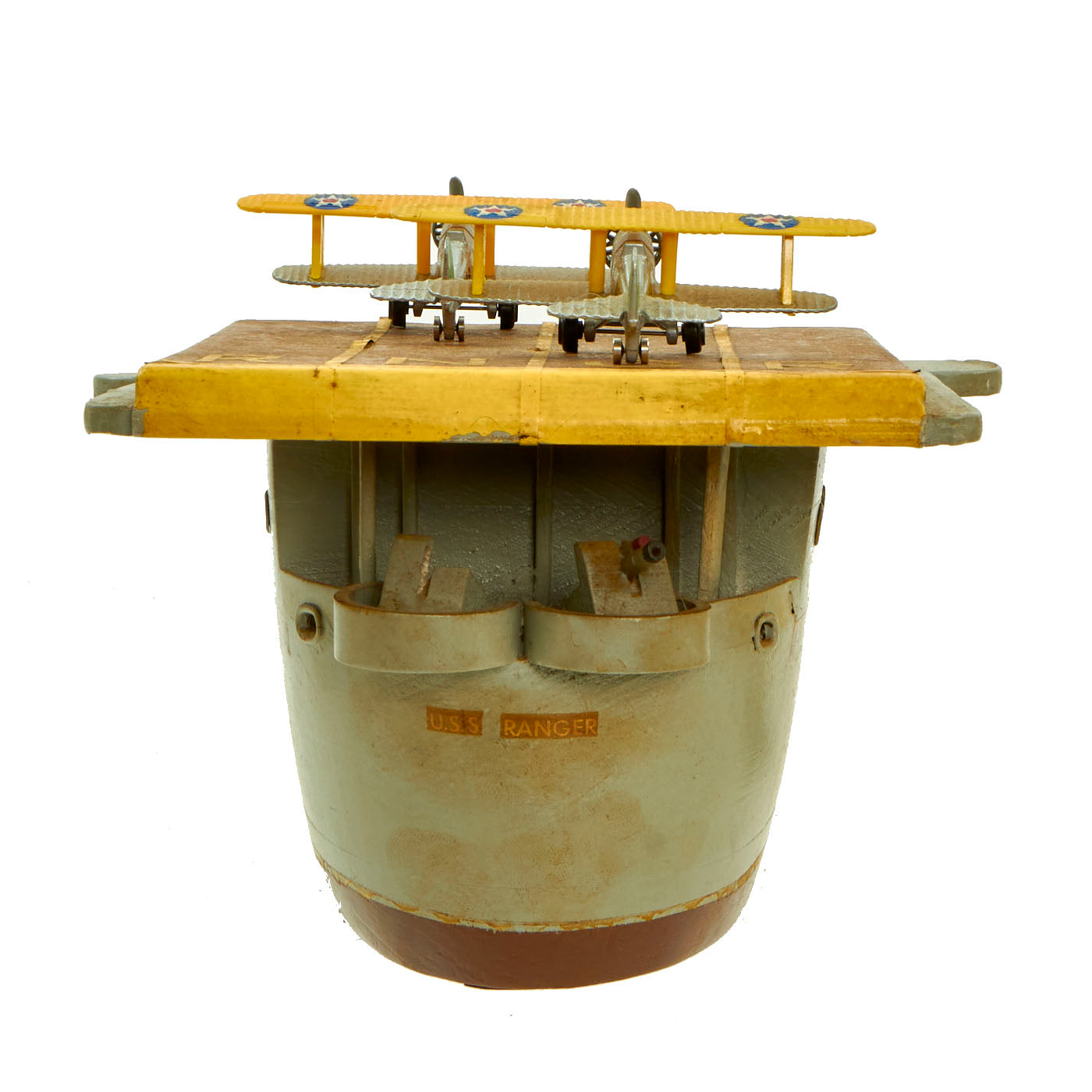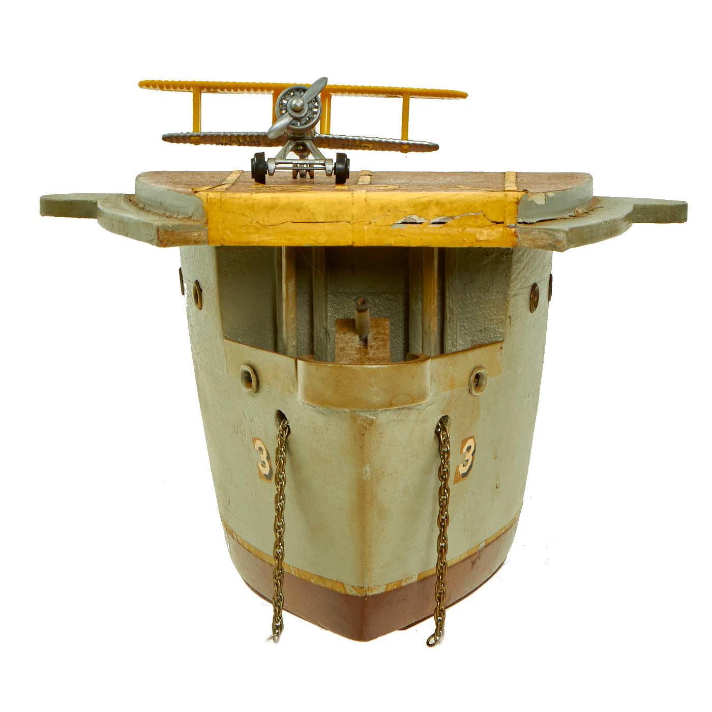 This lovely pair of bookends is definitely classified as being a great example of folk art. Both items are in lovely condition with almost all of the original paint retained. The yellow strips used to mark the tops are unfortunately coming up from the decks of the carriers, but it does not take away from the beauty of them. The 3 aircraft included are a much newer addition to the bookends, but they definitely tie the pieces up!