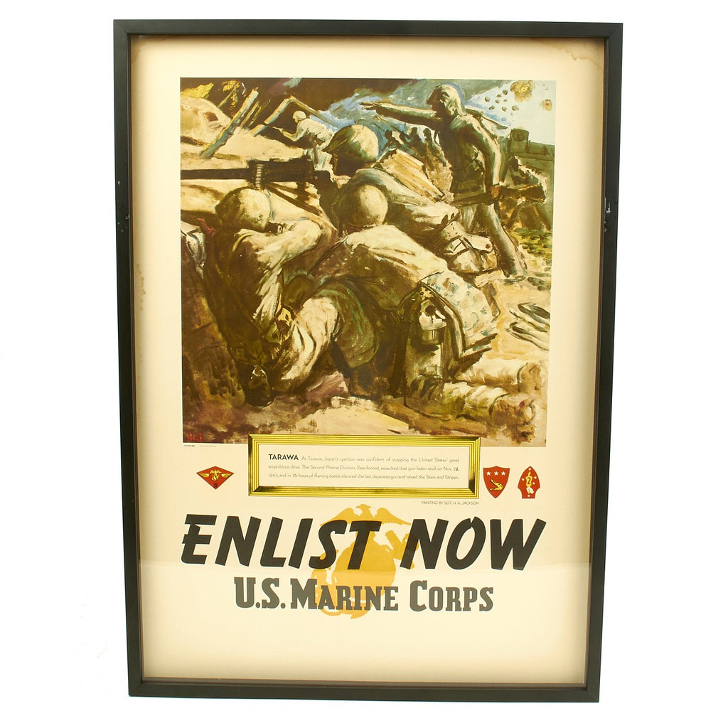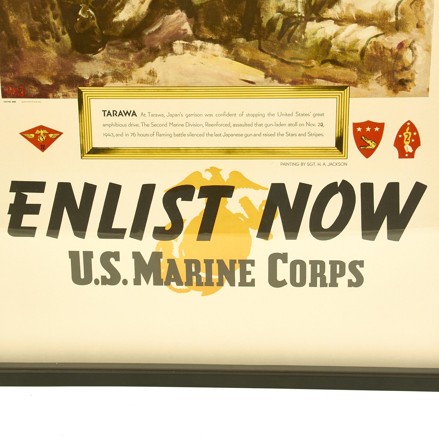 Original IteM: Only One Available. This is a fantastic 1944 USMC enlistment poster which features a painting by Marine Technical Sergeant Harry A. Jackson. The poster reads: