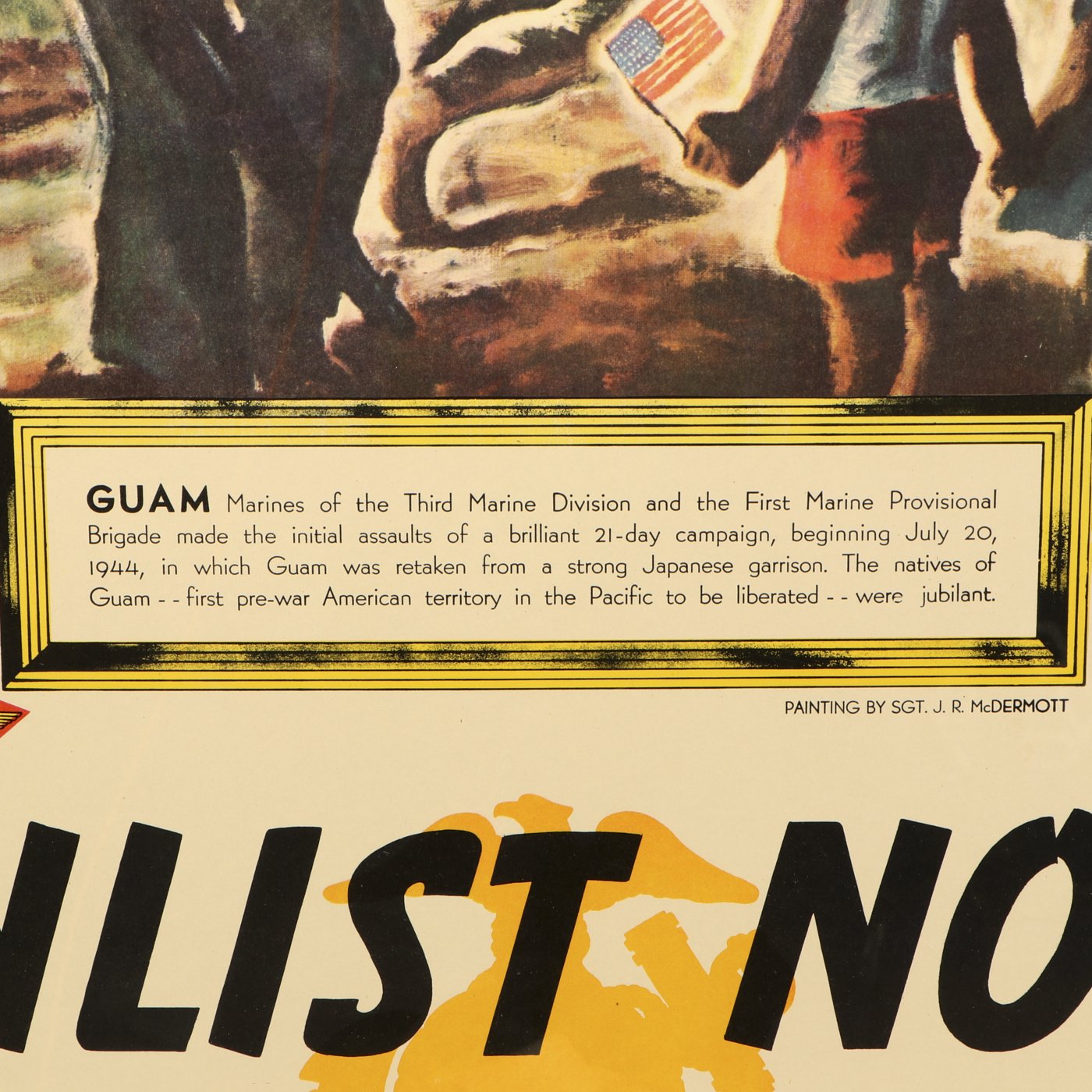 Original Item: Only One Available. This is a fantastic 1945 USMC enlistment poster which features a painting by Marine Sergeant John R. McDermott. The poster reads: