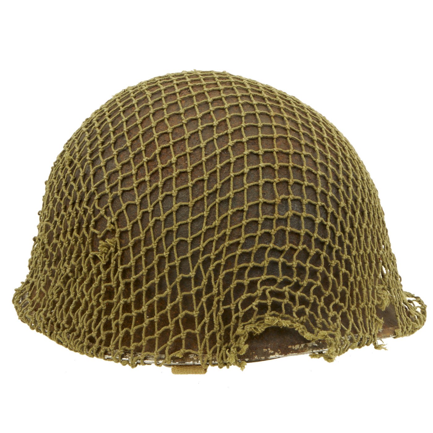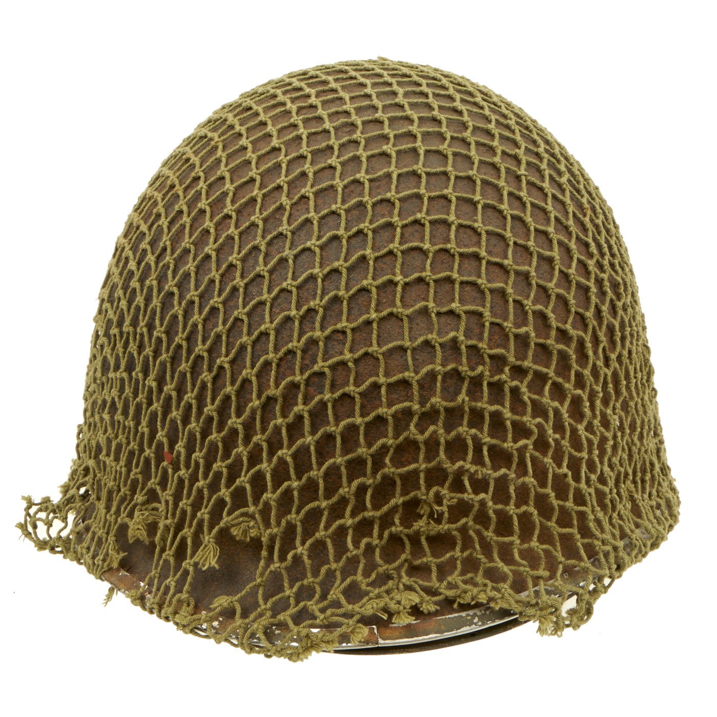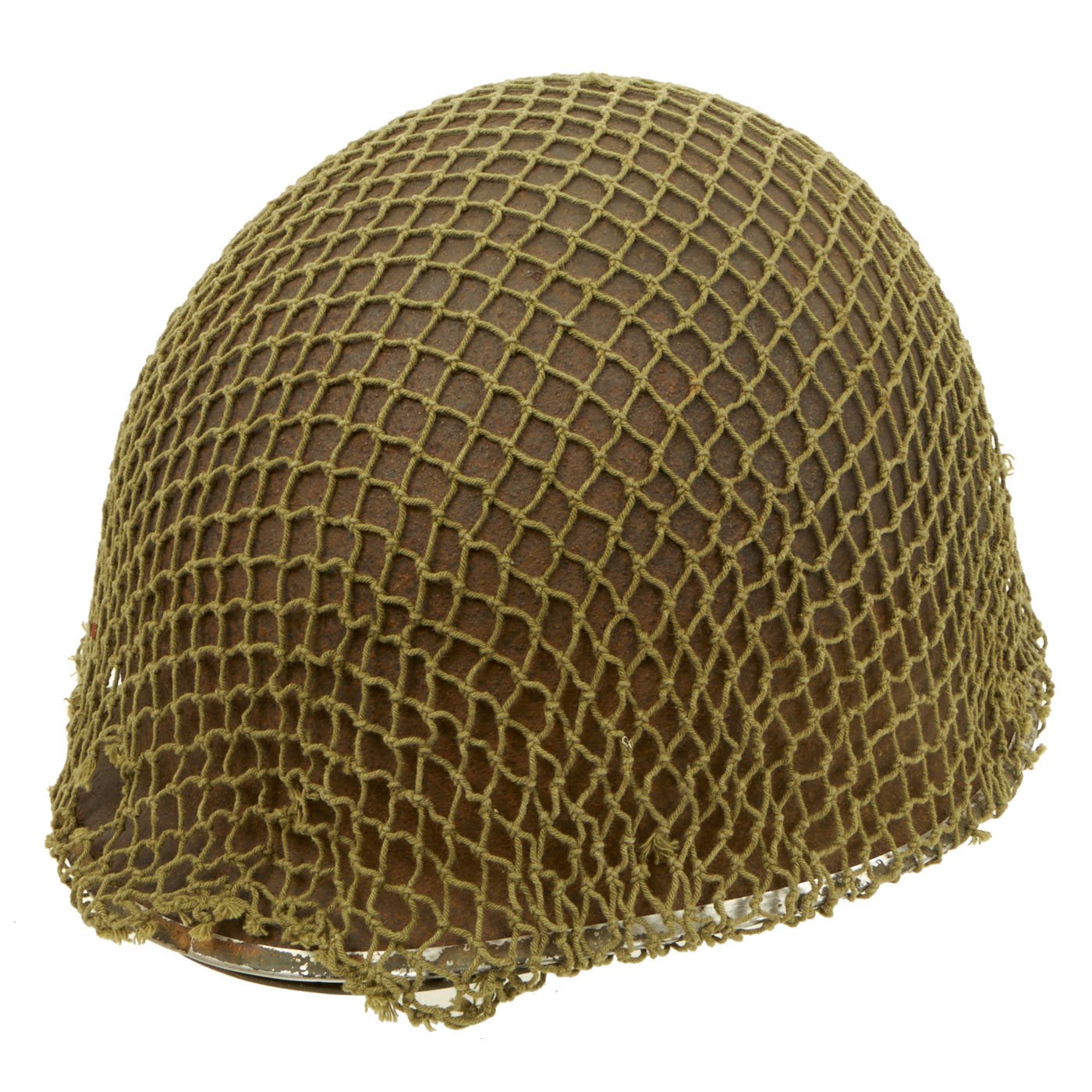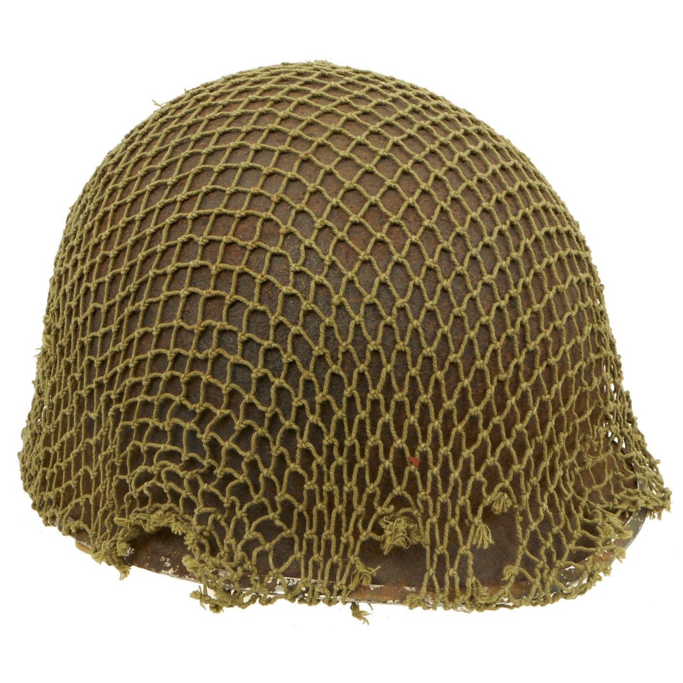 Original Item: Only One Available. This is an example of a genuine WWII Front-Seam Fixed Bale M1 Helmet fitted with an original Helmet liner. The U.S. WWII M-1 helmet was only produced from 1941 to 1945. The first production batch resulted with over 323,510 M-1 helmets before the start of the American involvement in the war.