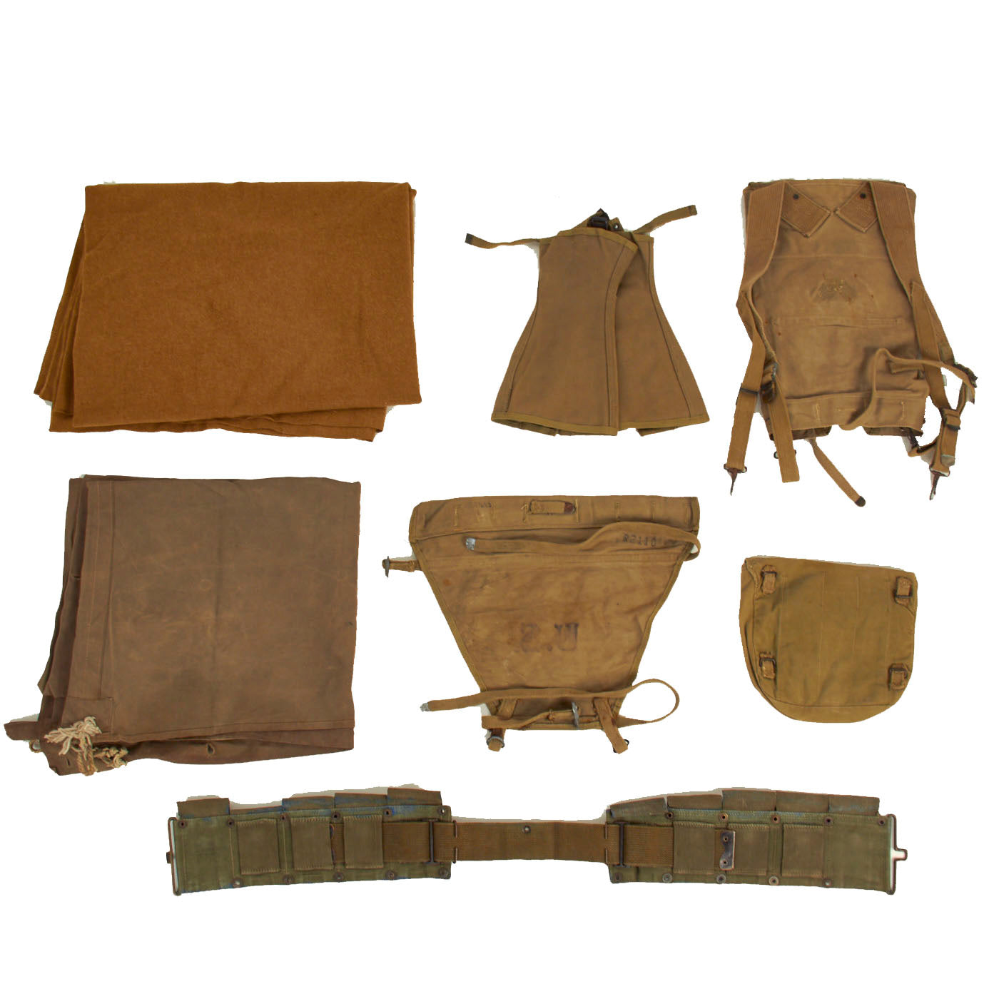 Original Items: Only One Lot of 7 Available. A one of a kind lot of seven WWII GI Field Gear pieces. All pieces are in original, unmodified, condition, and show signs of honest use and storage wear that has accumulated over the last several decades. Most will have additional issue markings added at the arsenal or by the soldiers in various places.