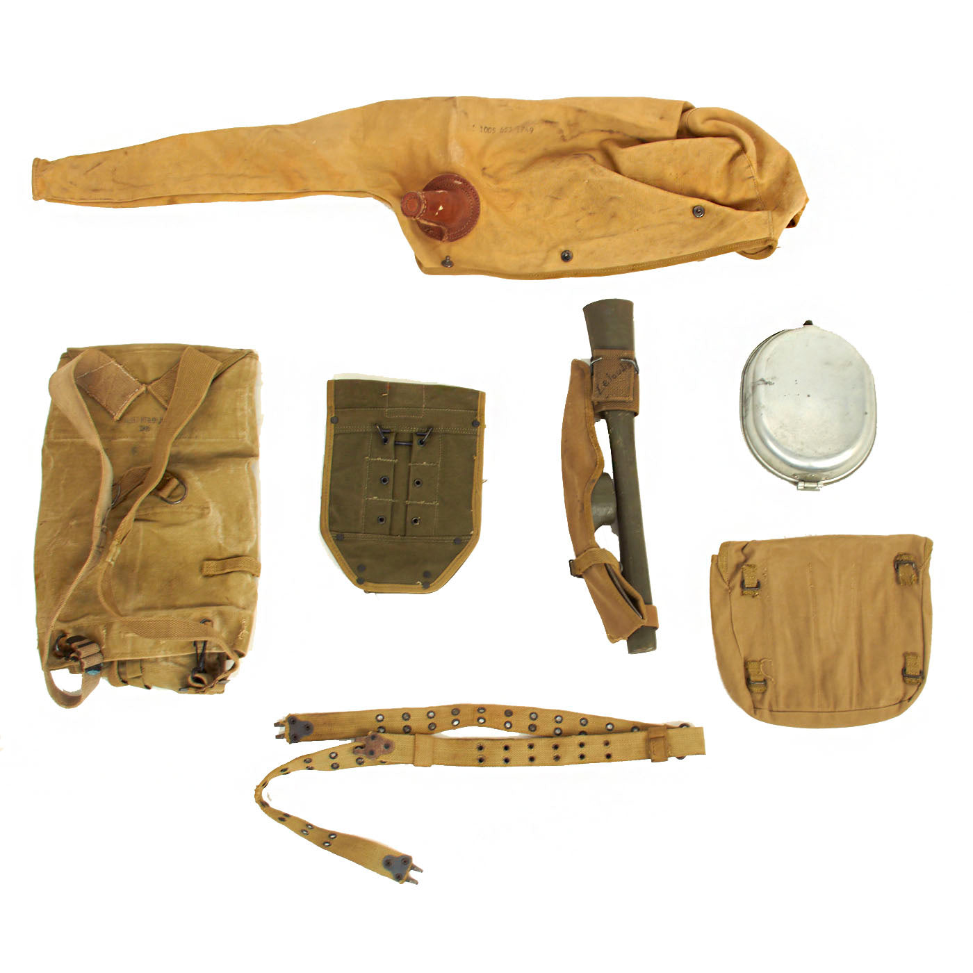 Original Items: Only One Lot of 7 Available. A one of a kind lot of seven WWII GI Field Gear pieces. All pieces are in original, unmodified, condition, and show signs of honest use and storage wear that has accumulated over the last several decades. Most will have additional issue markings added at the arsenal or by the soldiers in various places.