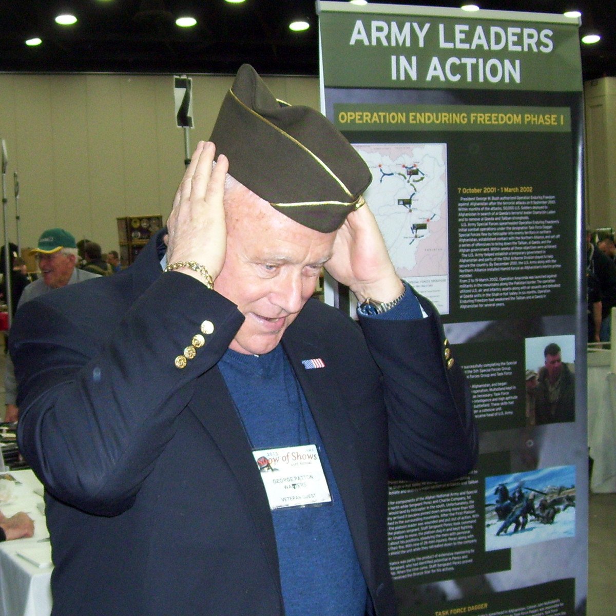 Most interestingly we include a photograph of George Patton Waters, grandson of WWII General George S. Patton, (a decorated Veteran in his own right) actually wearing this very side cap at a fundraising event for the "Indiana Military Museum" (visit http://indymilitary.com) after which he personally signed this very auction receipt with the following: