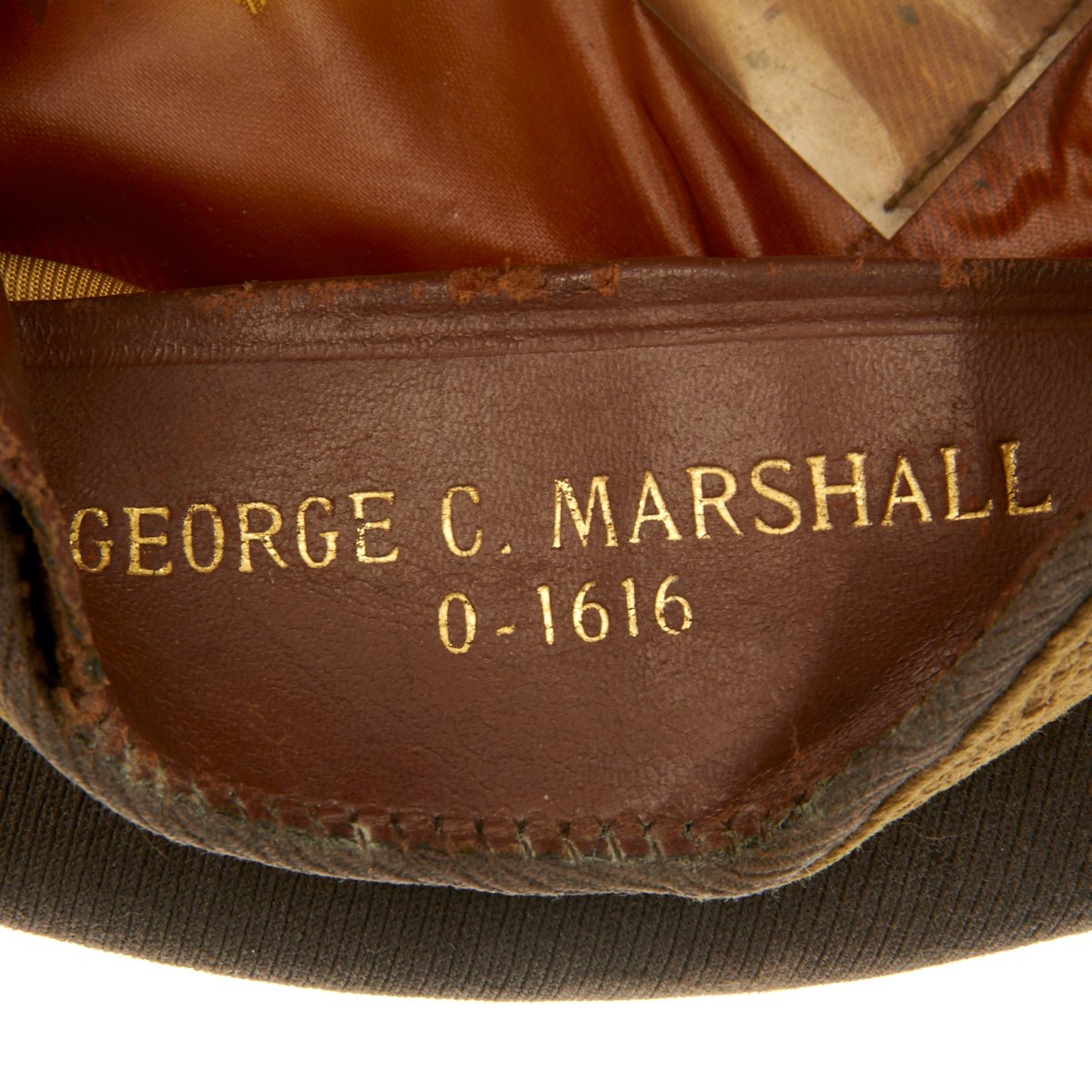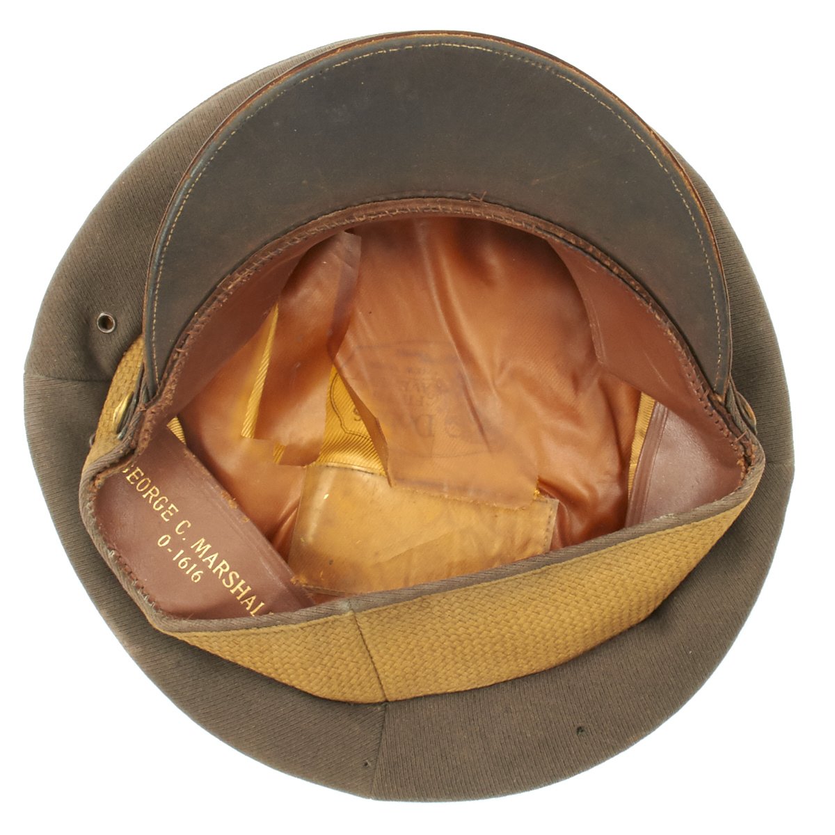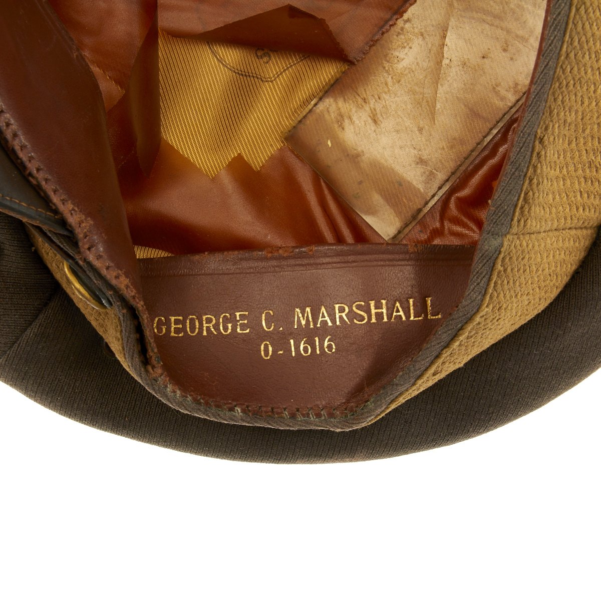 Original Item: One-of-a-kind. Recently acquired from a highly respected private collection, this WWII Officer Visor Cap is named to General George Catlett Marshall. Beyond originating from a respected collection which contained multiple named items with provenance, there is no provenance or paperwork offered with this hat. Based on the origin, quality, markings and other factors we believe this hat to be genuine.
