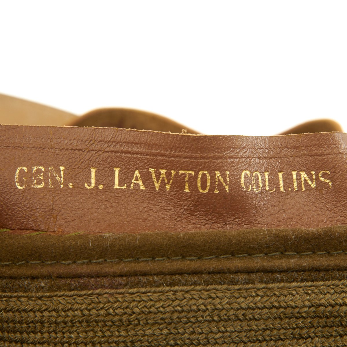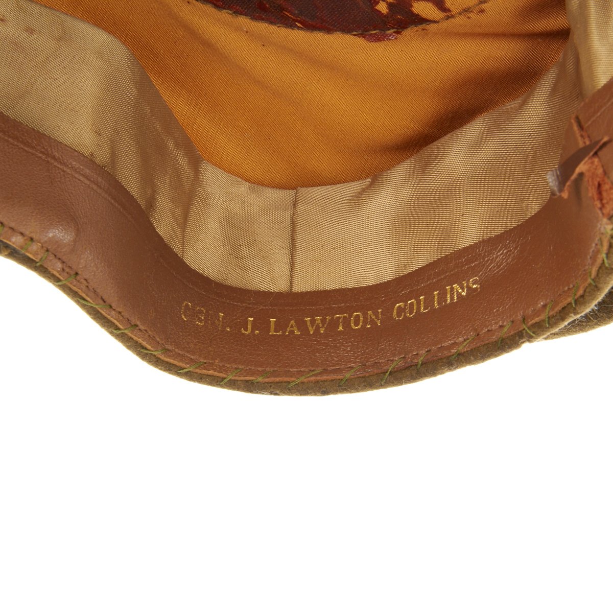 Original Item: One-of-a-kind. Recently acquired from a highly respected private collection, this WWII Officer Visor Cap is named to General Joseph Lawton Collins. Beyond originating from a respected collection which contained multiple named items with provenance, there is no provenance or paperwork offered with this hat. Based on the origin, quality, markings and other factors we believe this hat to be genuine.