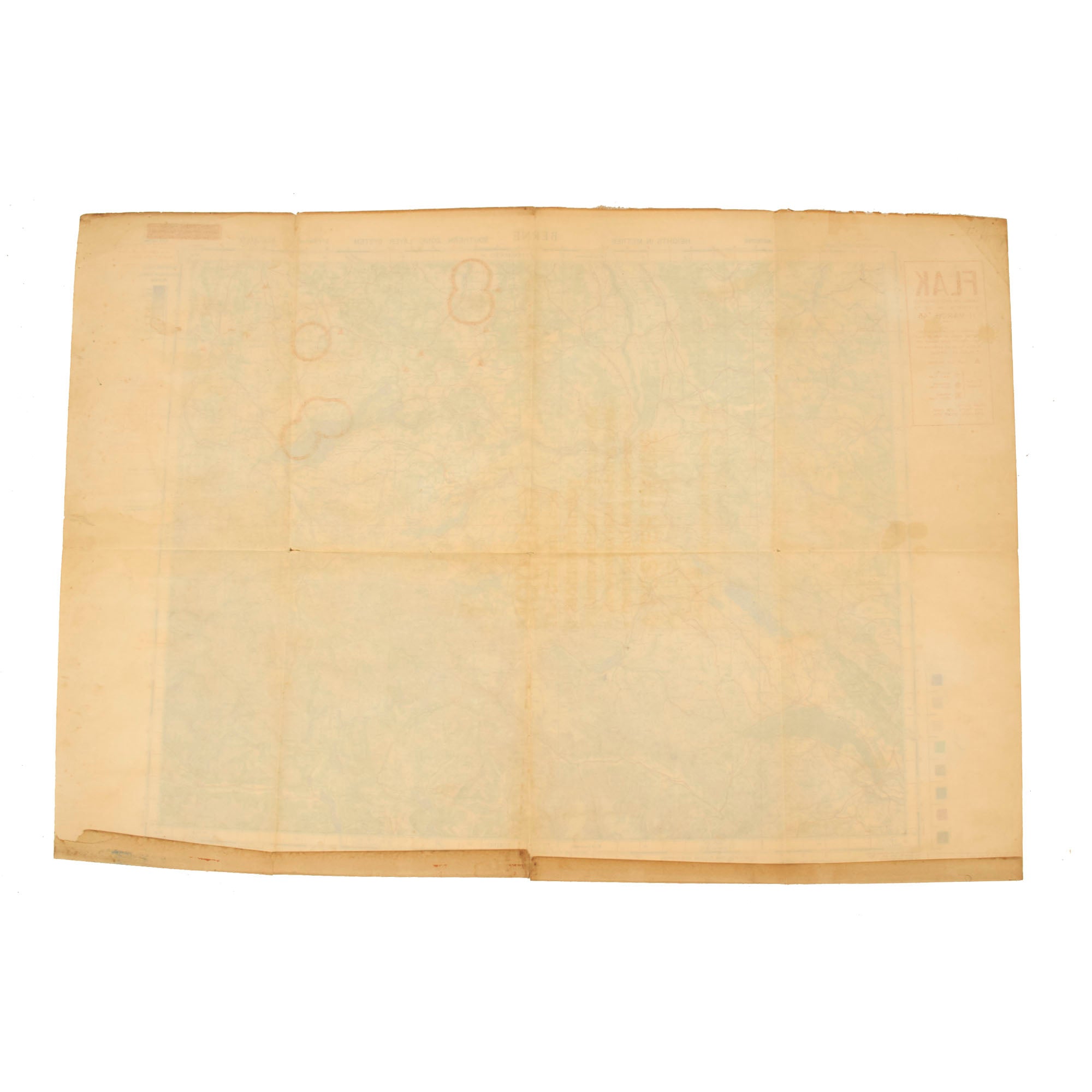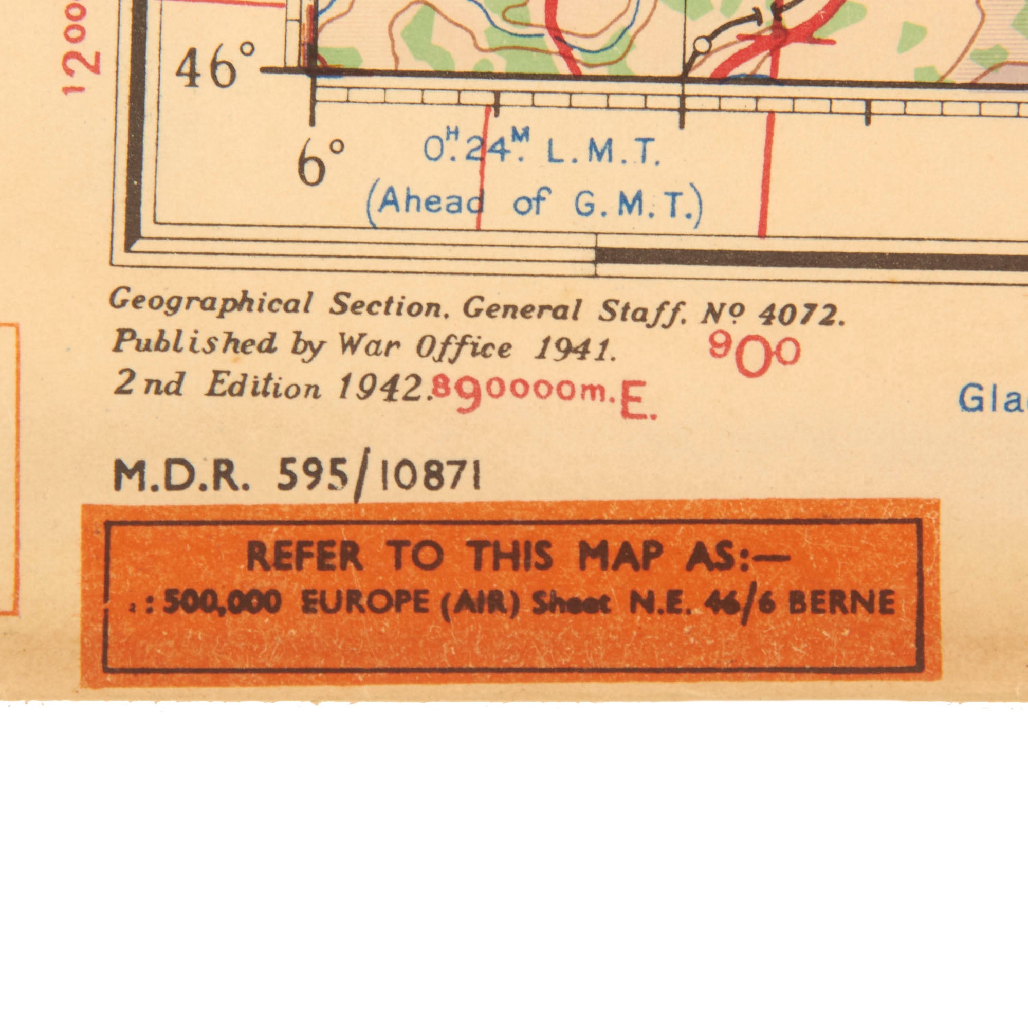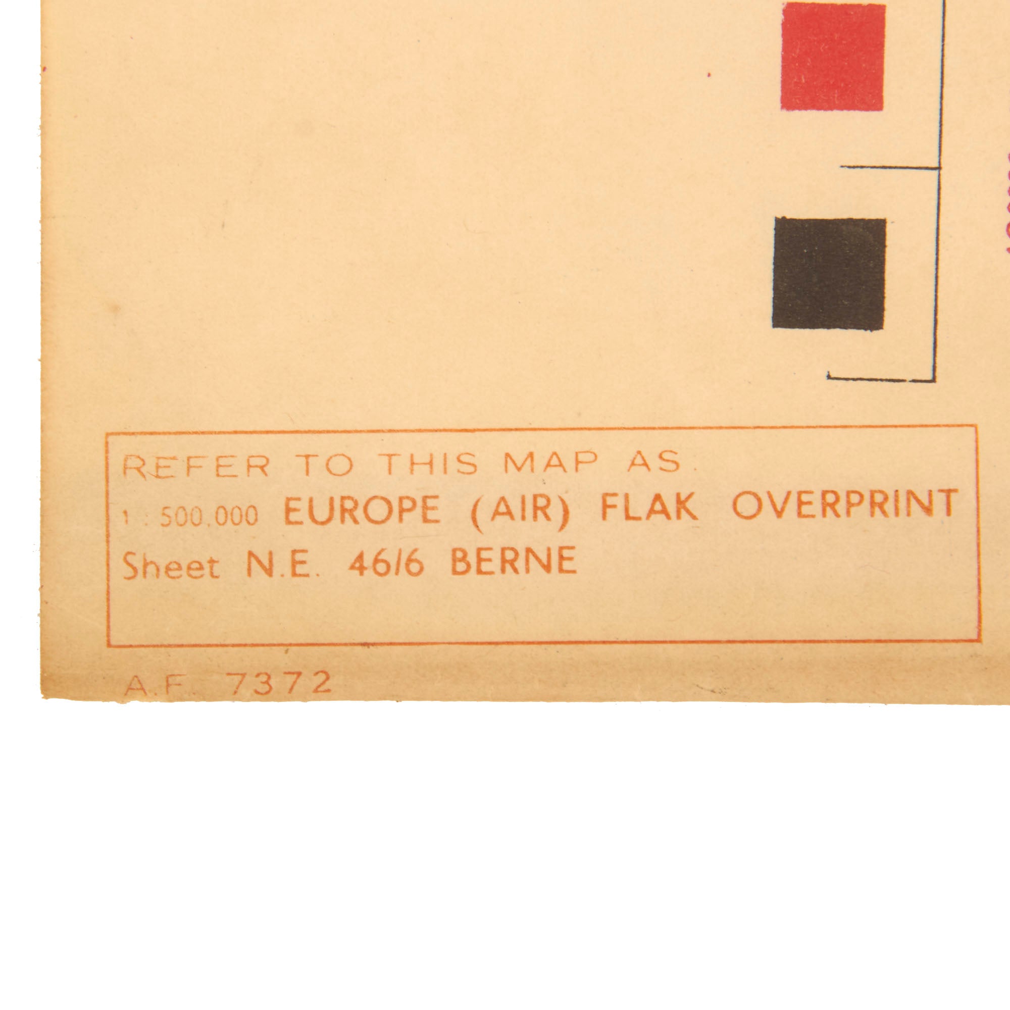 Original Item: Only One Available. This is a spectacular example of a rare Flak denses map of Bern, Switzerland on the German side of Lake Constance. The locations were compiled from all data collected up to March 11, 1945. The map is in wonderful condition but does show use and wear with hard creasing as well as tearing. Finding these maps in any condition is a rarity, but to find one in complete legible condition is not often found in today's market.