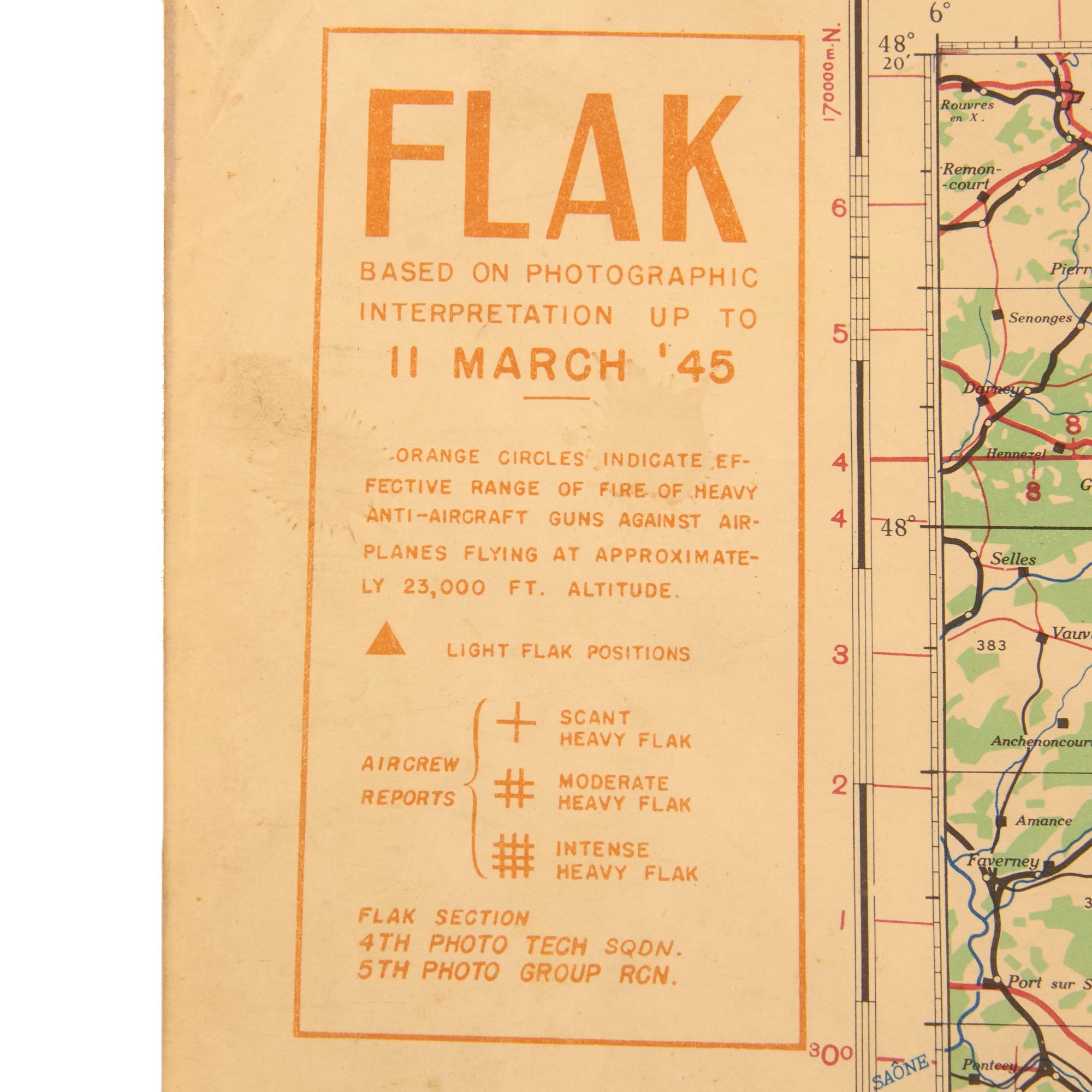 FLAK maps were not heavily produced during WWII and were only done in very small batches using the most updated intelligence, after action reports from other raid missions, as well as updated aerial photos of the area. This would have been the main map used by the Navigators serving on a bomber.