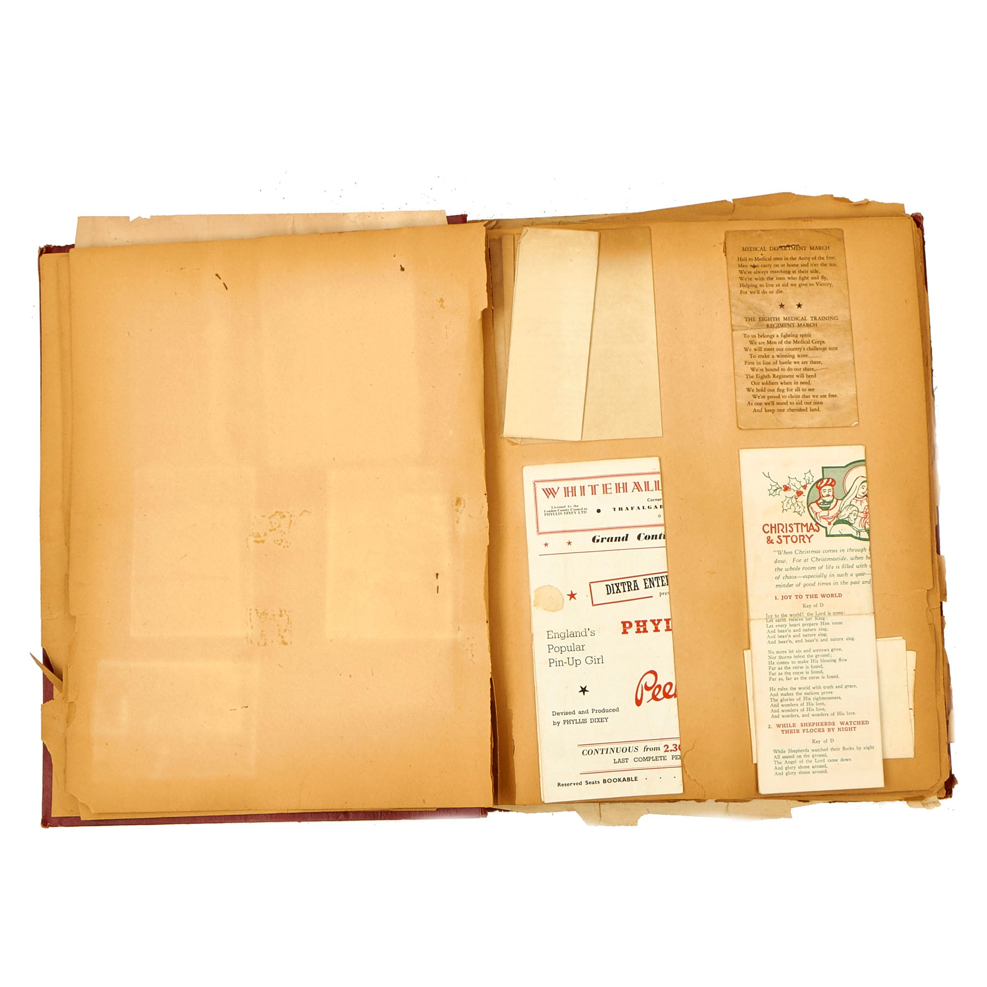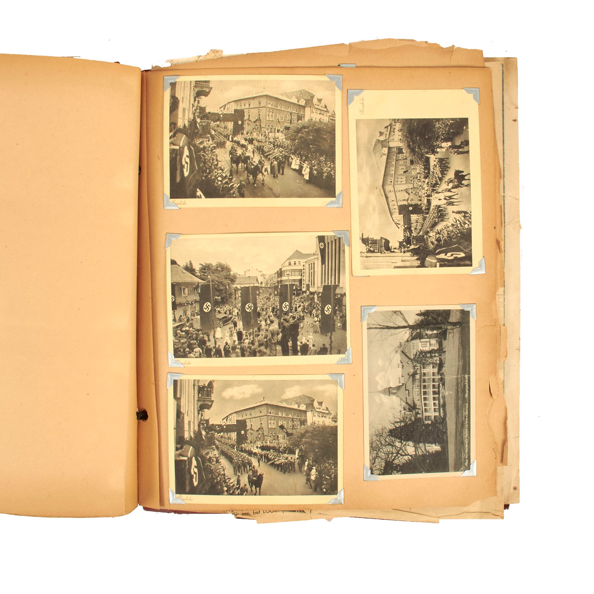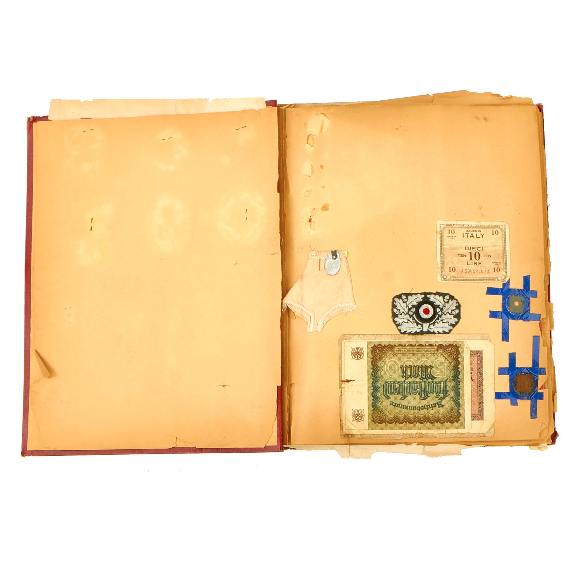 Original Items: One-Of-A-Kind. The scrapbook is filled with over 100 different items including, patches, magazine clippings, maps, guides, a telegram, Germany and European currency, German Souvenirs such as a HJ shirt eagle and much more. A Lot of reading and research is to be had with this scrapbook!