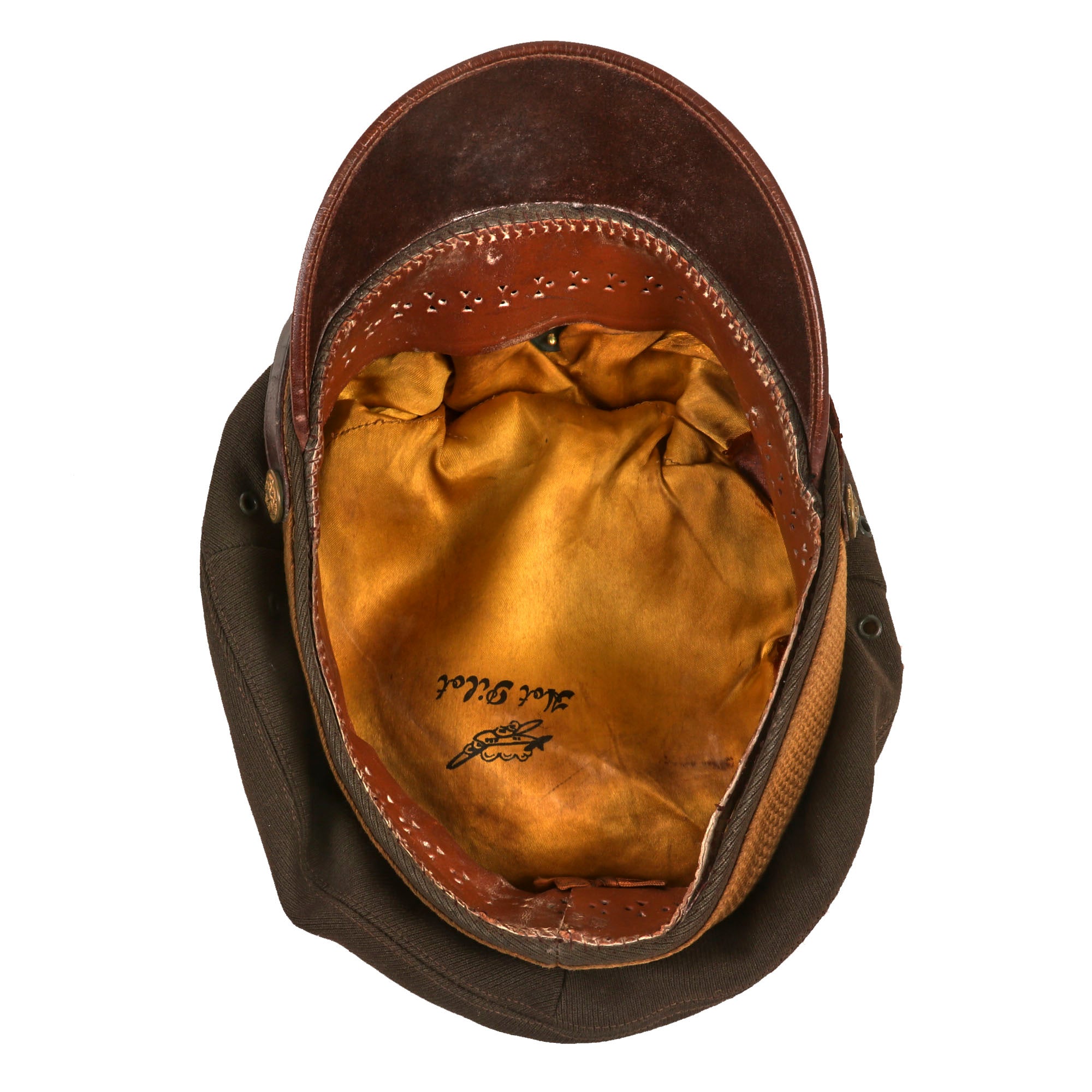 - Martyniak’s Pilot’s Crusher Cap by “Hot Pilot”, a very rare maker of these already-scarce caps. It’s marked Size 7⅛ and is in good service-worn condition with some wear to the visor and interior.