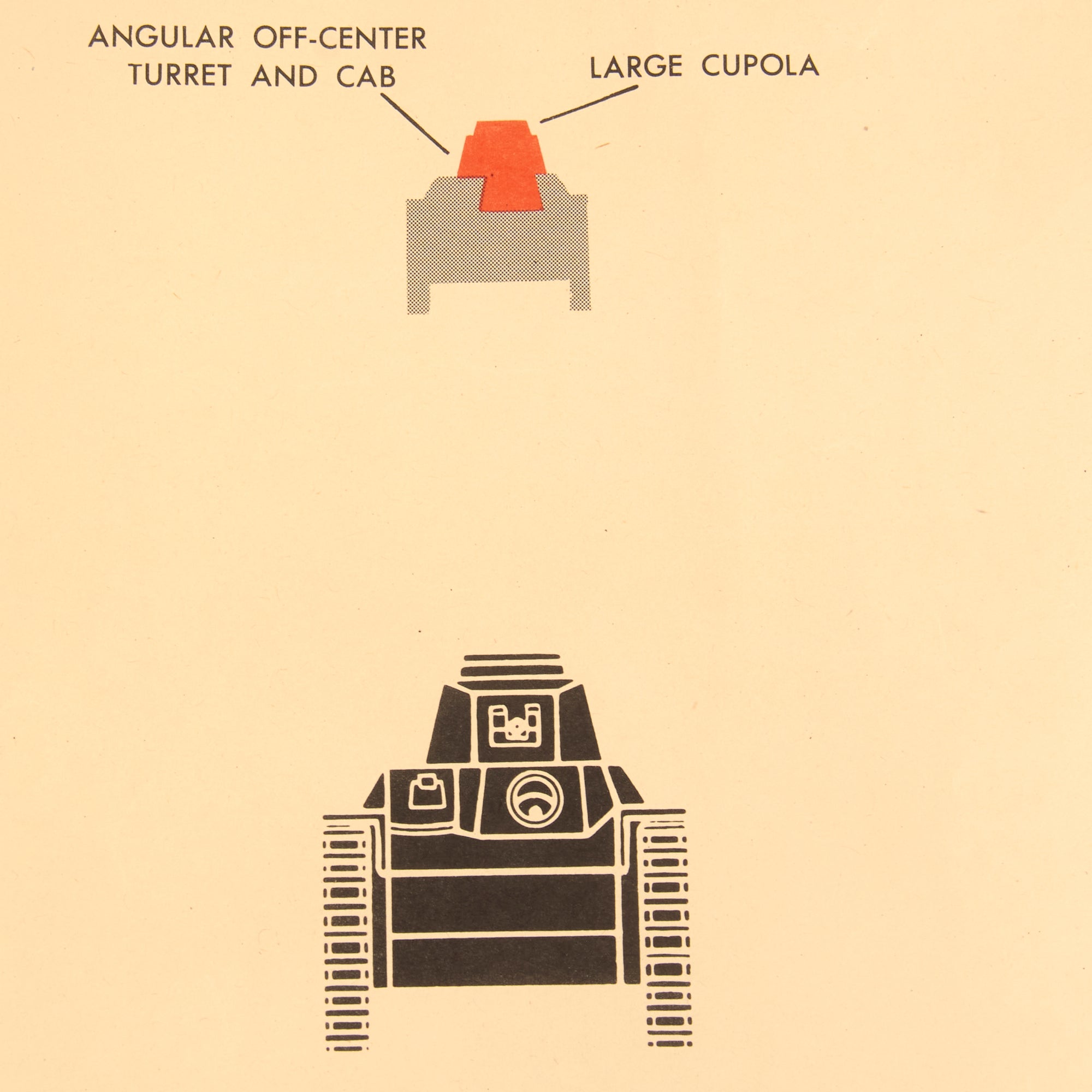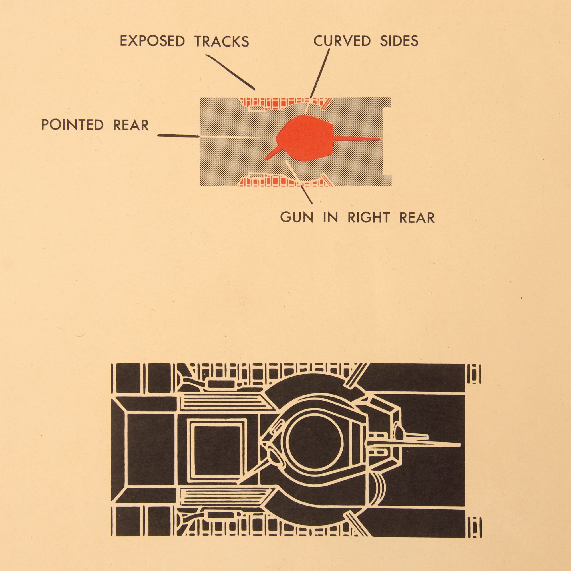 The poster shows essentially the weak spots, areas of interest, exposed areas and weapon positions on the tank, all marked with red to make it stand out on the silhouette. The poster itself is in wonderful condition but does have fold marks as well as curved edges from being rolled up.