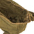 The Field Pack (upper) had a waterproof liner, interior divisions, and numerous straps to close the main flap, to use as shoulder straps or attach to the suspenders, and to hold the entrenching tool handle. Two canvas flaps with eyelets were provided: M-1943 entrenching tool on top center, and a side flap for bayonet or canteen. Bottom straps attached to the Cargo Pack to join the two.