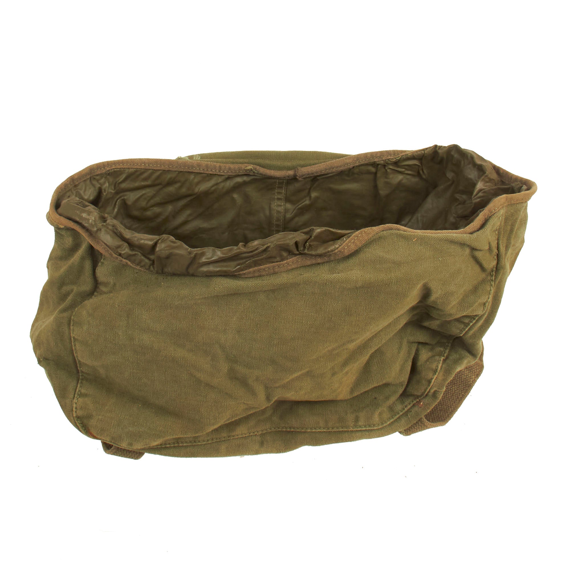 Offered in surplus usable condition, they range from major defects, but expect wear from age and use, and may have a musty smell from military MRT (mildew resistant treatment) and years of storage. Most show U.S. marking on outer flap and have the large instruction sheet printed on a white label inside the bag with drawings and detailed descriptions of how to pack and use the components. These were received as surplus out of Greece, so they may have Greek markings. Comes complete with web carry handle and canvas straps. These are Grade 2 items and their condition will reflect as such.