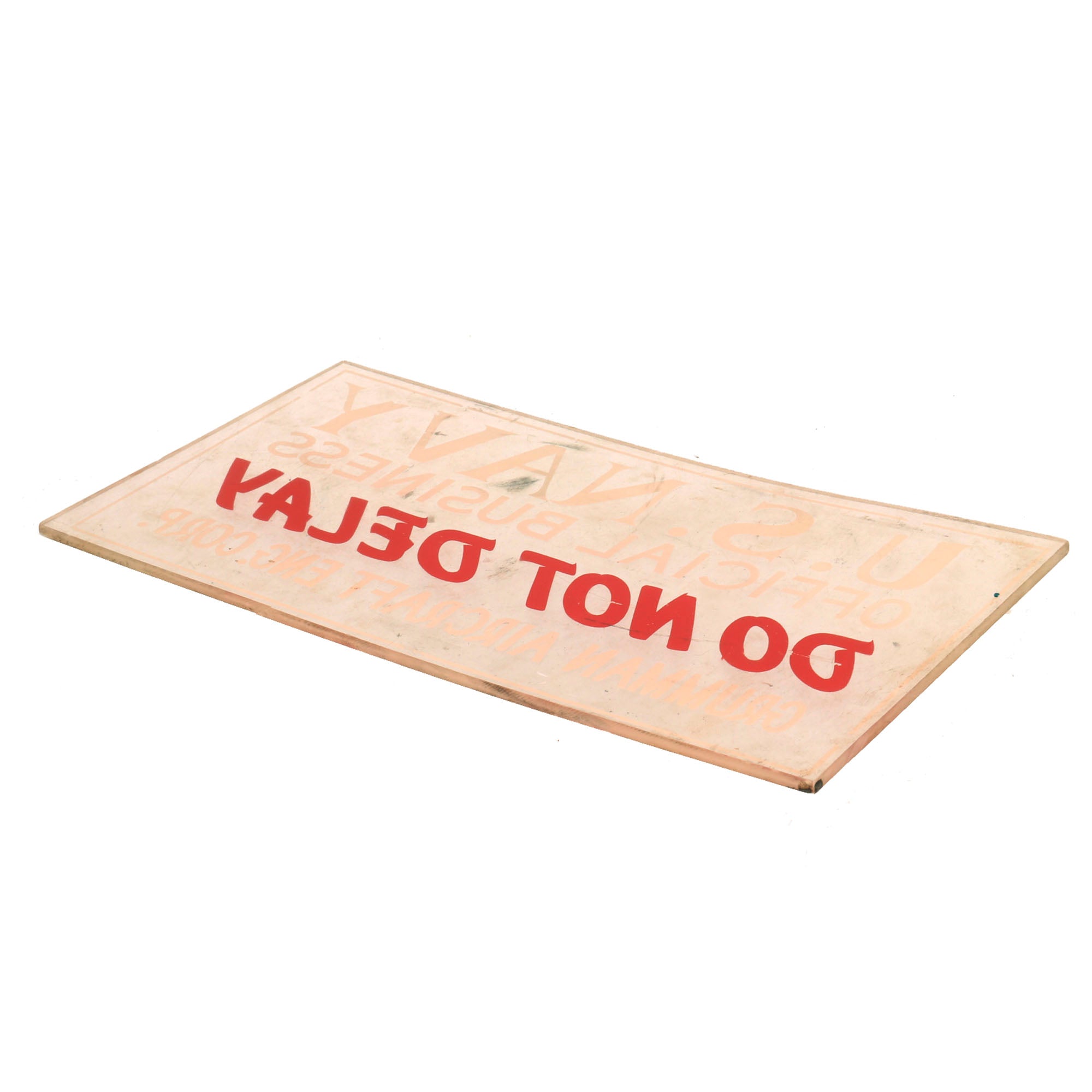 Original Item: Only One Available. Now this is a wonderful display item dating to the Mid-WWII era. This small license plate sign more than likely was as an automobile sign displayed from the dash board through the windshield. The plexiglass construction is still clear with just minor yellowing present from age. All text is still visible and in wonderful condition as well.