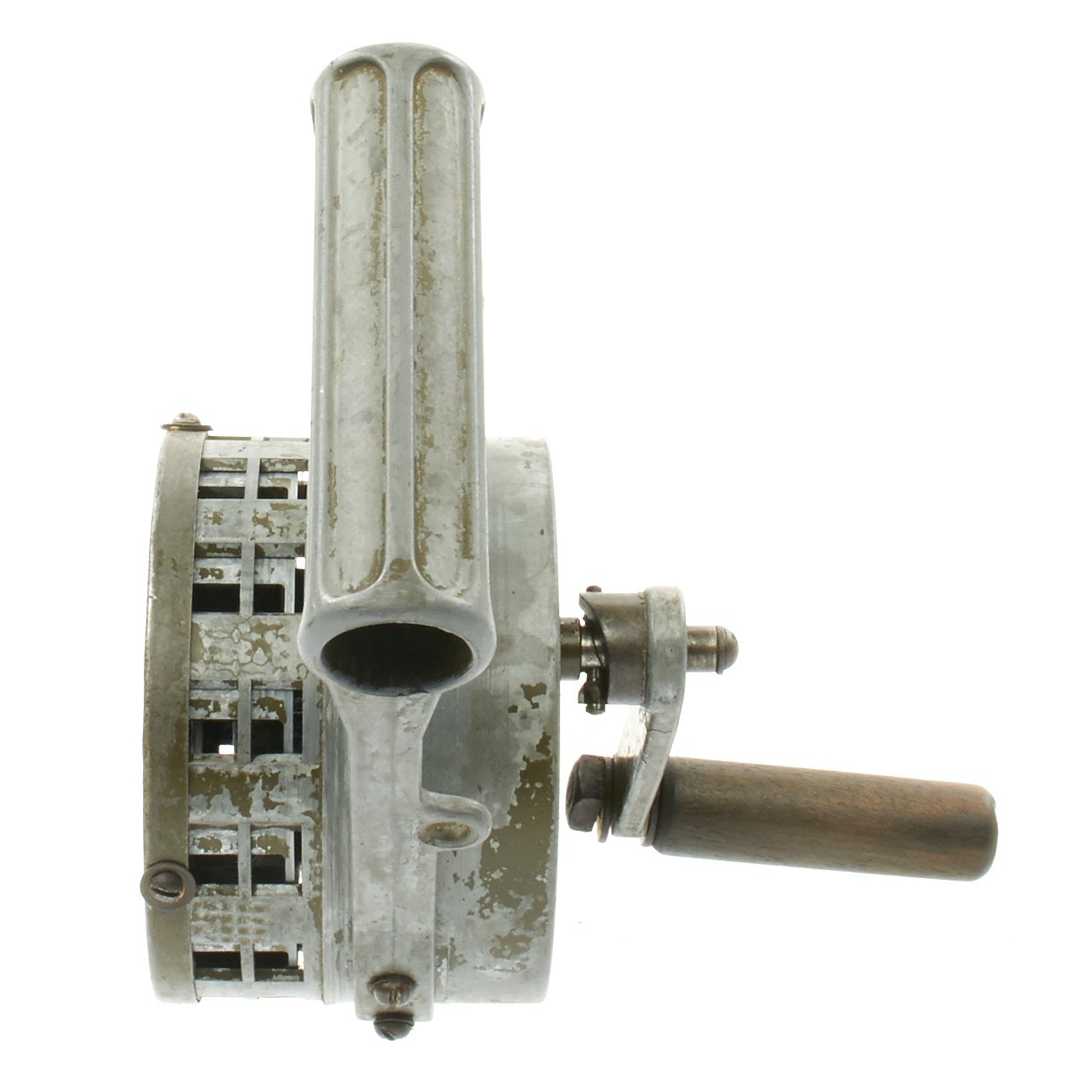 These sirens were used for Air Raids and possible Gas Attacks both during combat situations and on the Home Front. This mobile handheld version is the hardest to find of any WWII siren. We do not see these often at all, and this is only the second U.S. hand siren we have had!