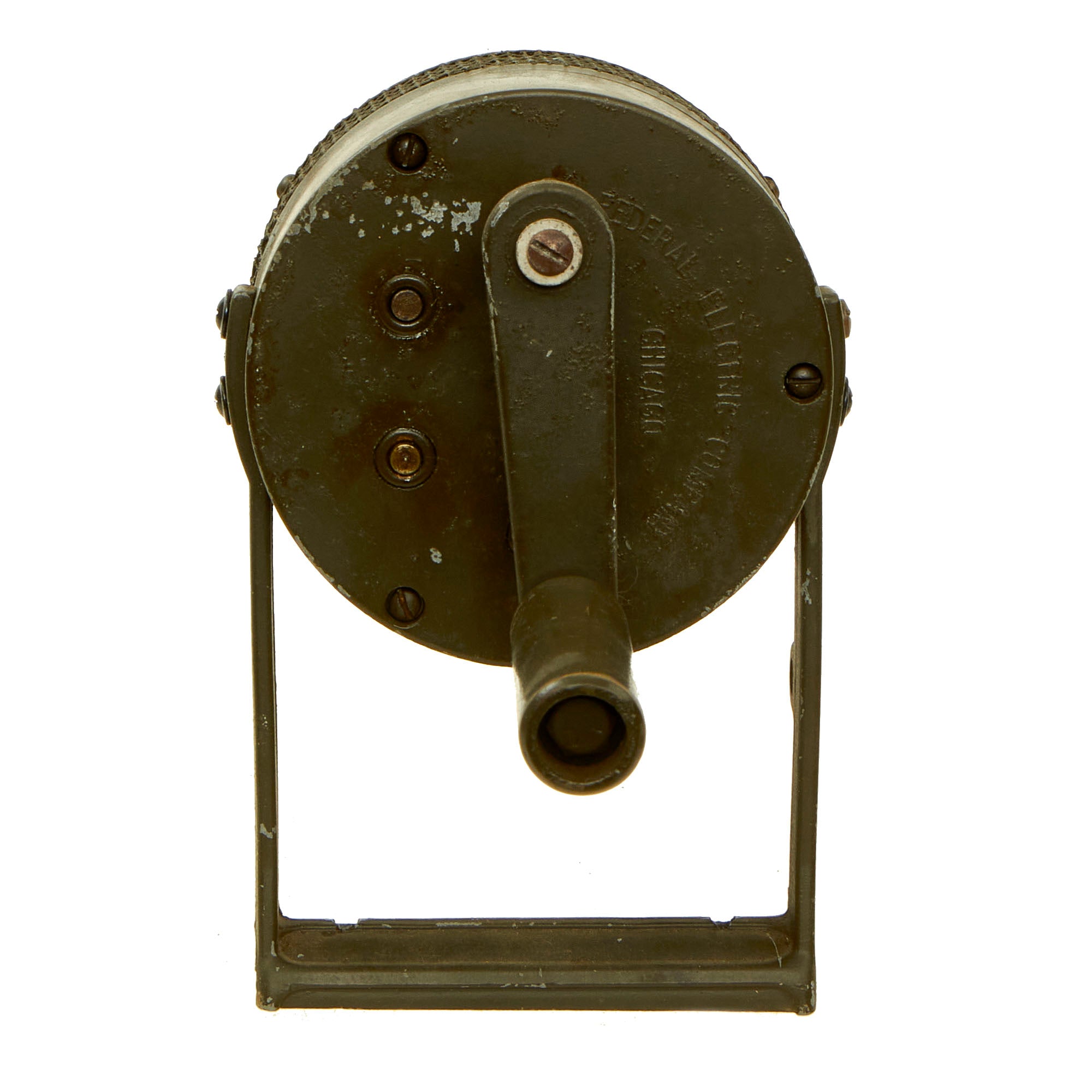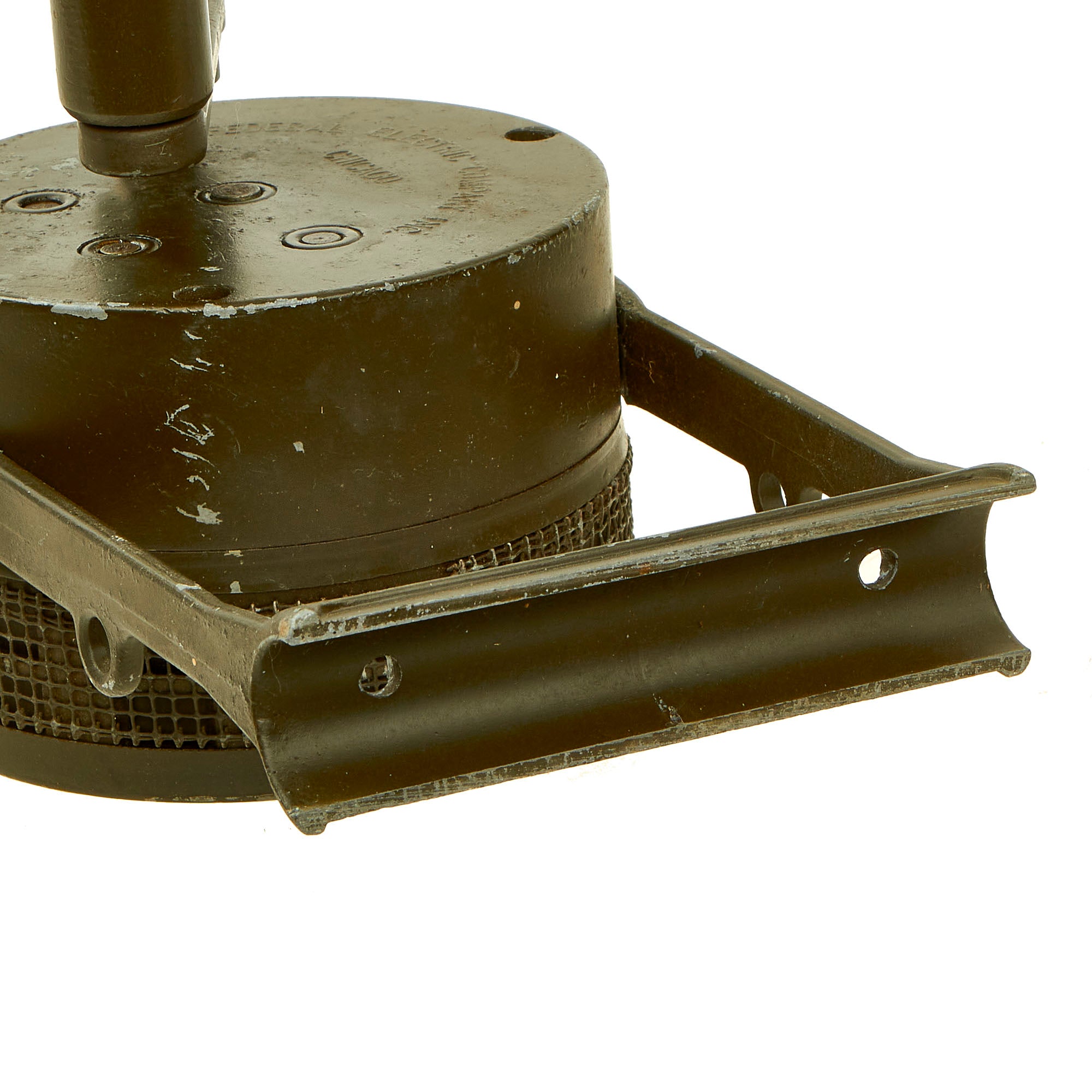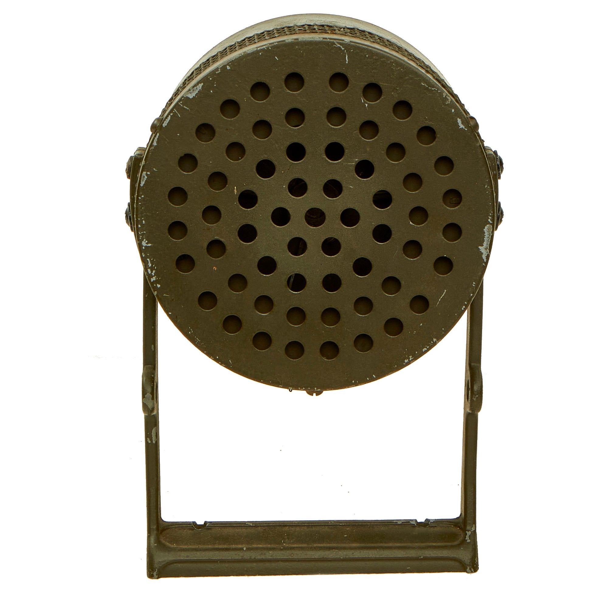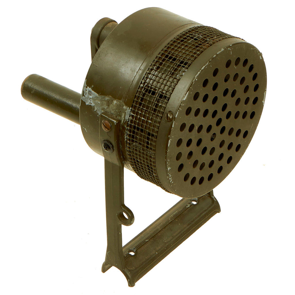 Original Item: Only One Available: This a very rare fully functional (and loud) U.S. WWII Hand Crank Air Raid Siren. These covers are almost always missing, and of the few examples we have had, most were without the cover or sling, like this example.
