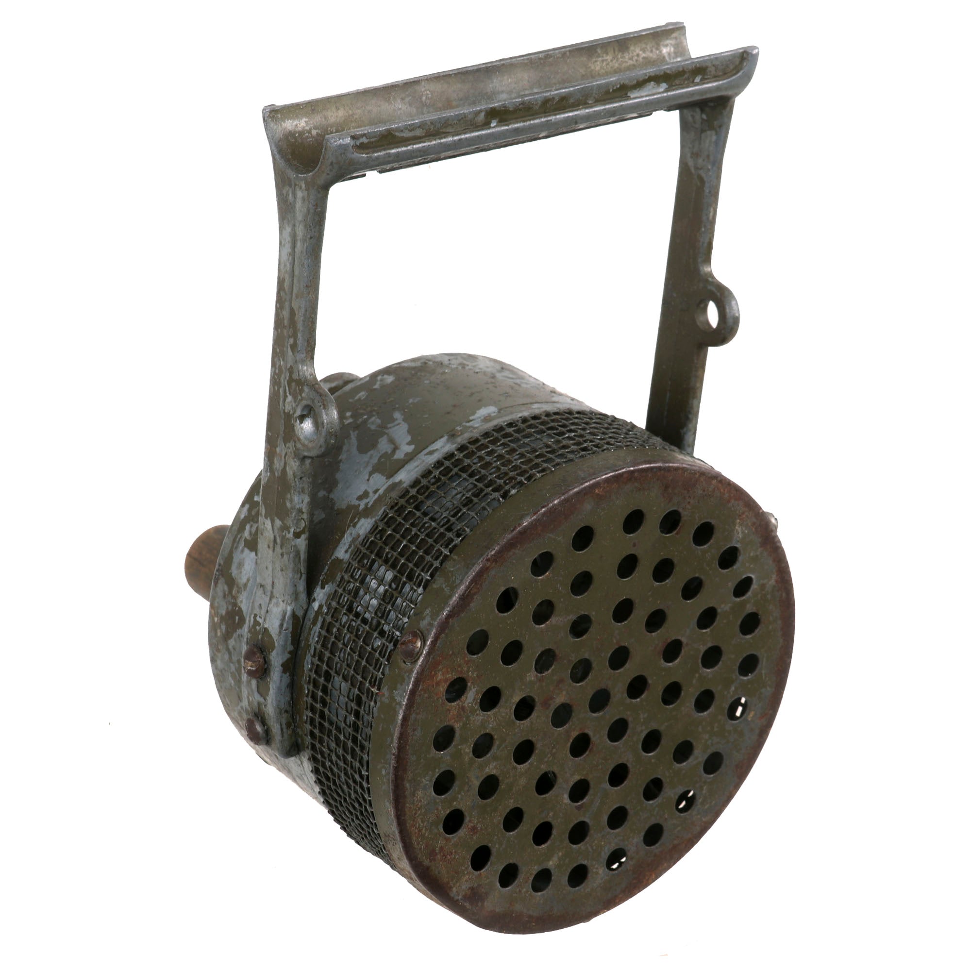 These sirens were used for Air Raids and possible Gas Attacks both during combat situations and on the Home Front. This mobile handheld version is the hardest to find of any WWII siren.
