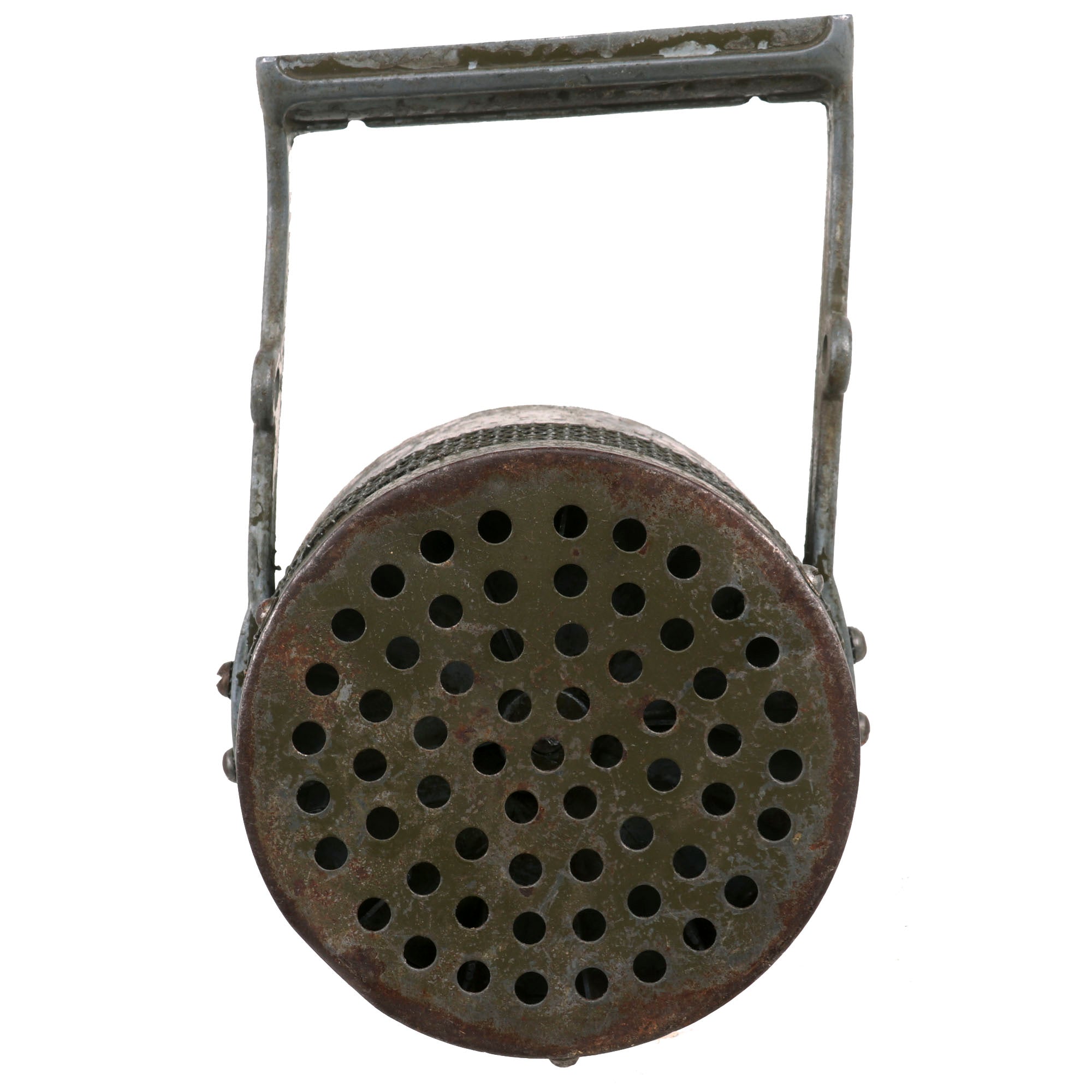 Original Item: Only One Available: This a fully functional (and loud) U.S. WWII Hand Crank Air Raid Siren. These covers are almost always missing, and of the few examples we have had, most were without the cover or sling, like this example.