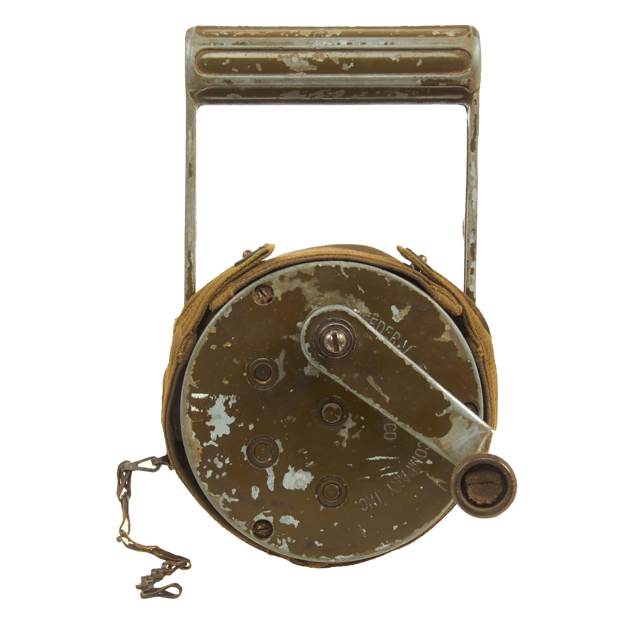 Constructed predominately of aluminum with integral one piece carry handle and crank handle. These were originally painted OD green, however the paint does not stick to the aluminum very well as it oxidizes, so often these are missing a lot of the paint. This example still has almost all of the original paint, with just a few areas of flaking. It also still has the cover and screen to protect the rotor, items that are often missing.
