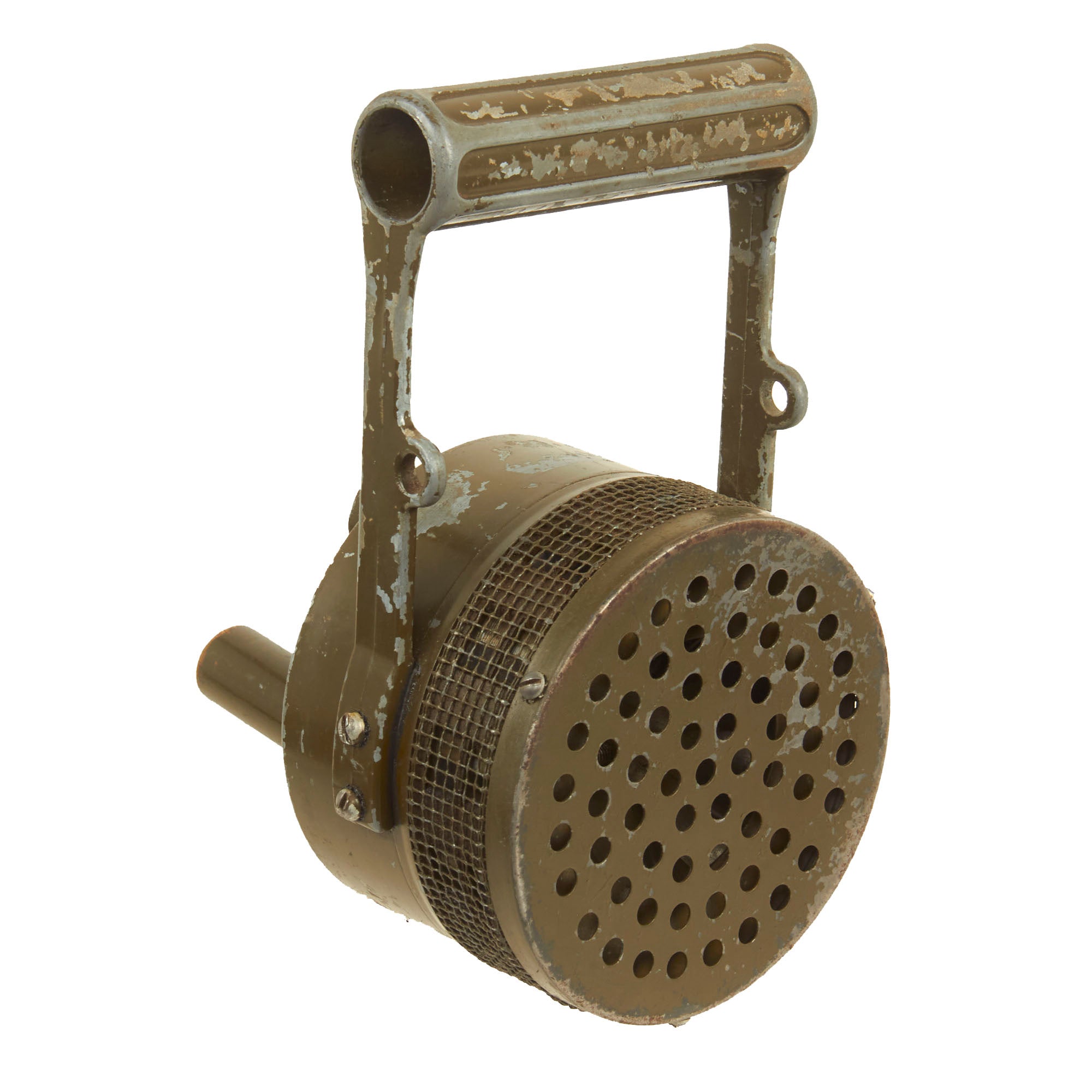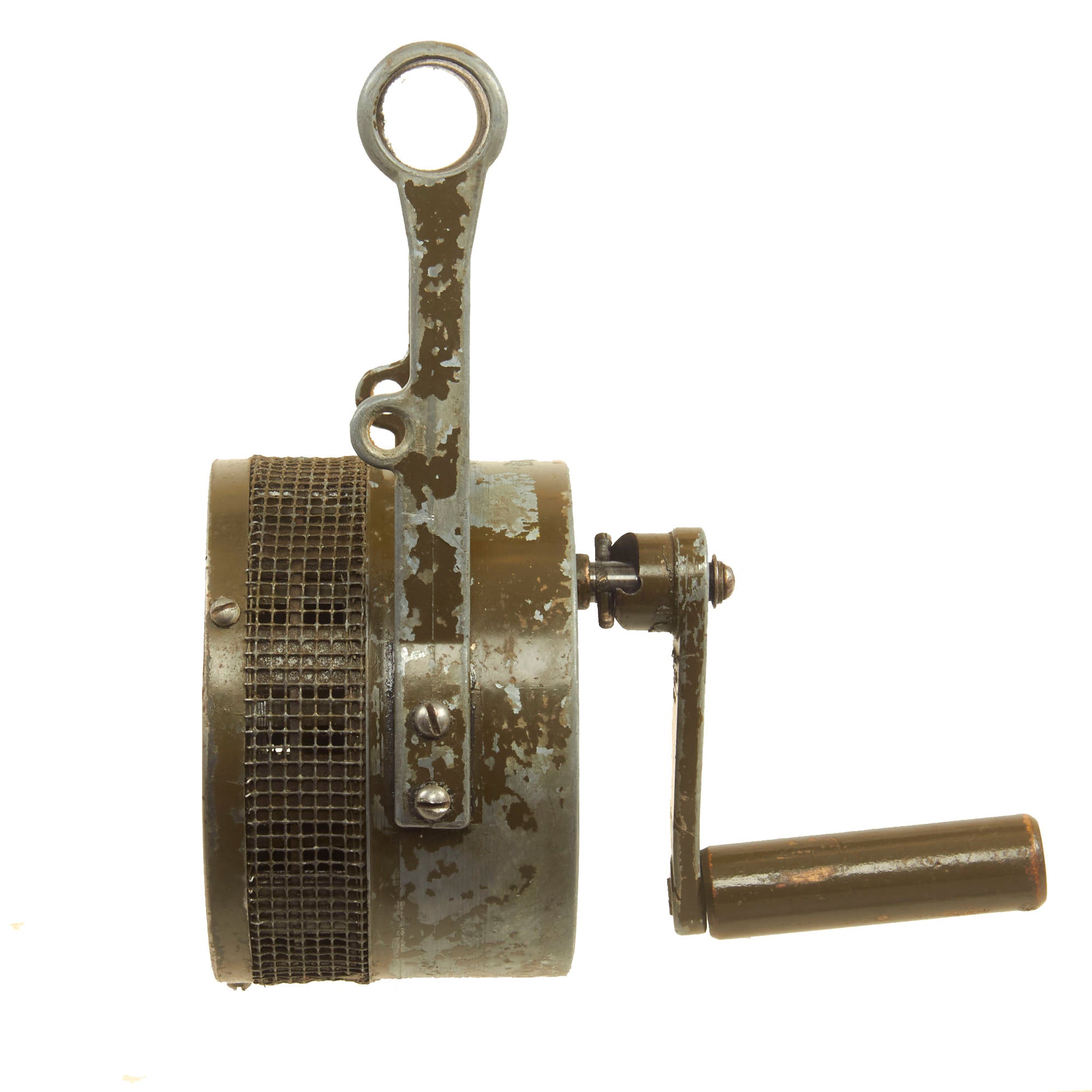 These sirens were used for Air Raids and possible Gas Attacks both during combat situations and on the Home Front. This mobile handheld version is the hardest to find of any WWII siren.
