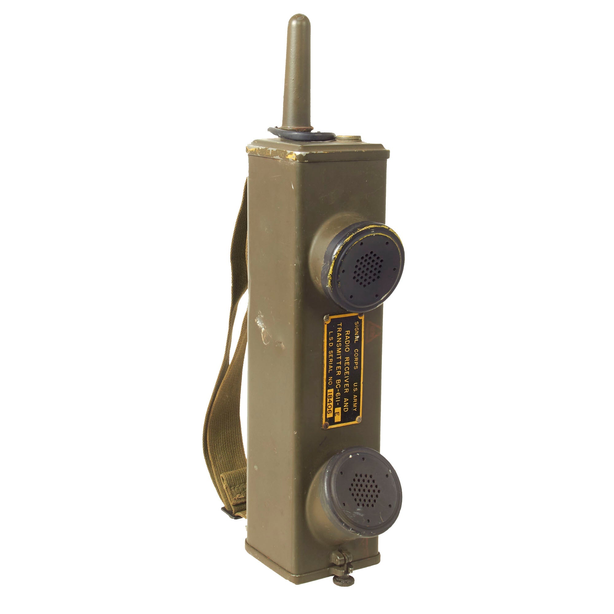 This is popularly referred to as walkie talkies, although they were originally designated "handie talkies”. The radio still has the original data plate on the side, which reads:
