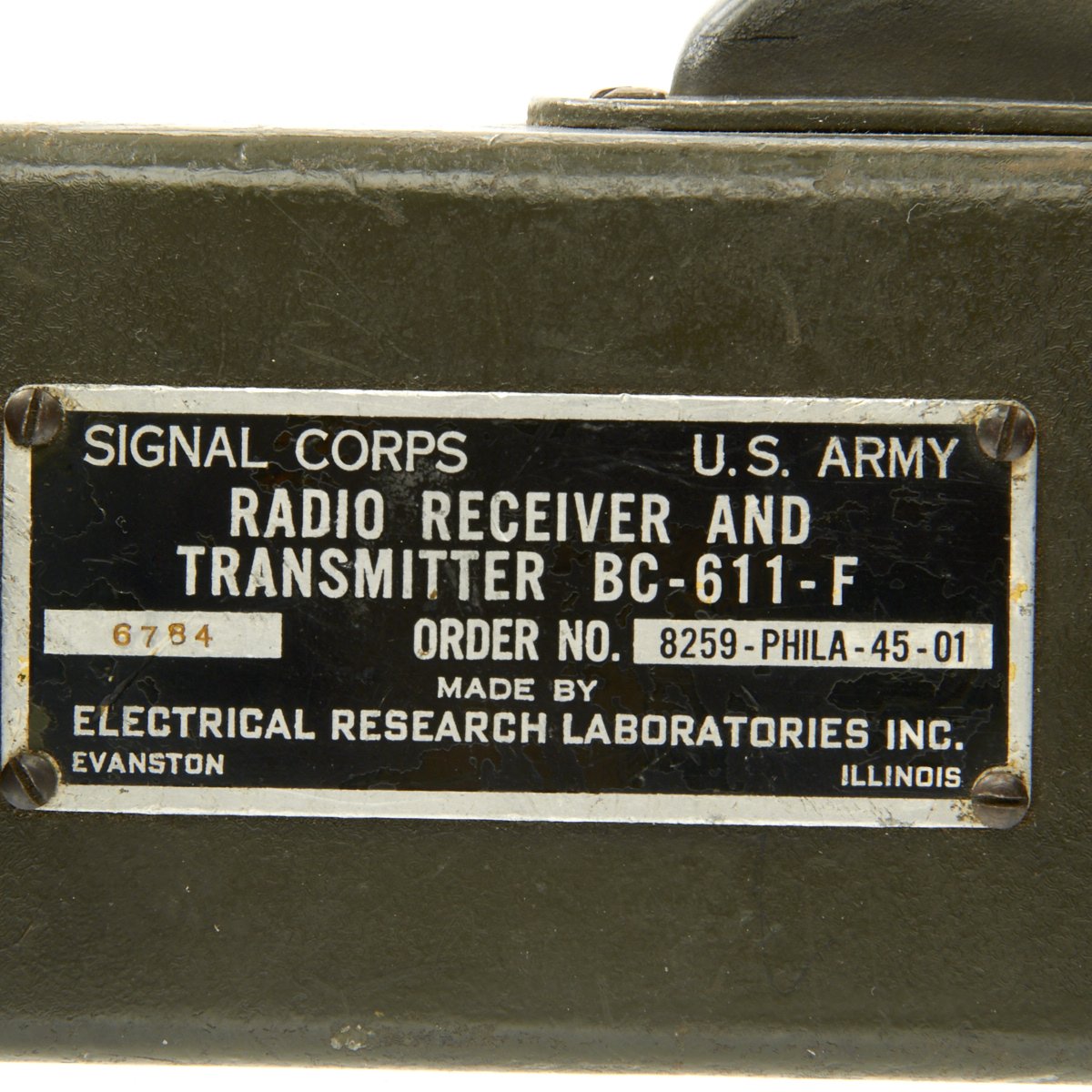 Original Items: Only One Available. This genuine WW2 issue BC-611-F hand-held radio is offered in very good condition. It has not been tested for functionality but appears complete and undamaged. The BC-611 was a hand-held radio transceiver used by the US Army Signal Corps in World War II. Under the Army Nomenclature System, the BC-611 transceiver was the core component of the SCR-536 Signal Corps Radio set. The Signal Corps technical manual number was TM 11-235.