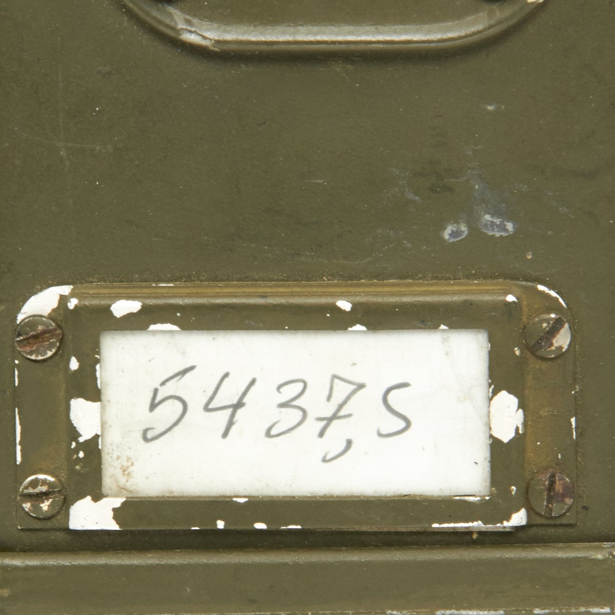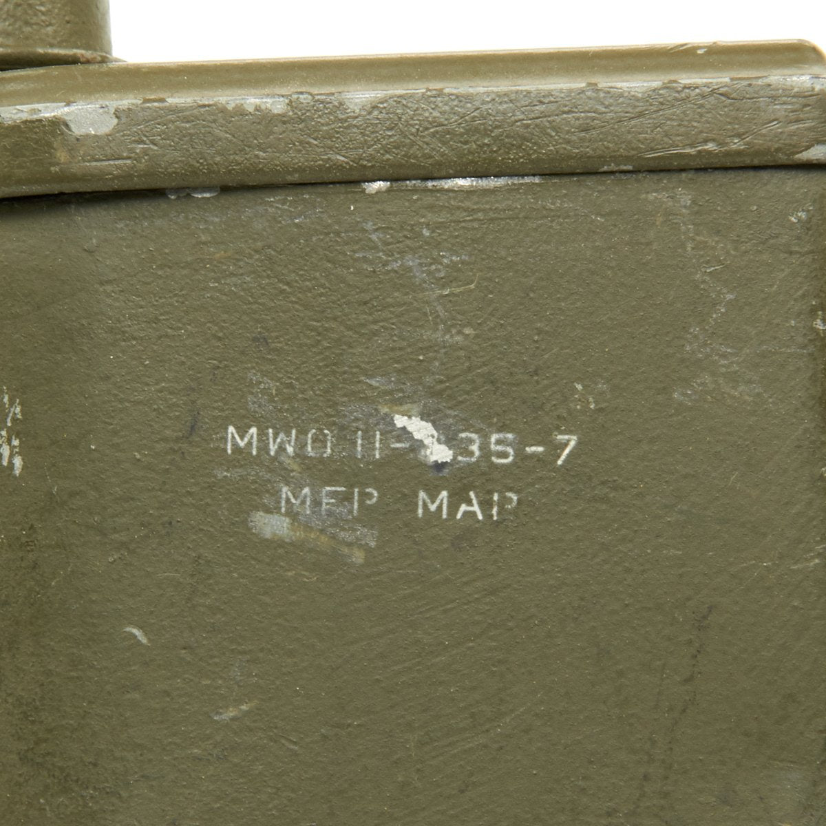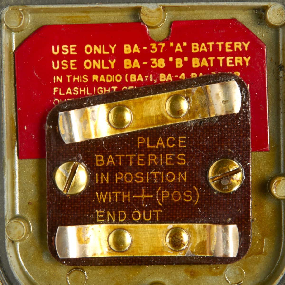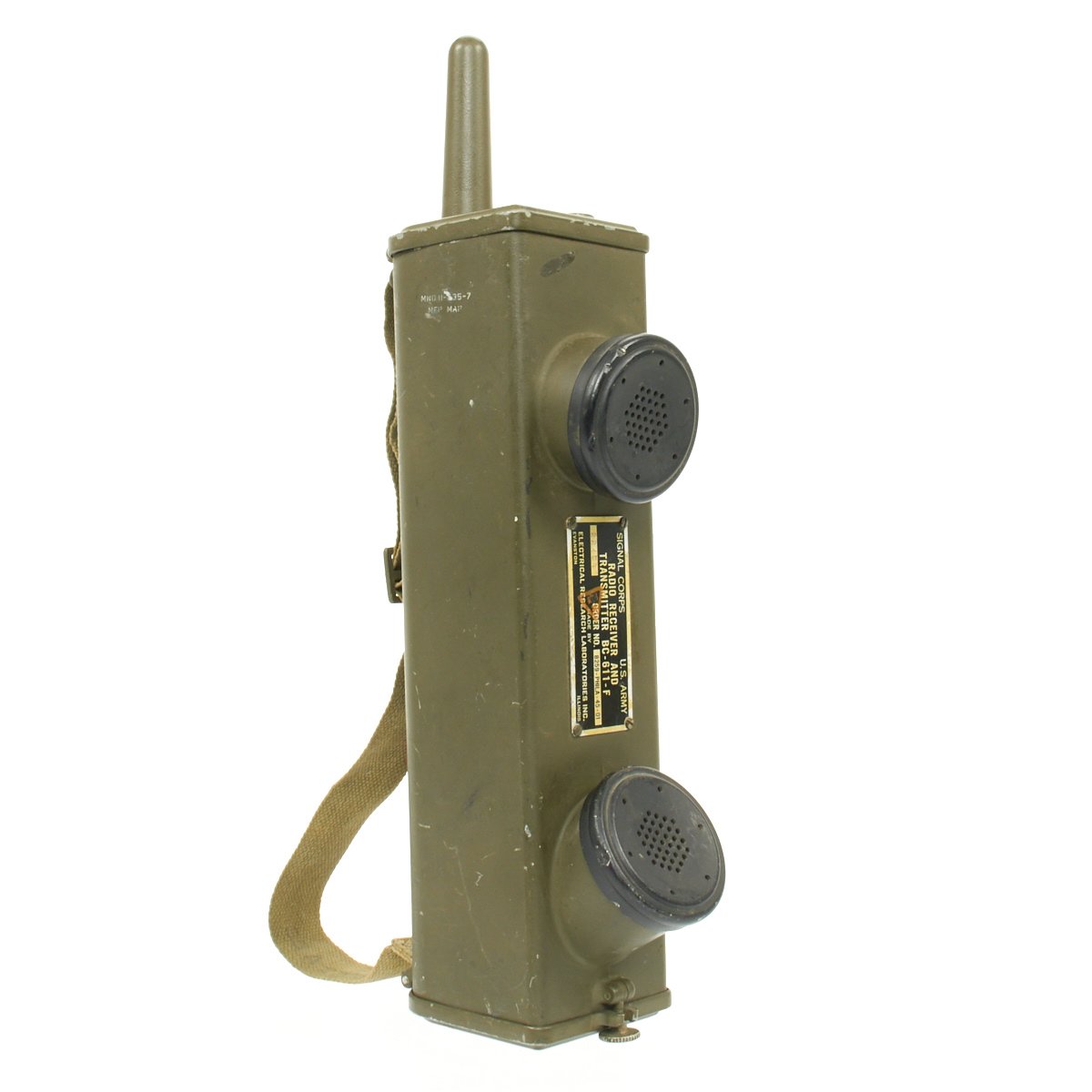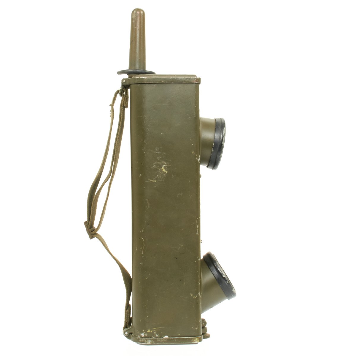 The battery doors on both open, and the contacts appear to be in good condition. Both also still have their complete extendable antennas with removable covers. The slings on both are complete, and in good condition. Overall this is a great set of Handie Talkie radios, ready to add to your collection, or to use in reenactments.