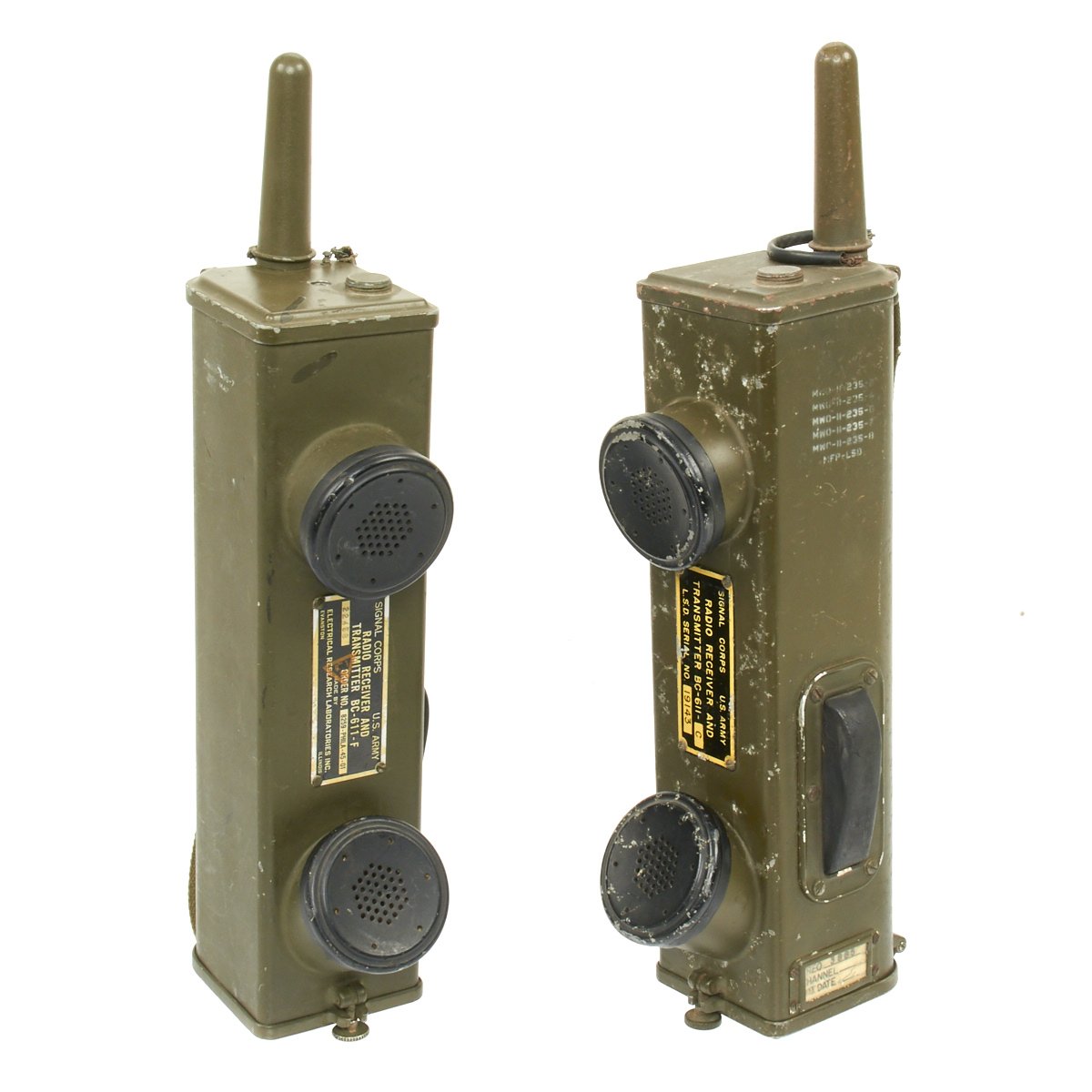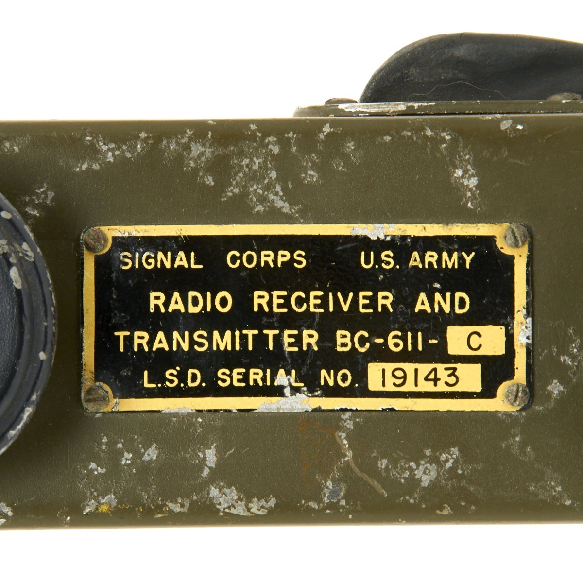Original Items: Only One Set Available. This genuine set of 2 WW2 issue BC-611 radios is offered in very good condition. They have not been tested for functionality but appear complete and undamaged. The BC-611 was a hand-held radio transceiver used by the US Army Signal Corps in World War II. Under the Army Nomenclature System, the BC-611 transceiver was the core component of the SCR-536 Signal Corps Radio set. The Signal Corps technical manual number was TM 11-235.