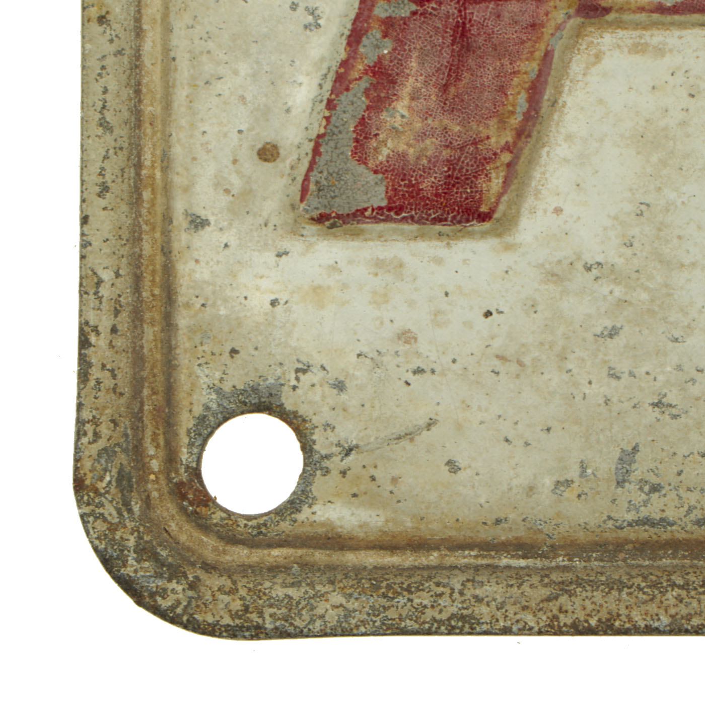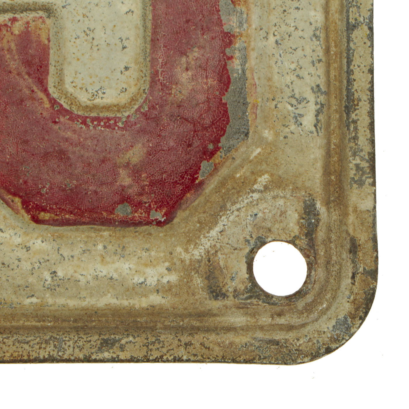 The plate remains in great condition and retains most of the original paint with some wear to the letters. The plate is approximately 12 ½” x 6 ¼” . The plate is definitely a reminder of the attacks at Pearl Harbor by the Japanese in 1941. A plate in this condition with original paint is rather difficult to come by due to the fact individuals wanted the colors to stand out more when displayed. This is perfect the way it is and will look absolutely lovely in you WWII American homefront collections.