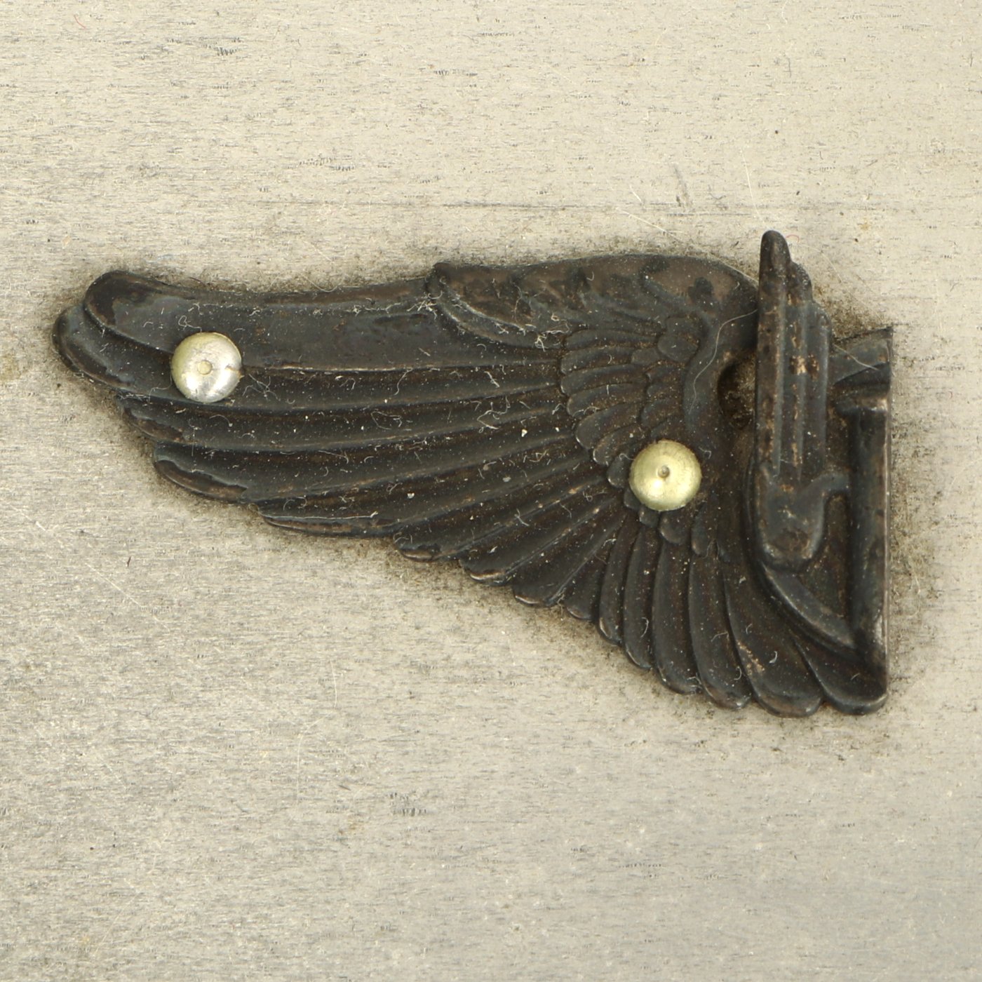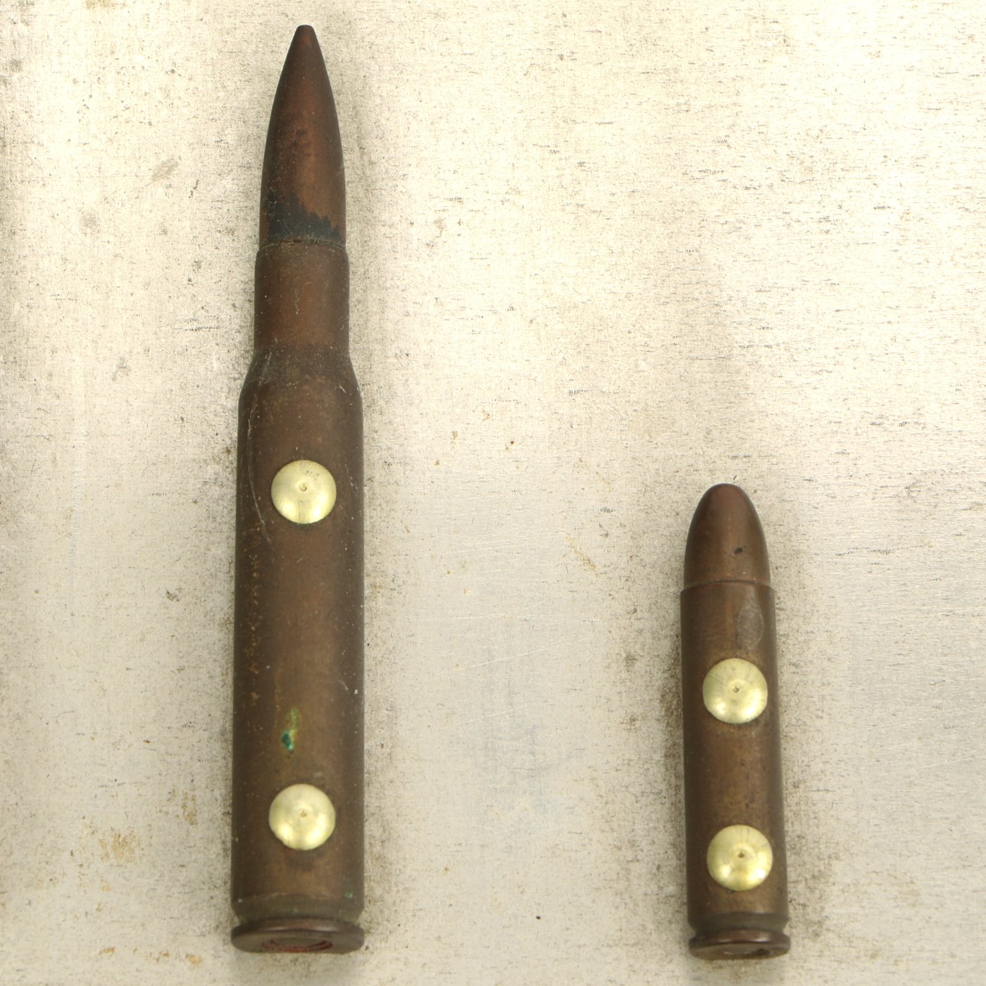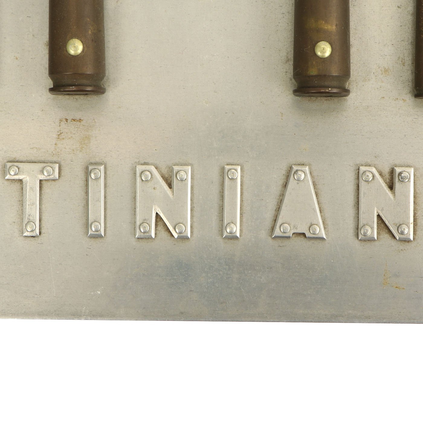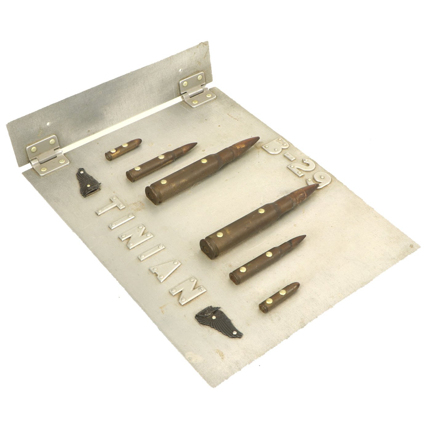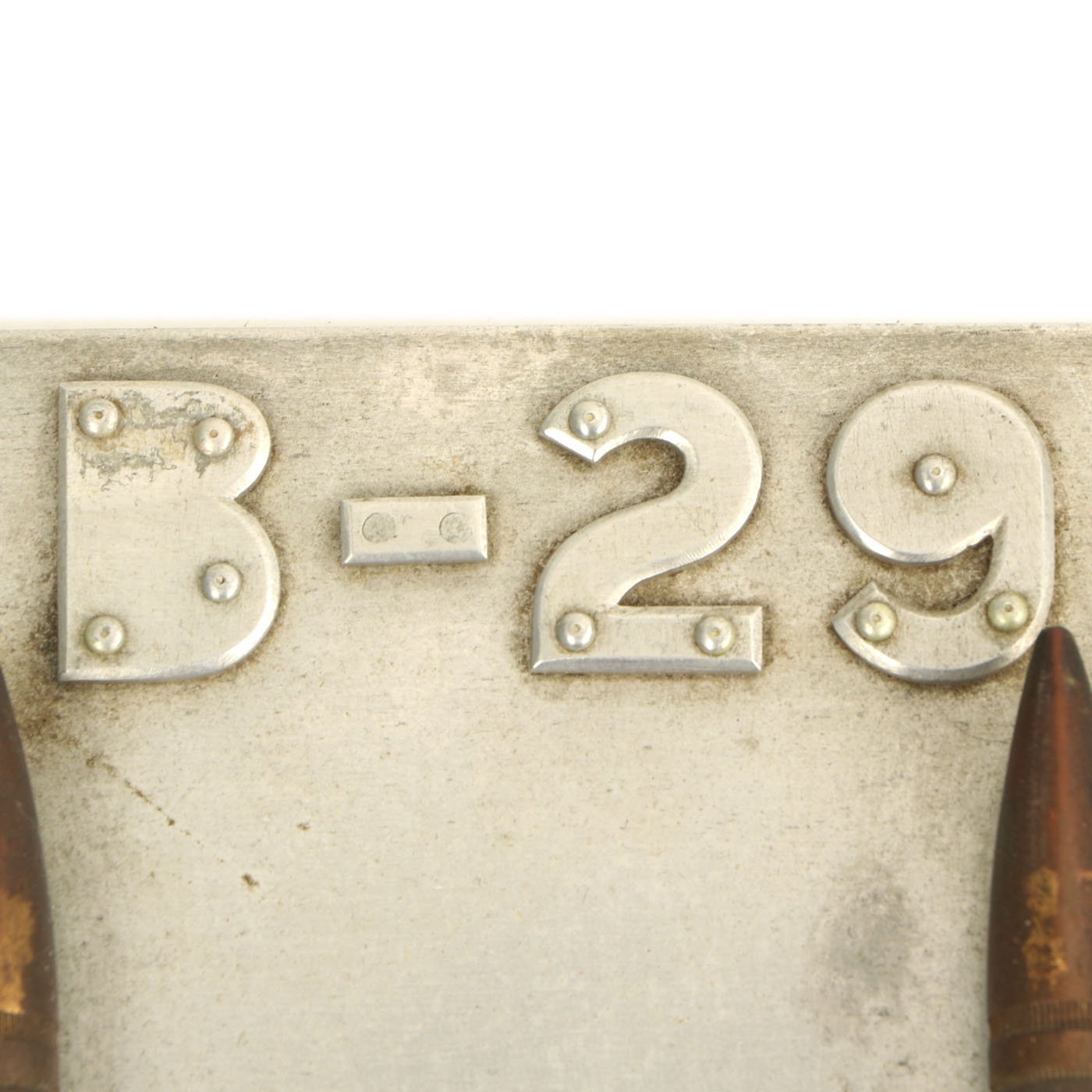 Original Item: Only One Available. This is trench art using aluminum from a B-29 Aircraft a as well as spent cartridges and American Air gunner wings. We acquired it from a private collector that reported it came directly from an American airman who served on a B-29 based on the island at the end of World War Two. It measures approximately