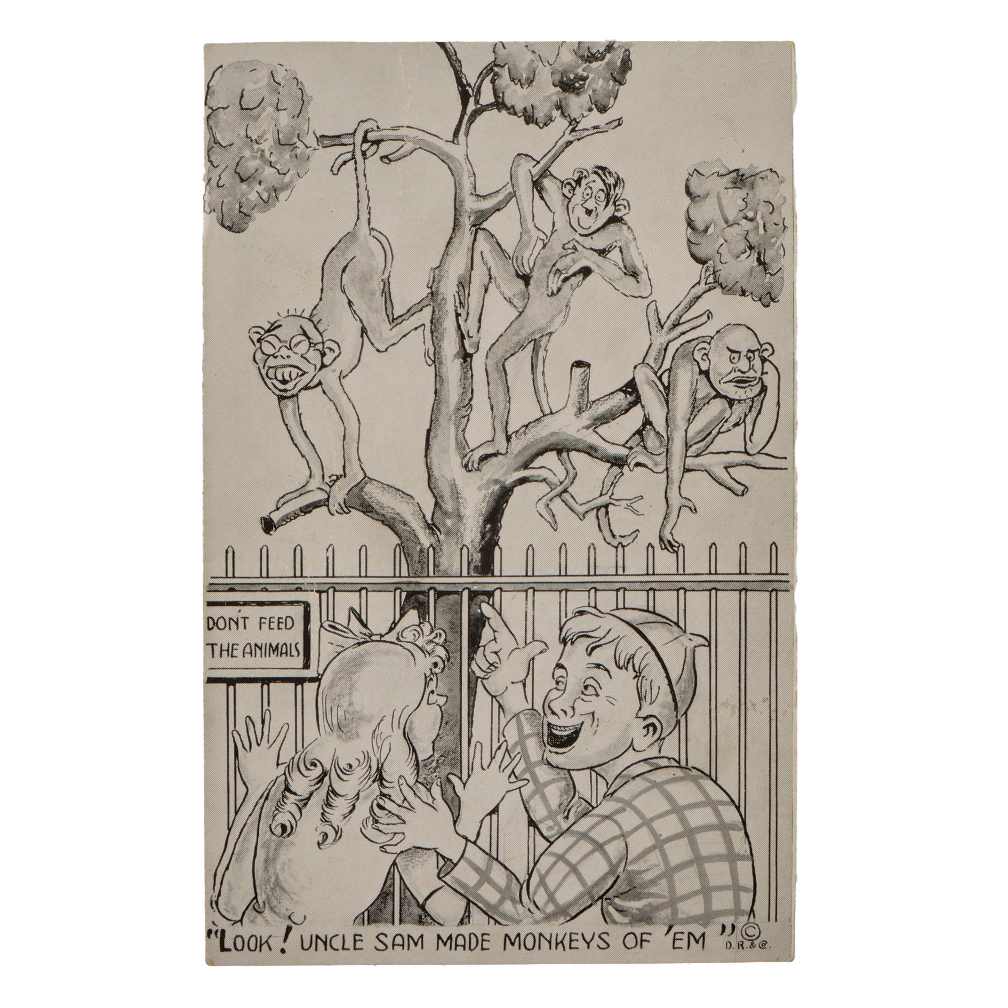 - “Look, Uncle Sam made monkeys out of them” postcard at zoo.