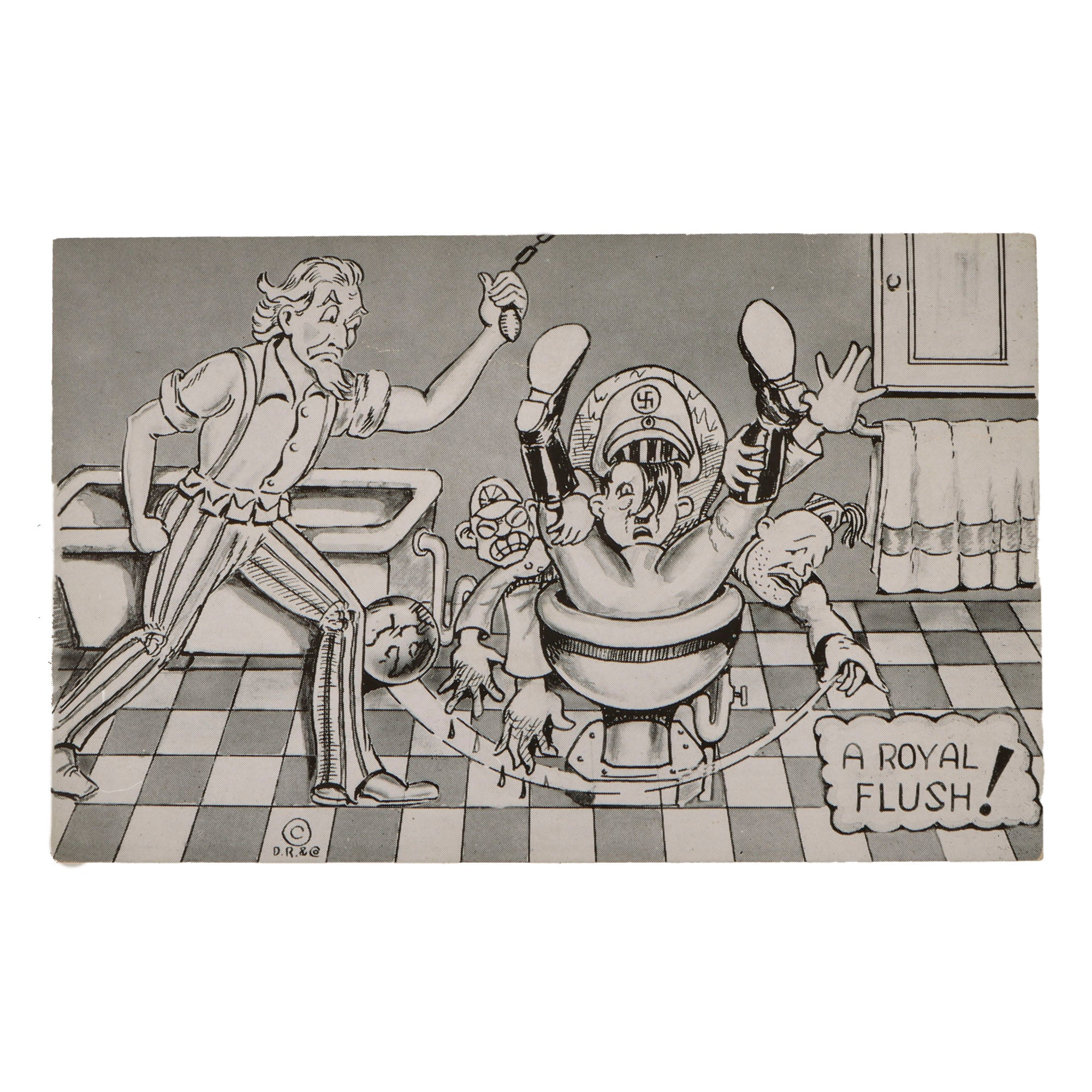 - Royal Flush postcard with Uncle Sam flushing the three leaders.
