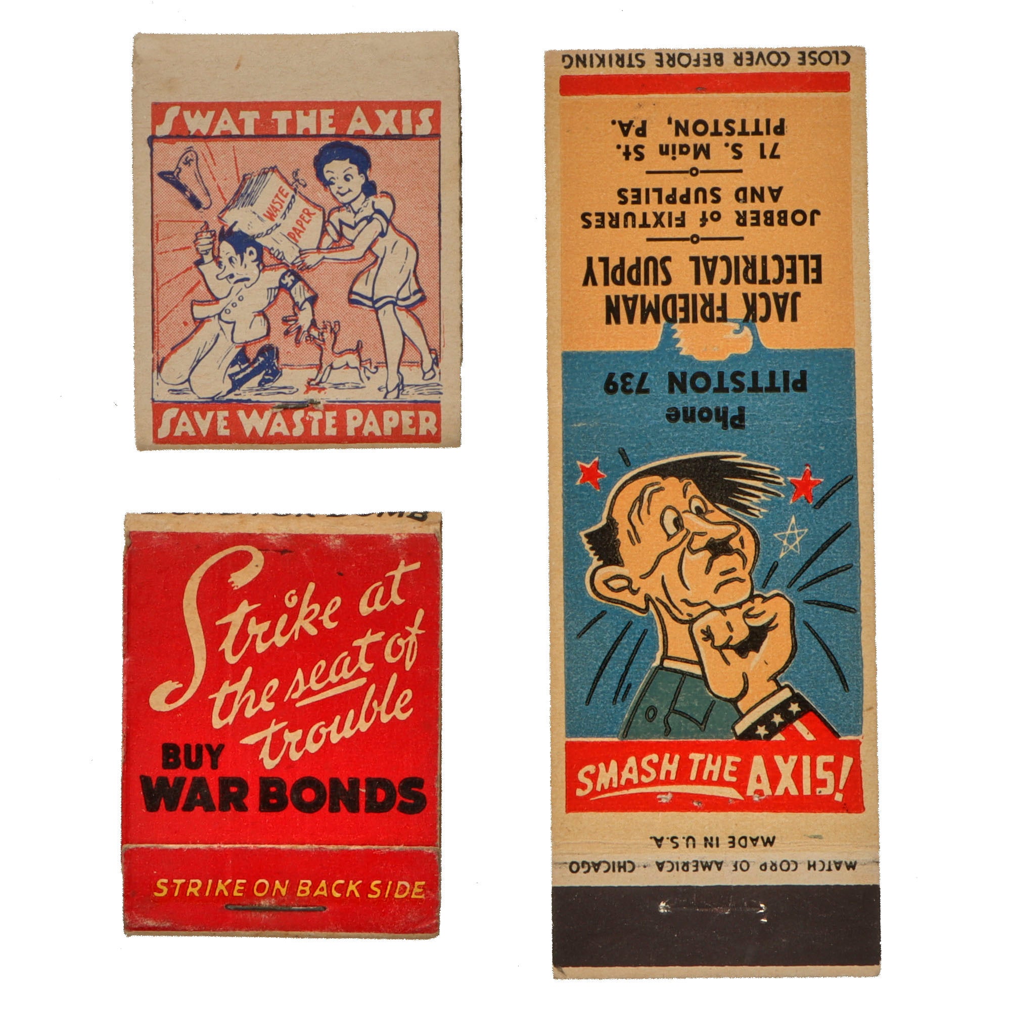 - “Swat the Axis, save waste paper” matchbook with retained matches.