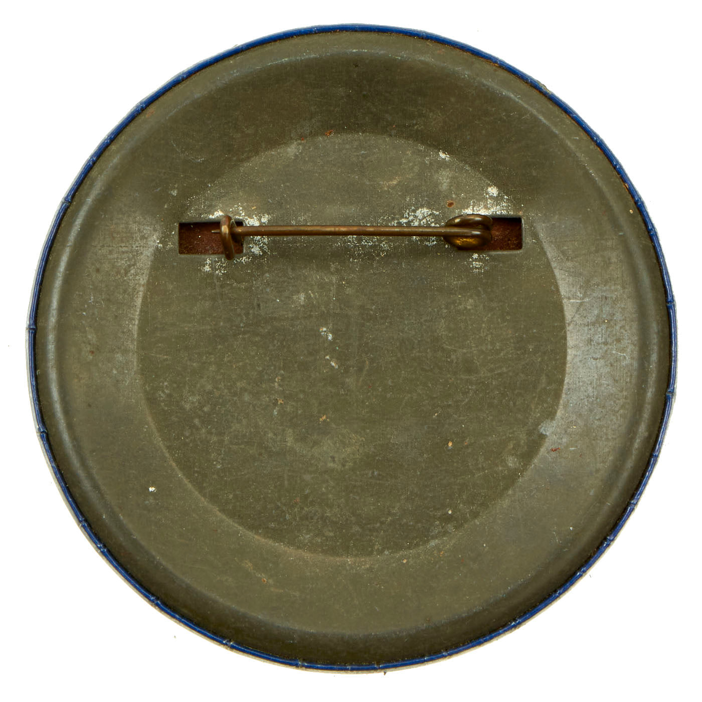 The other item is another form of propaganda, the “Jap Hunting License” button. The button is all white with a thing blue border and the following in red bold lettering: